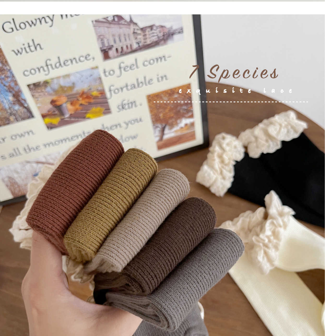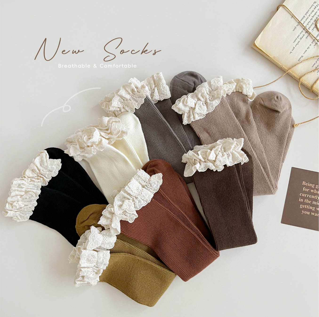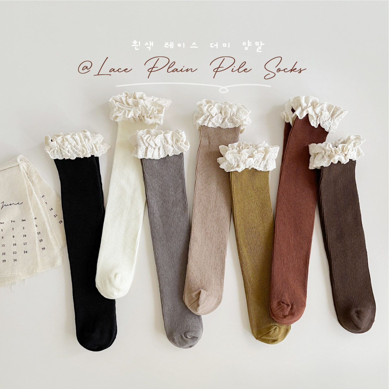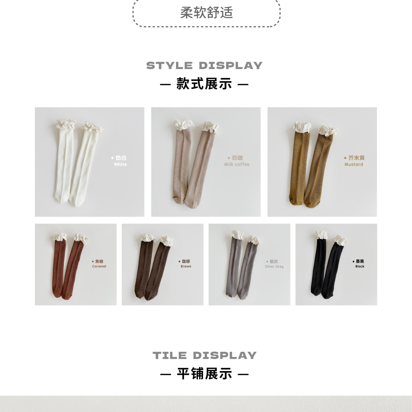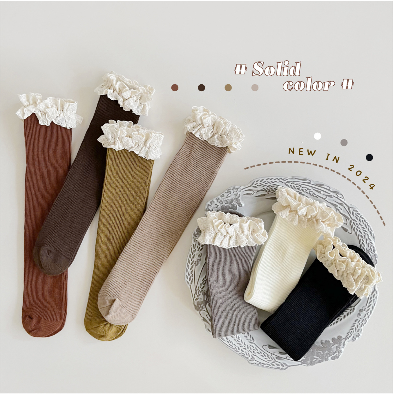【精致的蕾丝花边设计,展现公主风范,韩国ins风格,萌趣又时尚】女童袜子春秋纯色堆堆袜 儿童中筒袜韩ins公主蕾丝花边宝宝长筒袜-QQ