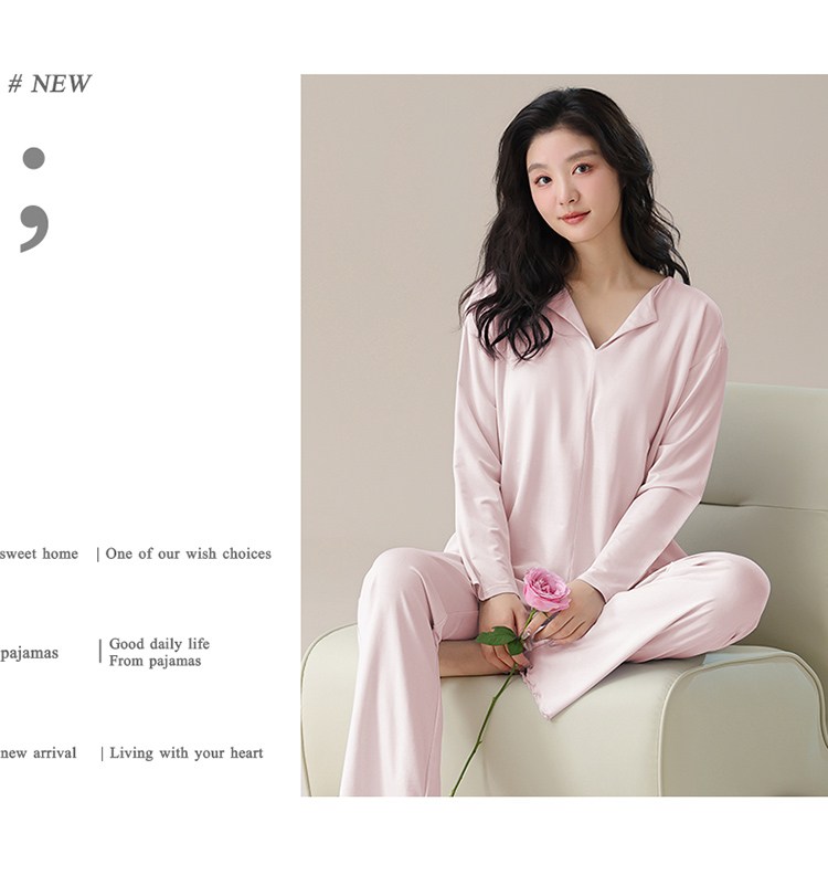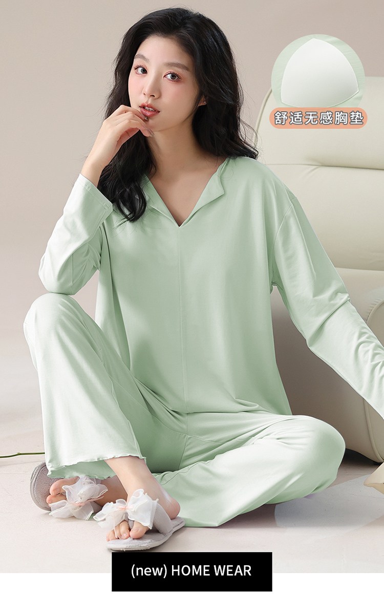 【轻梵 超柔云感免bra长袖家居服套装】带胸垫防凸点长袖家居服套装 宽松慵懒亲肤 无感bra ZXT