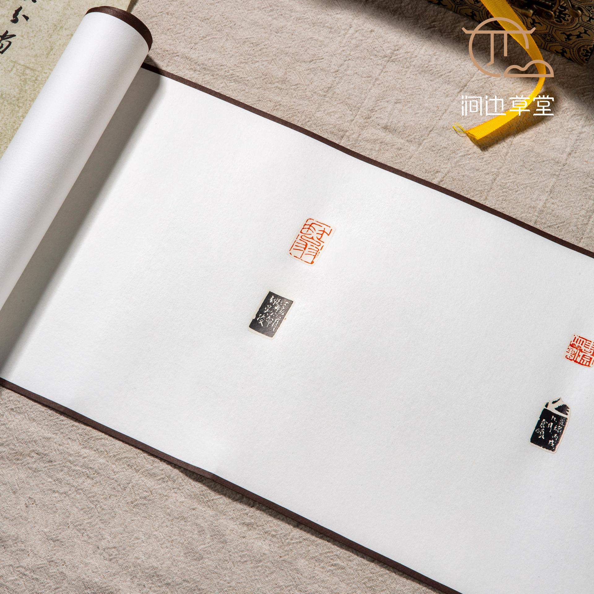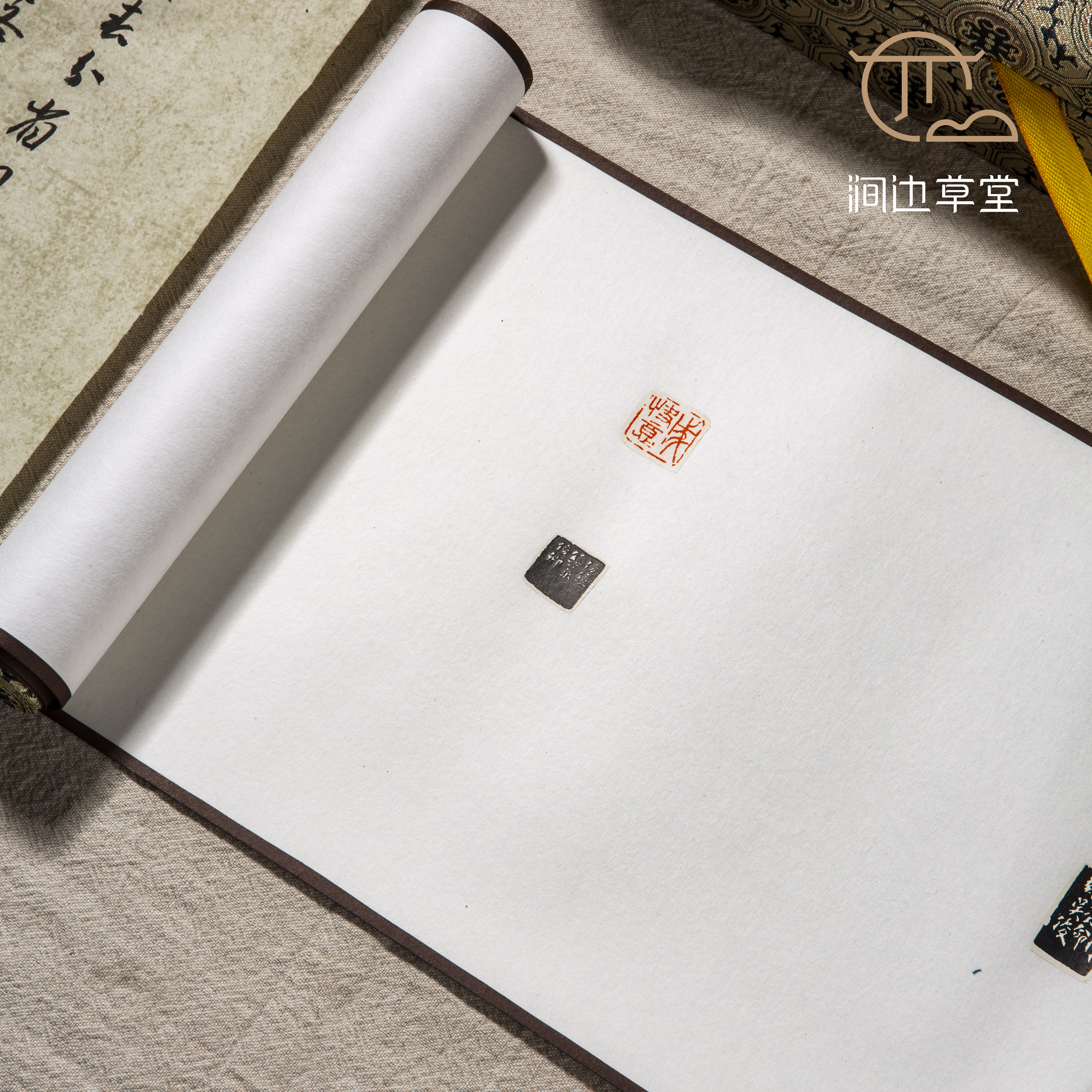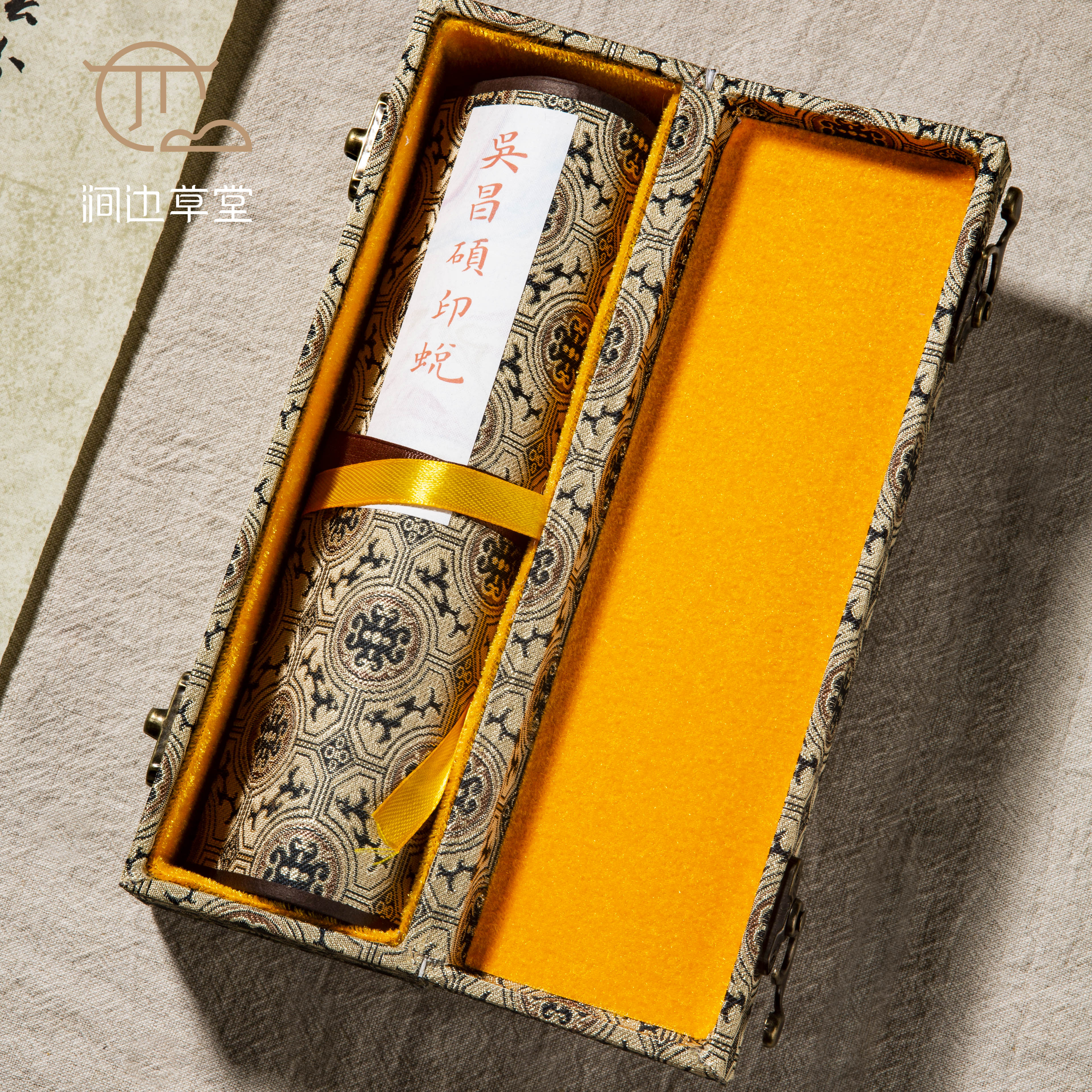 《吴昌硕印蜕》手卷,每一方印章均为原石钤印,钤印清晰,边款为乌金拓,拓工精细,手卷装裱精致,是收藏和学习的佳品。此手卷还可供书法家进行题跋创作,用此手卷创作的题跋作品,必将是一幅精品。