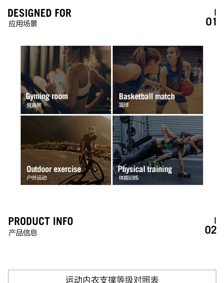 跃牌(呗咪纷纷系列)大码高强度防震背心瑜伽胸围WX232