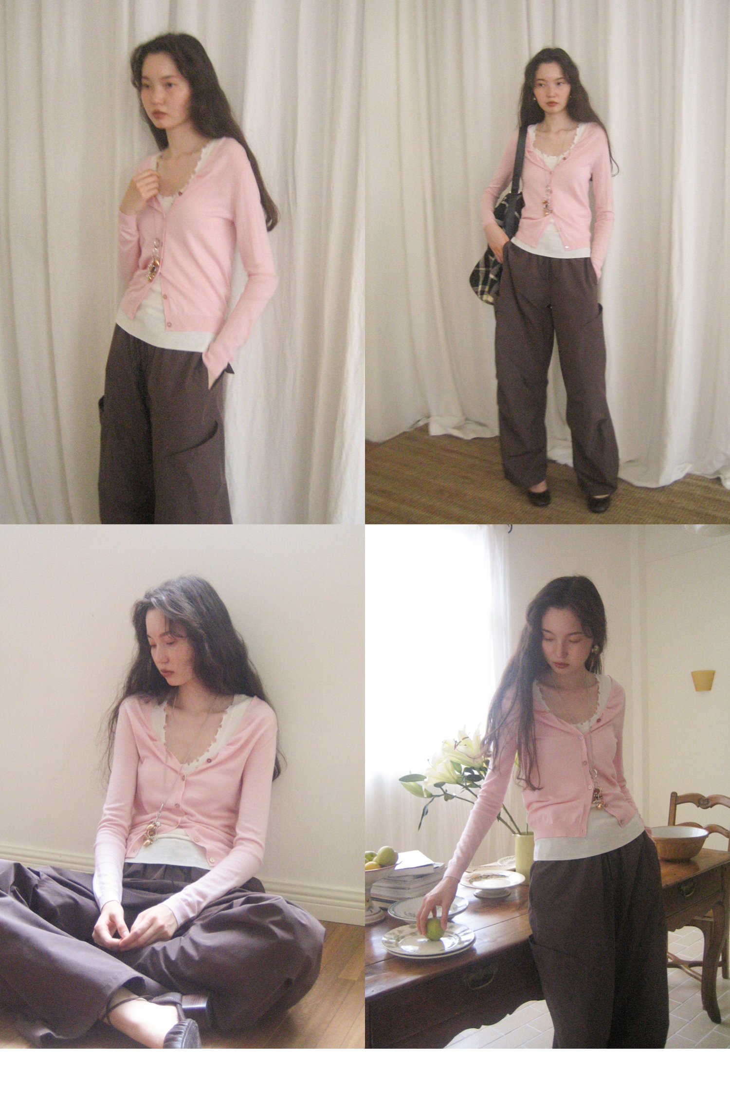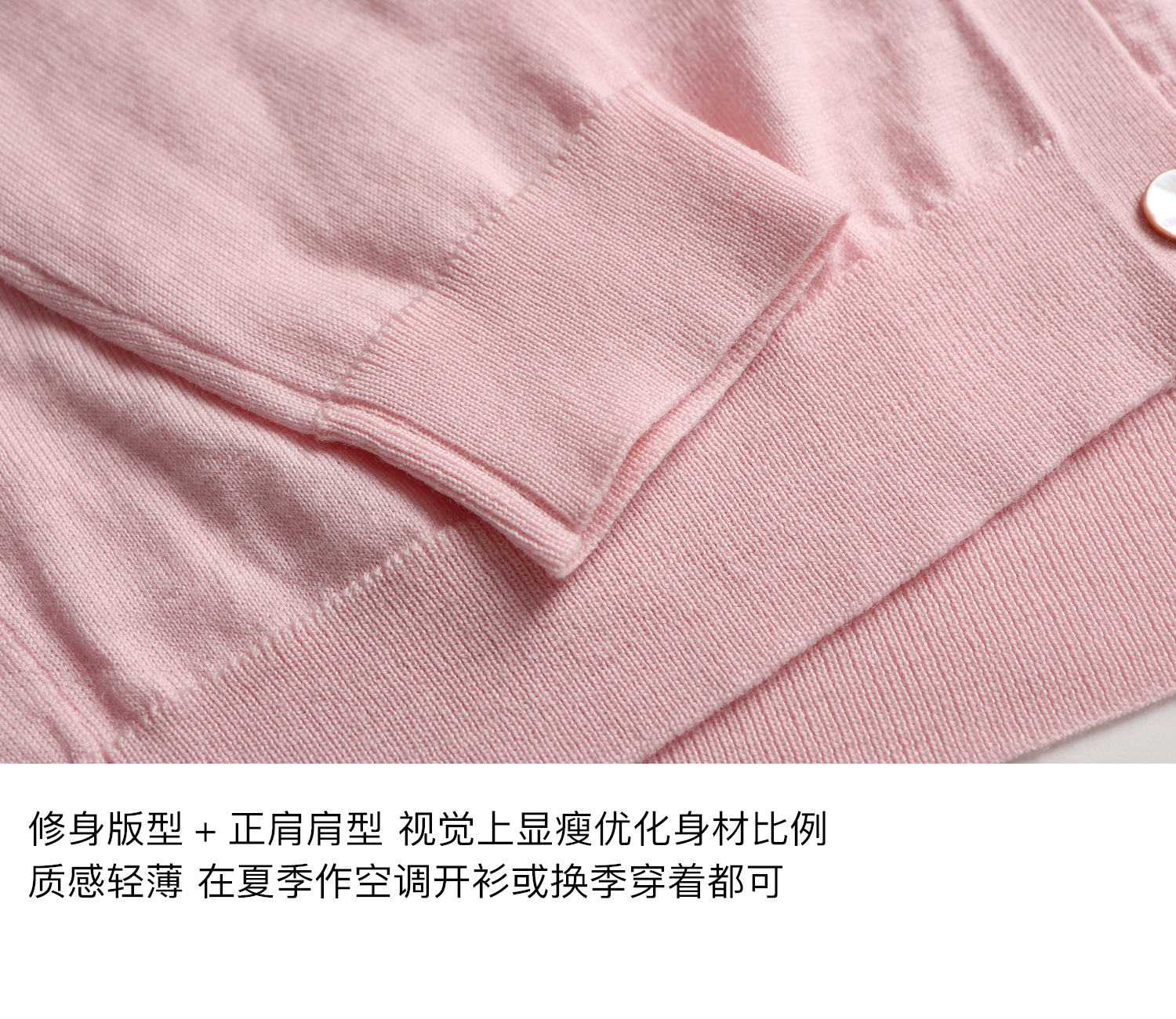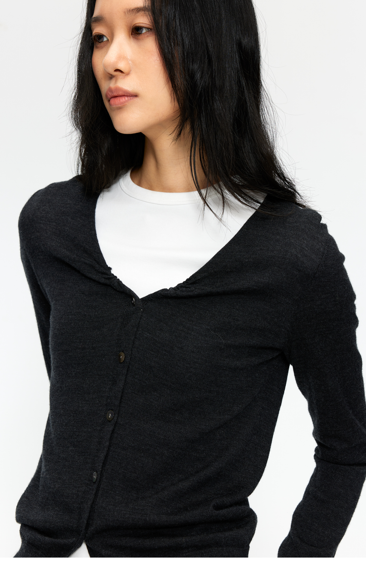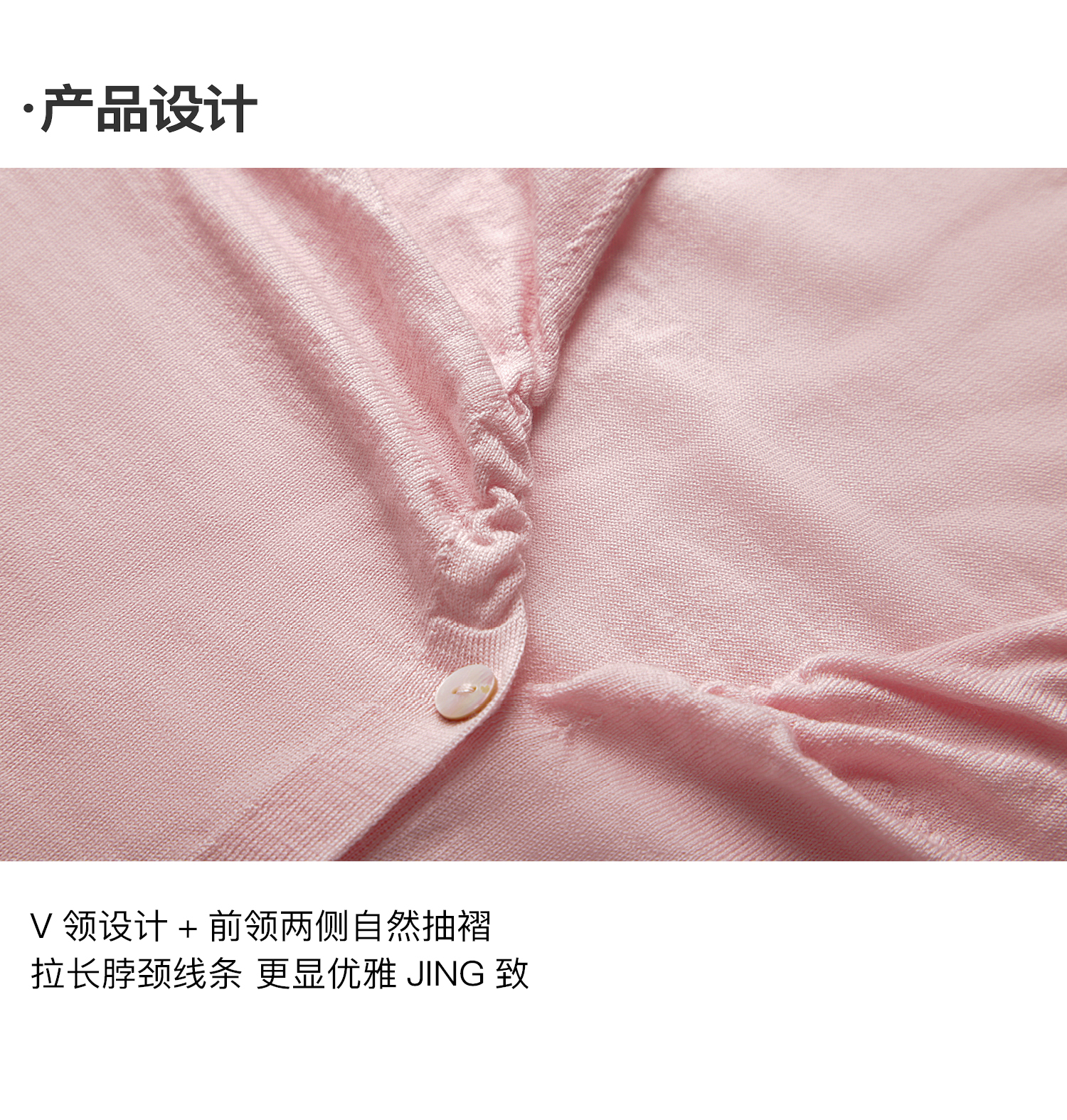 素舶 100澳洲极细美丽诺羊毛四季可穿V领领口抽皱修身针织开衫