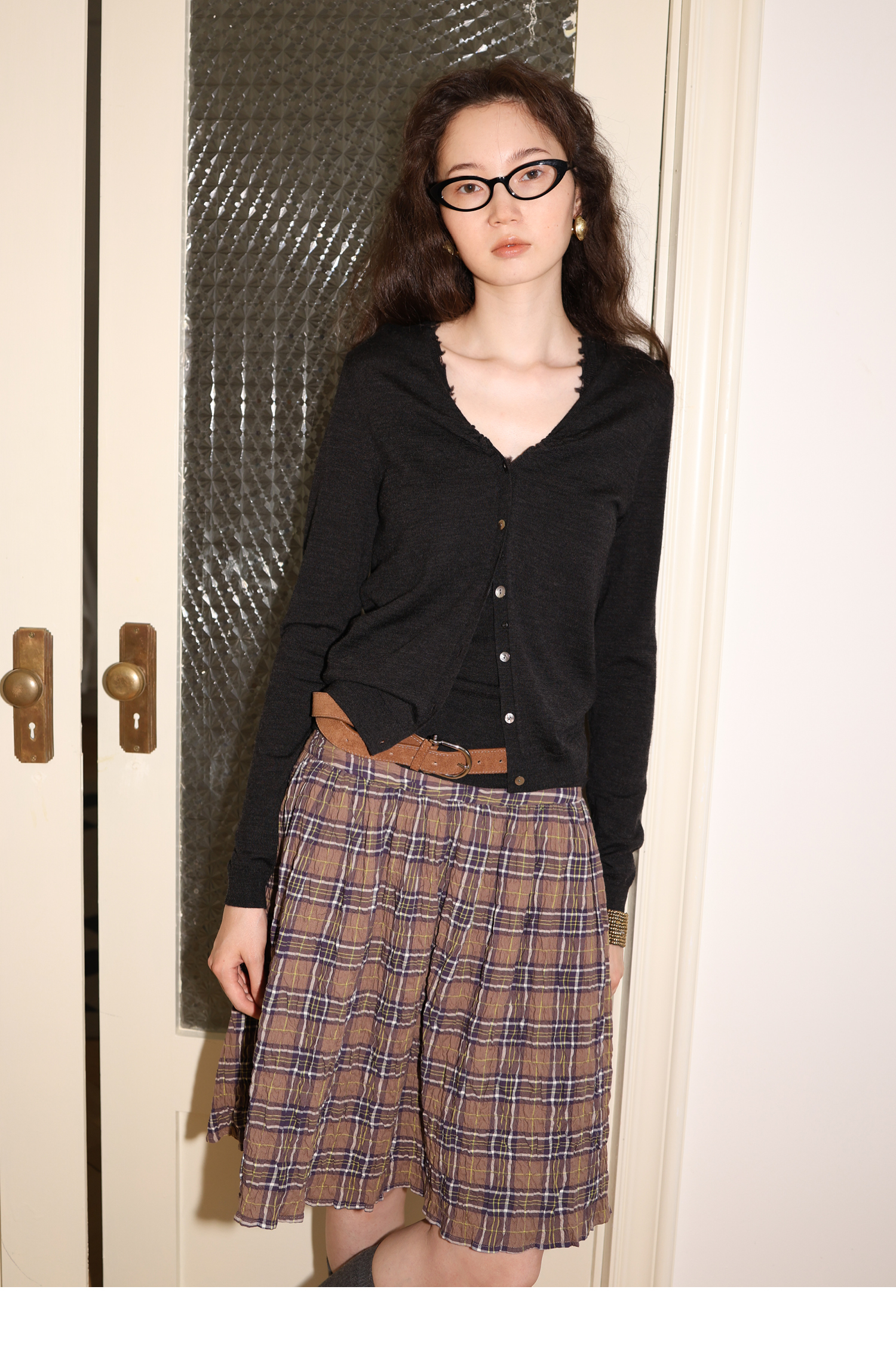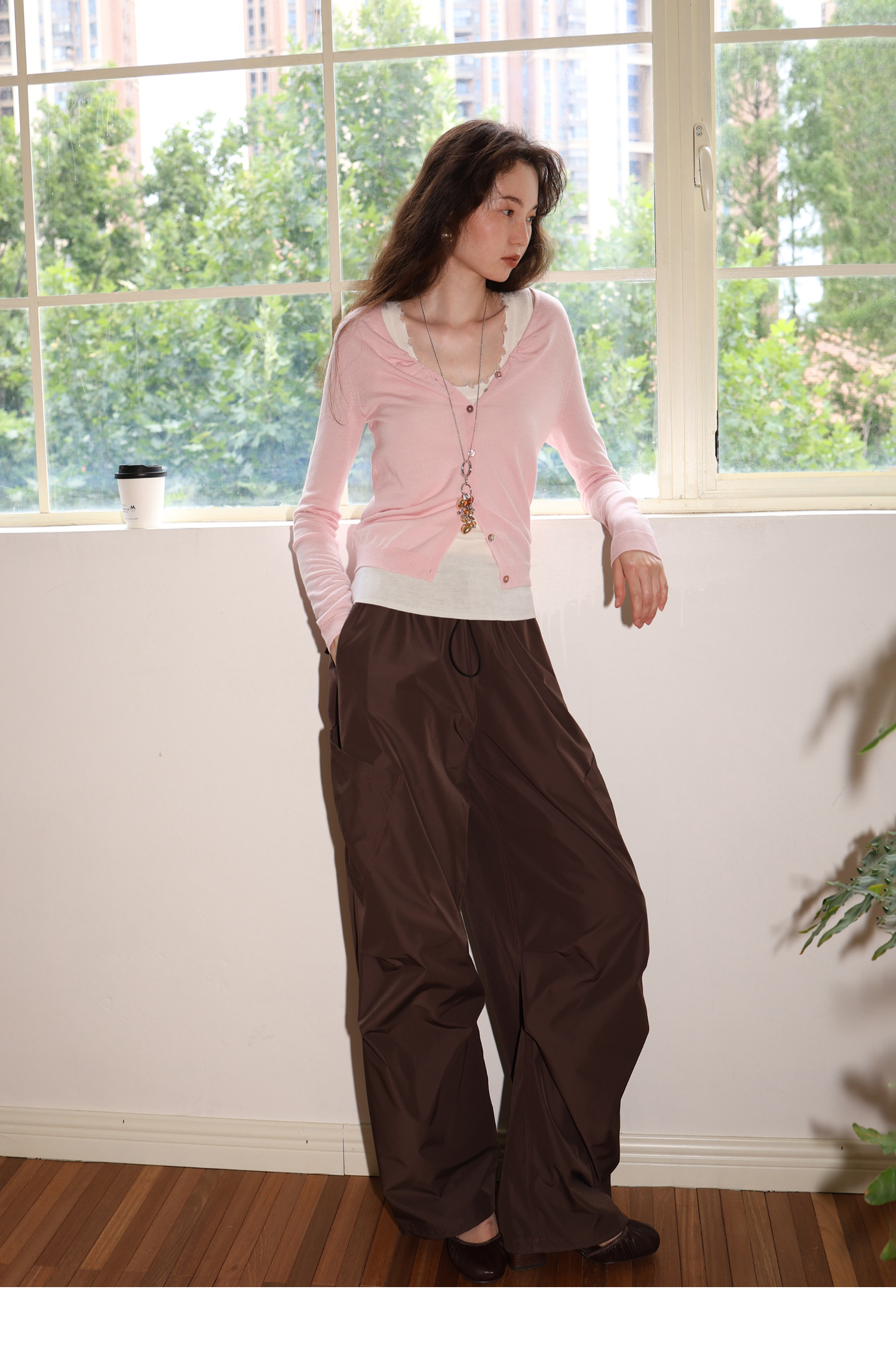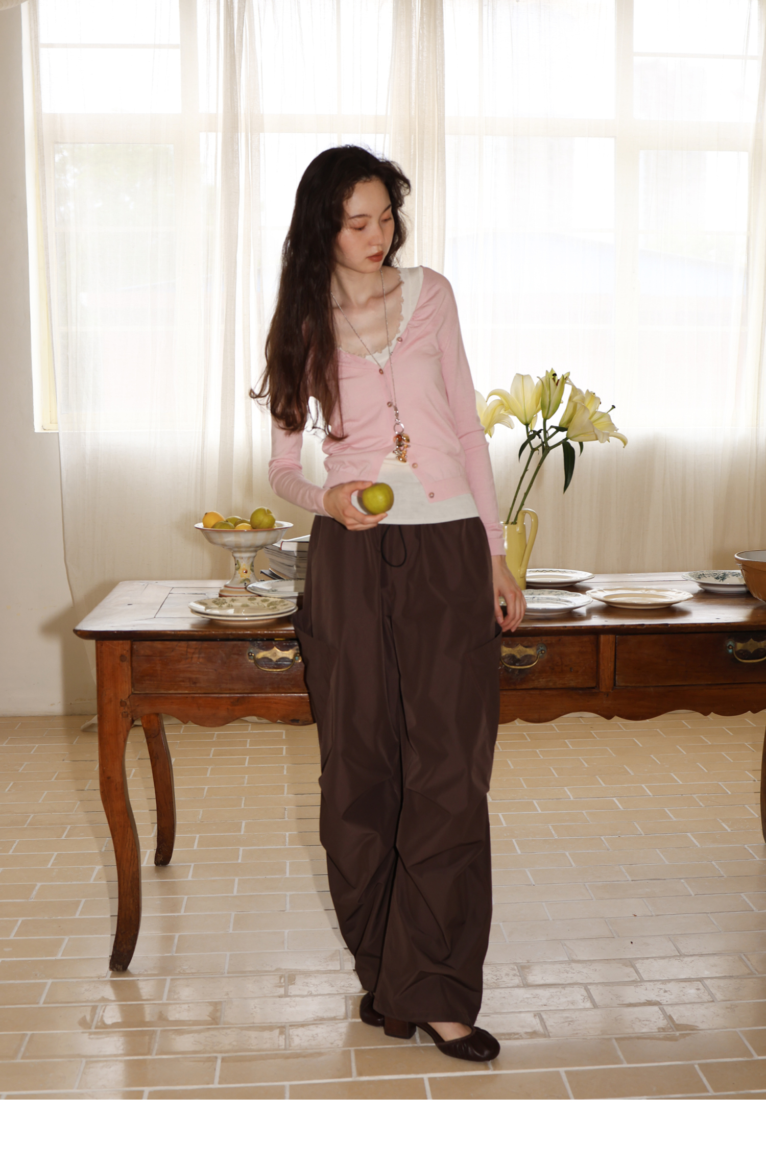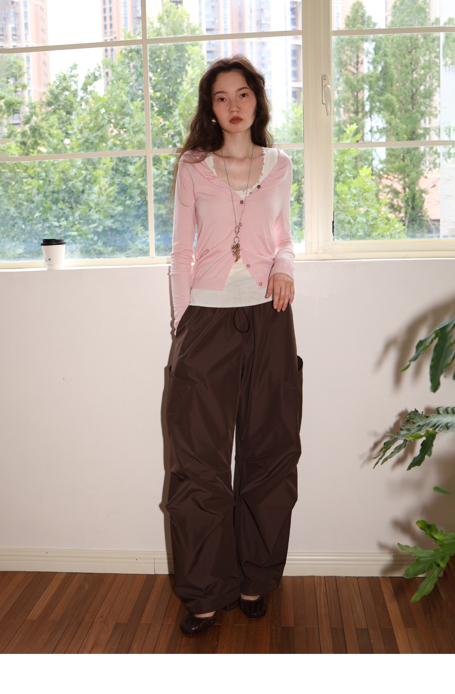 素舶 100澳洲极细美丽诺羊毛四季可穿V领领口抽皱修身针织开衫