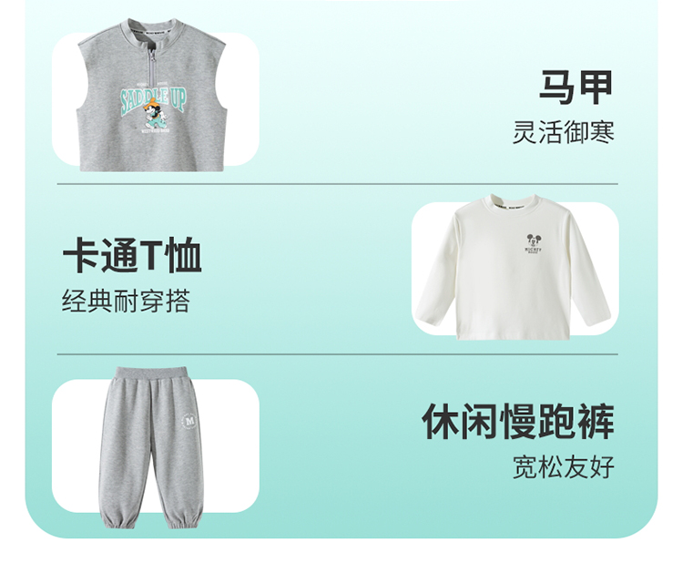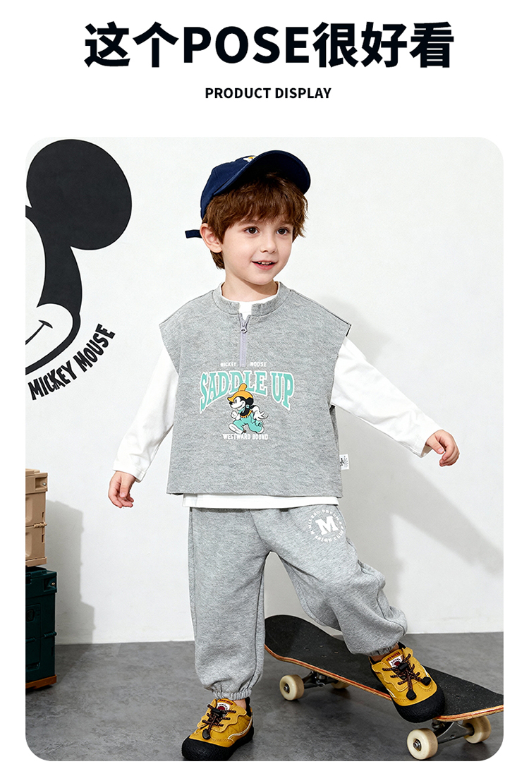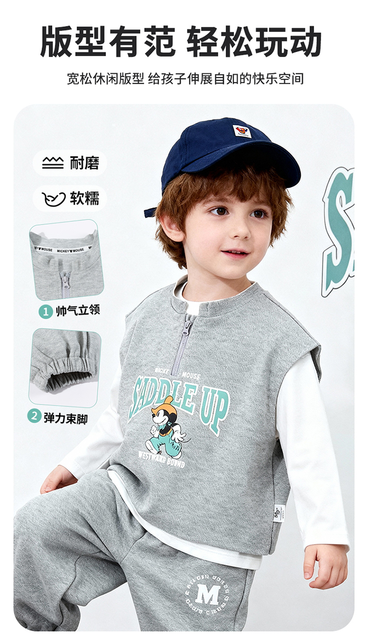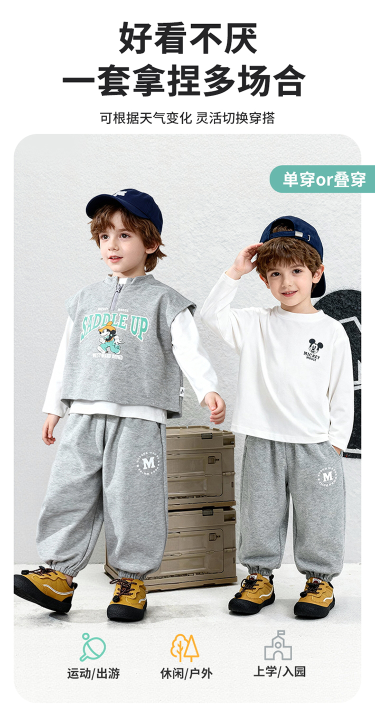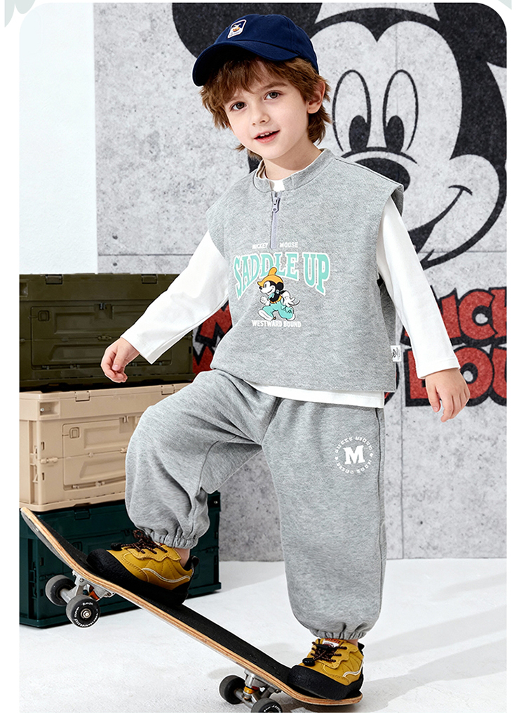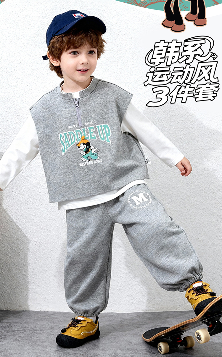 迪士尼(Disney)童装男童T恤套装T恤马甲卫裤休闲运动韩系三件套2026春季新款套装ZD1FT007