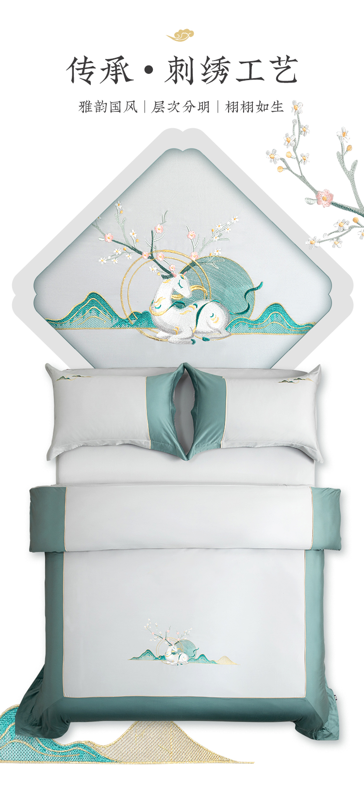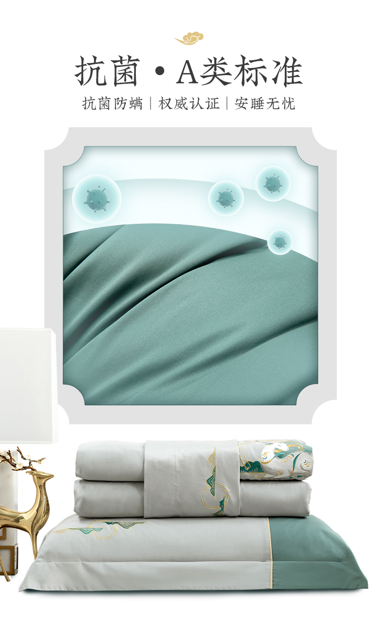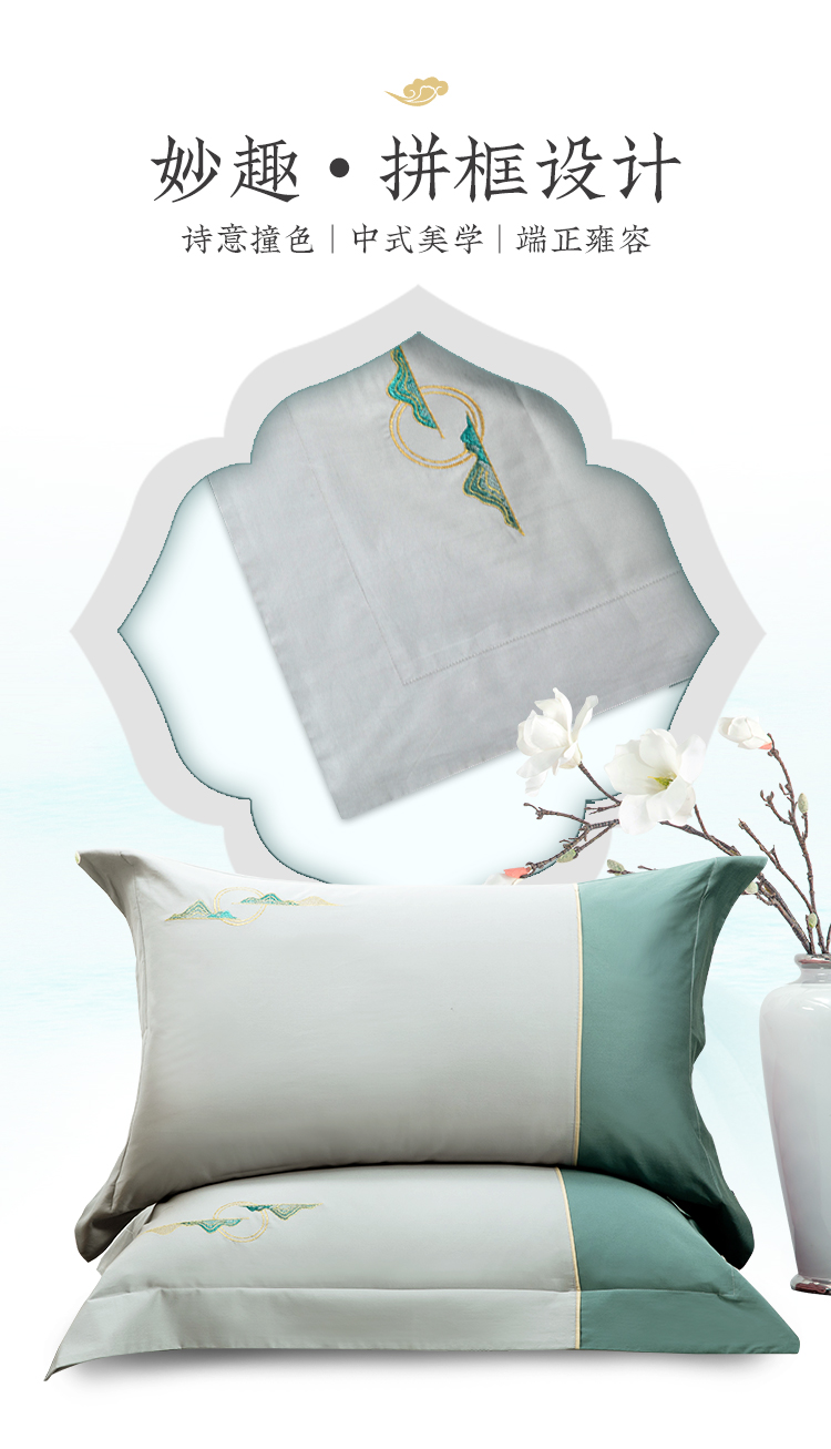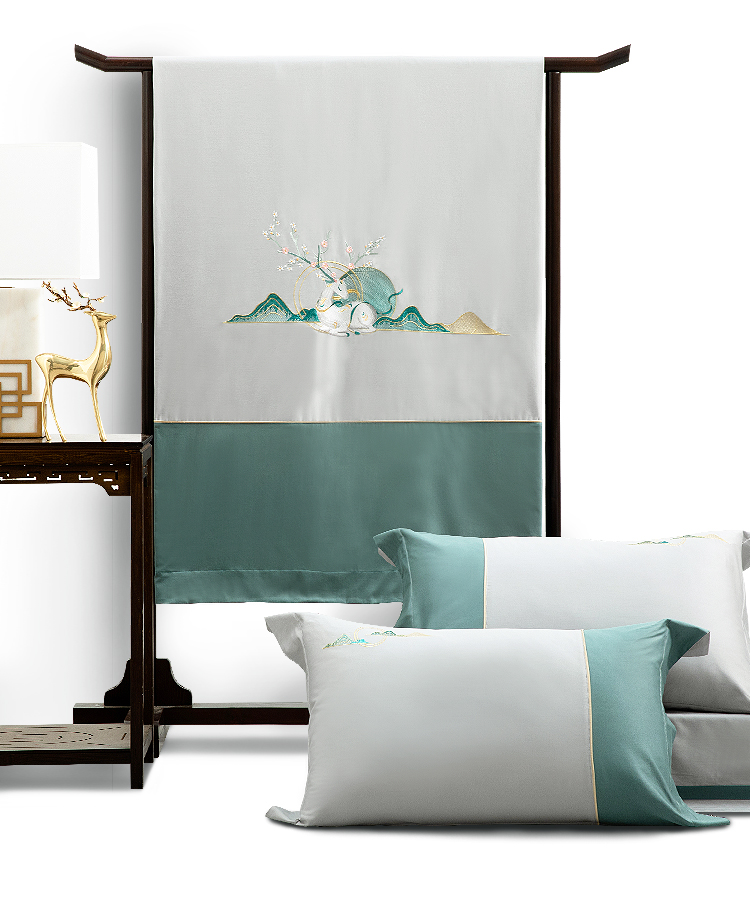 多喜爱山海经 60S新绒棉刺绣四件套 山川意境