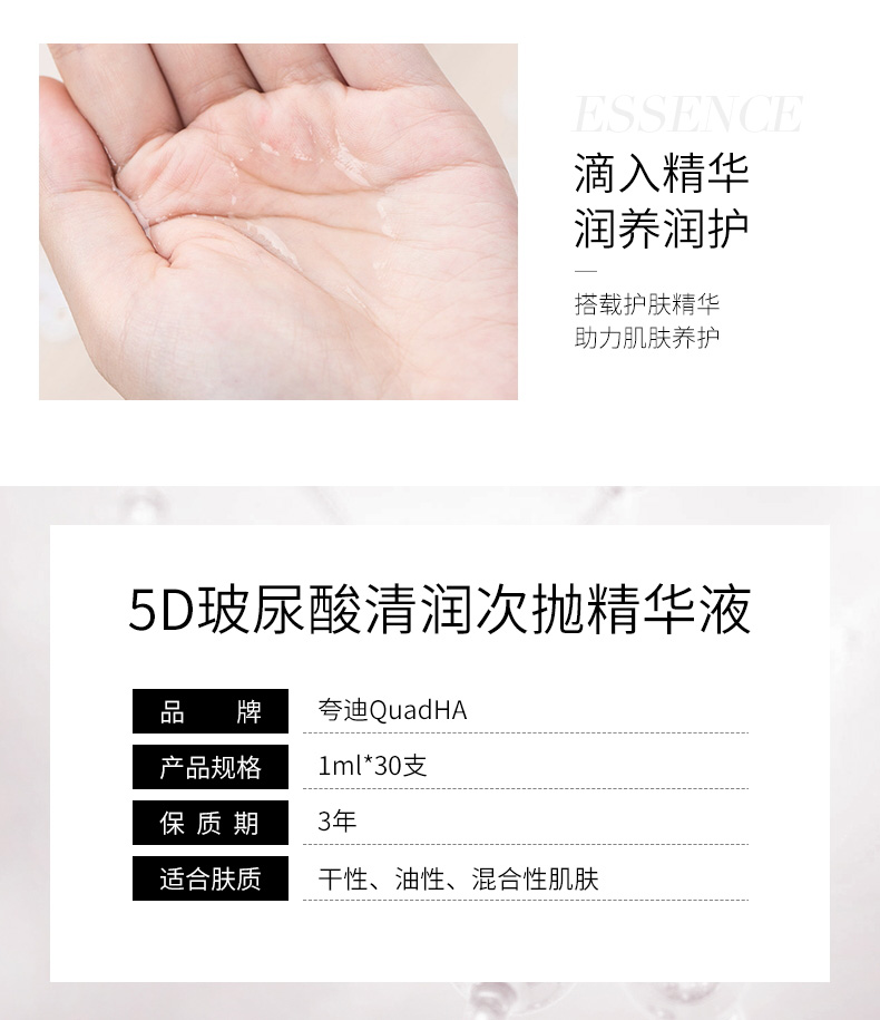 【产品名称】华熙生物夸迪5D玻尿酸清润次抛精华液