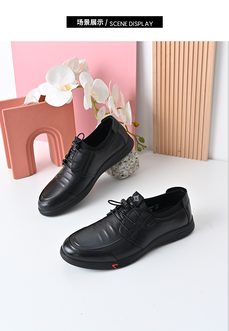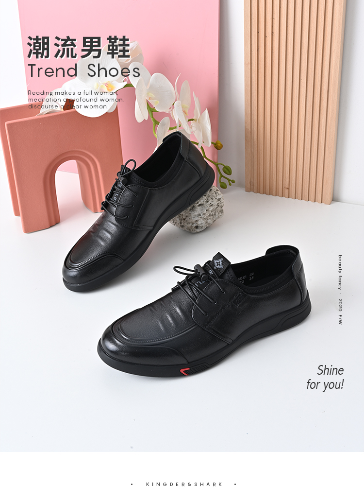 经典鲨2024年秋季新款黑色男士平底舒适休闲鞋KW269-D33101