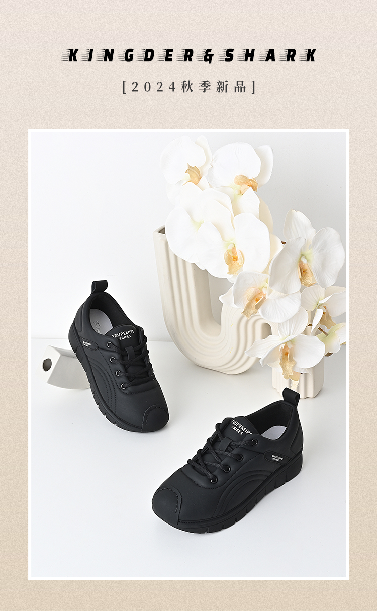 经典鲨2024年秋季款百搭黑色舒适平底系带通勤休闲跑步鞋女KW172-D37151
