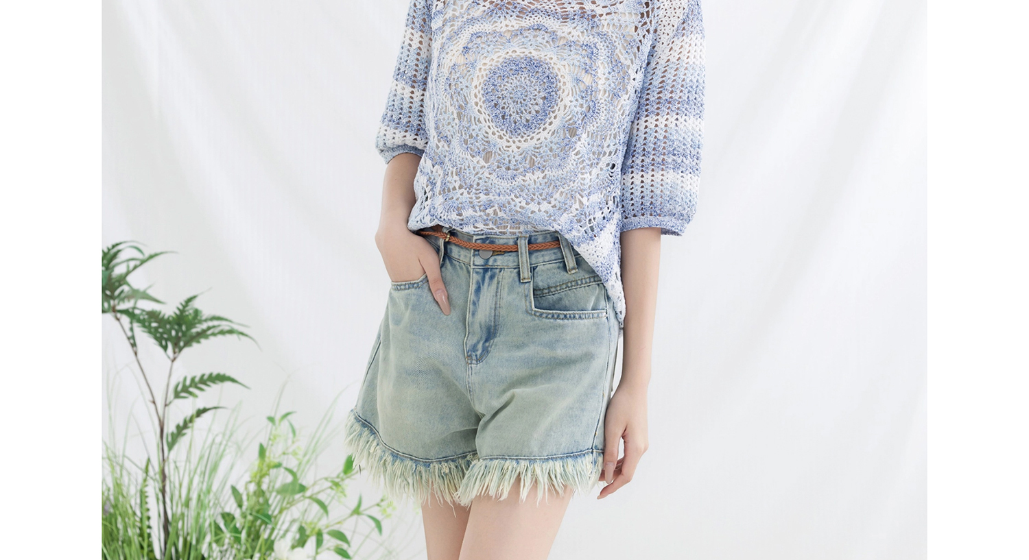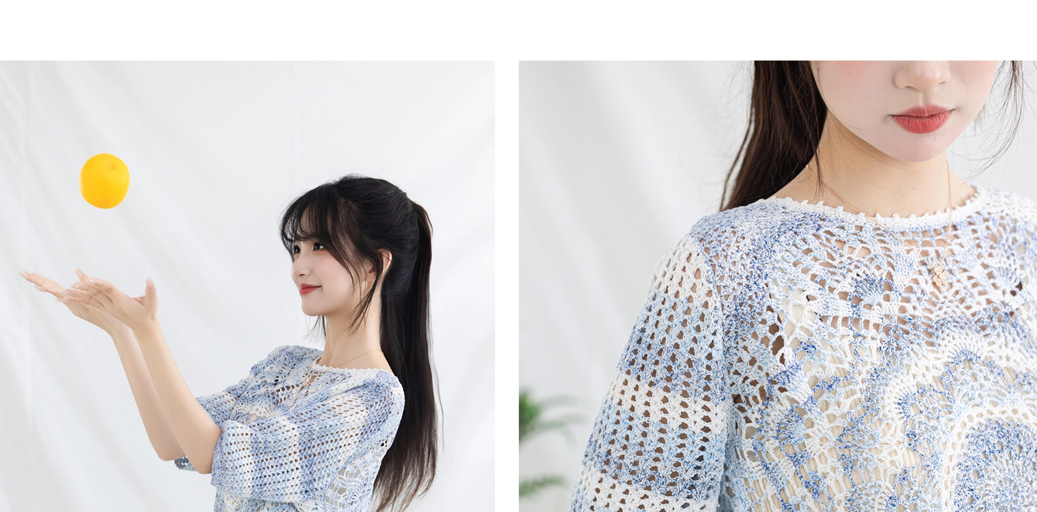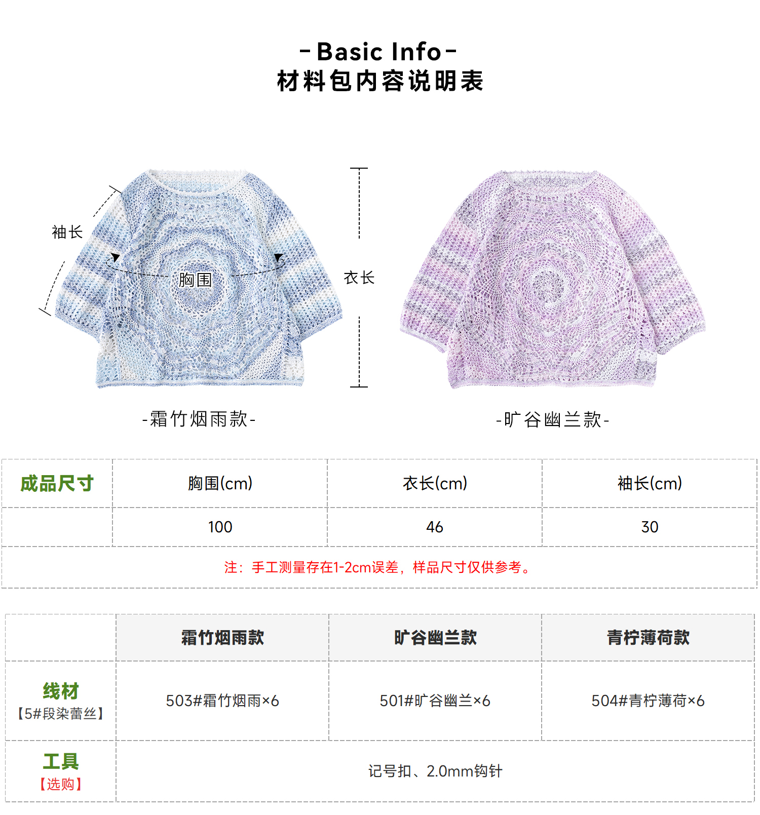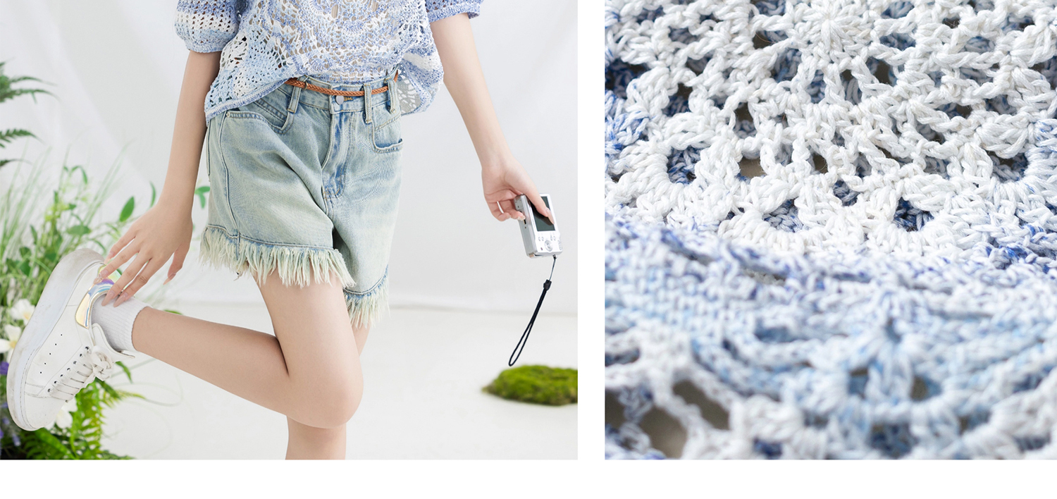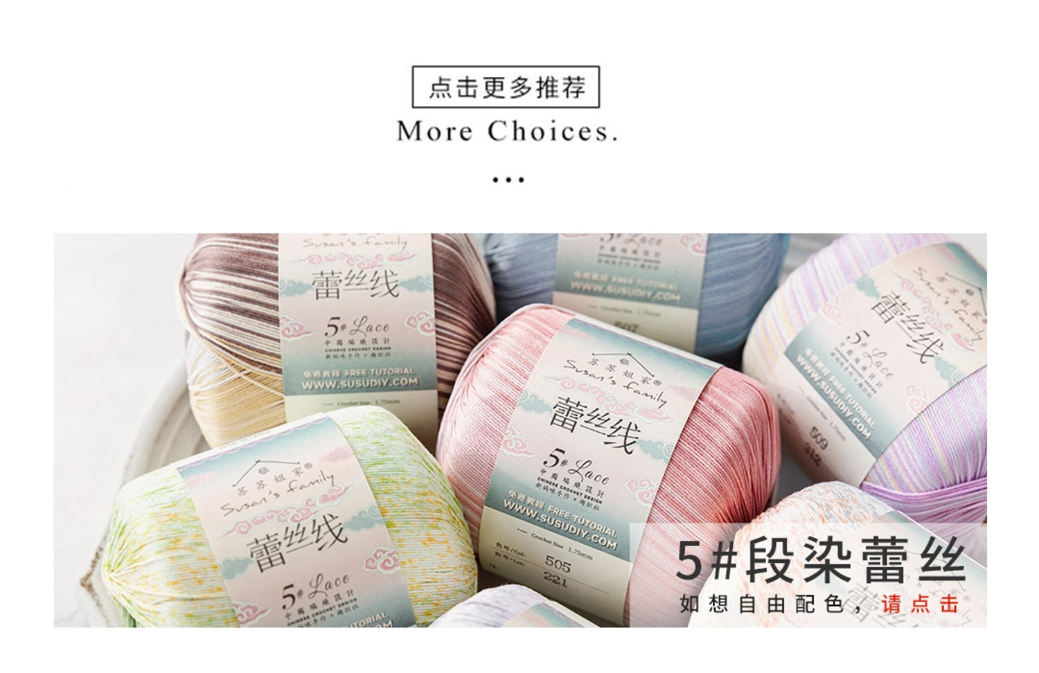 苏苏姐家飞玉短袖段染版手工diy编织钩针5号段染蕾丝毛线团材料包