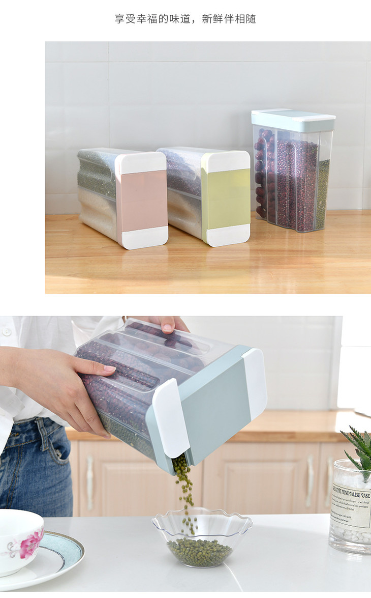 【储物盒】*厨房塑料保鲜密封罐五谷杂粮多格储存储物管子家居食品收纳盒透明