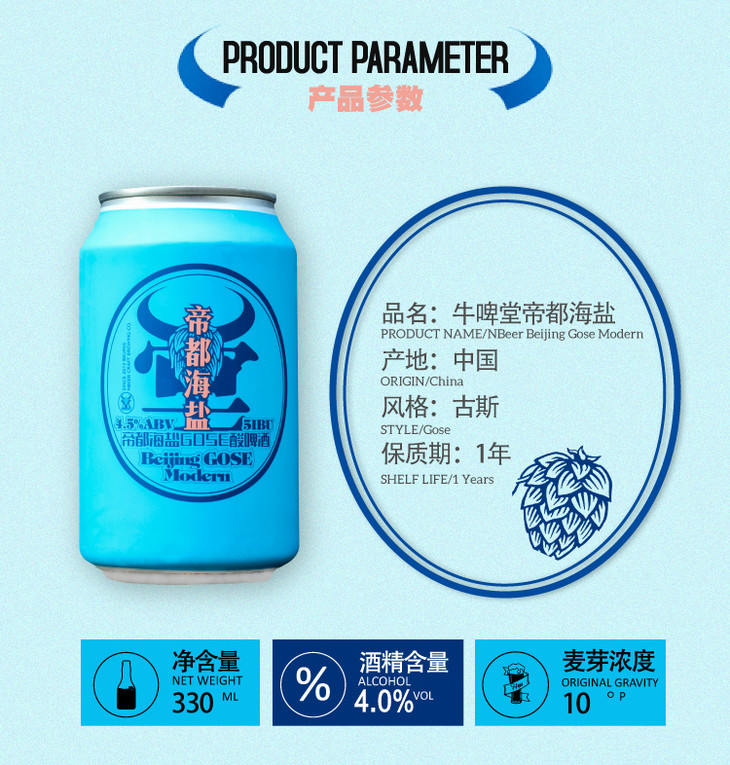 【冷库储存】牛啤堂帝都海盐啤酒 4.0%Vol 330ml*24瓶