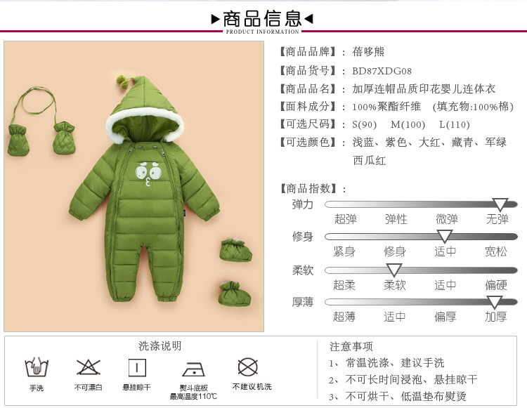 【赠手脚套】蓓哆熊秋冬新品加厚保暖婴儿连体衣 宝宝哈衣爬服