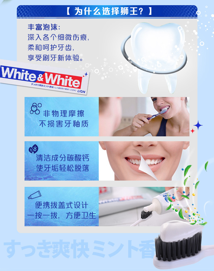 【一般贸易进口】日本原装狮王大白牙膏LION美白薄荷味牙膏150g