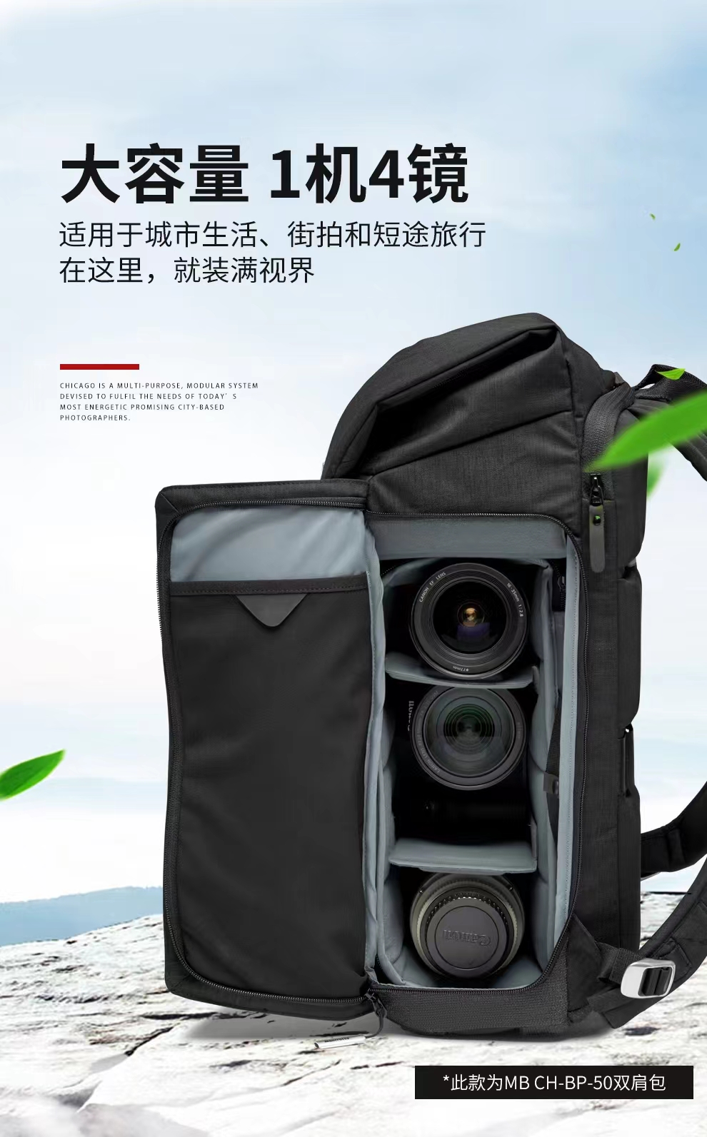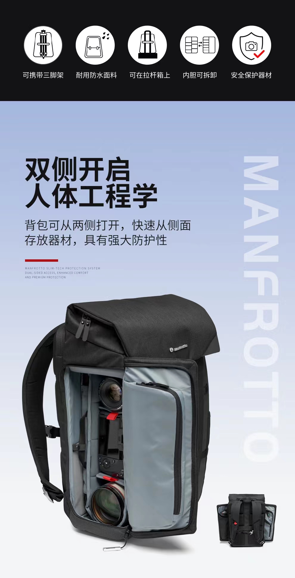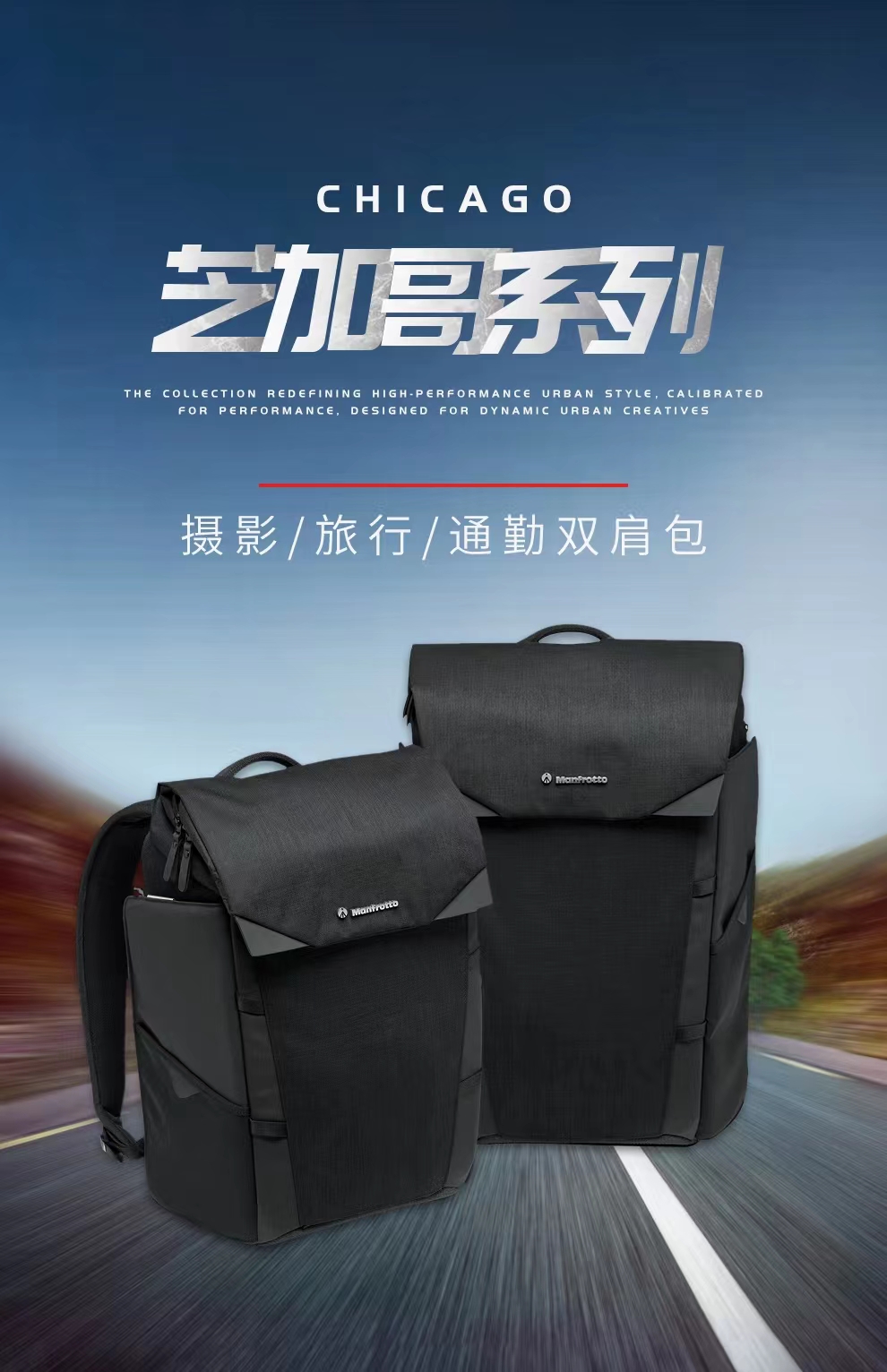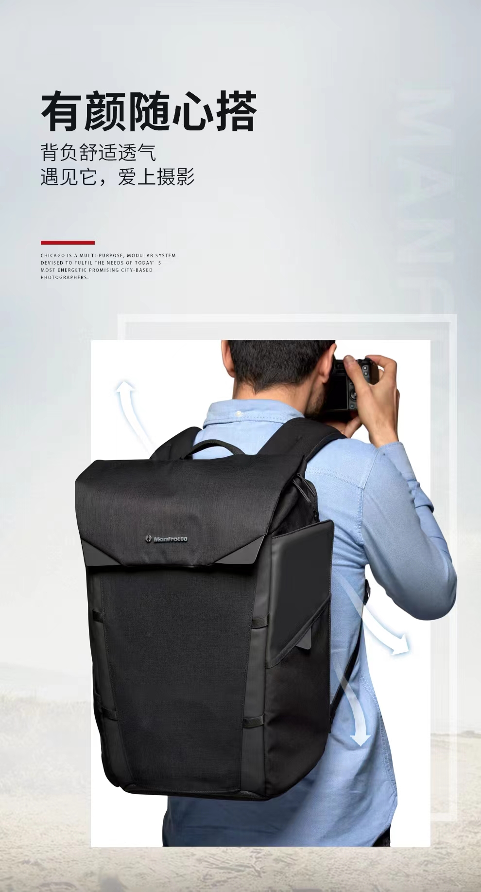 曼富图(Manfrotto)双侧开启双肩包 芝加哥系列 MB CH-BP-50 摄影/旅行/通勤双肩包