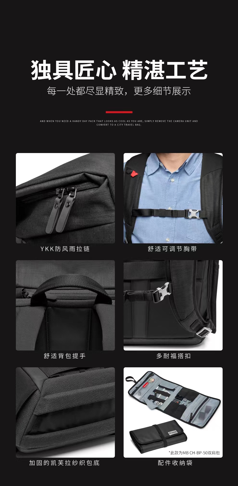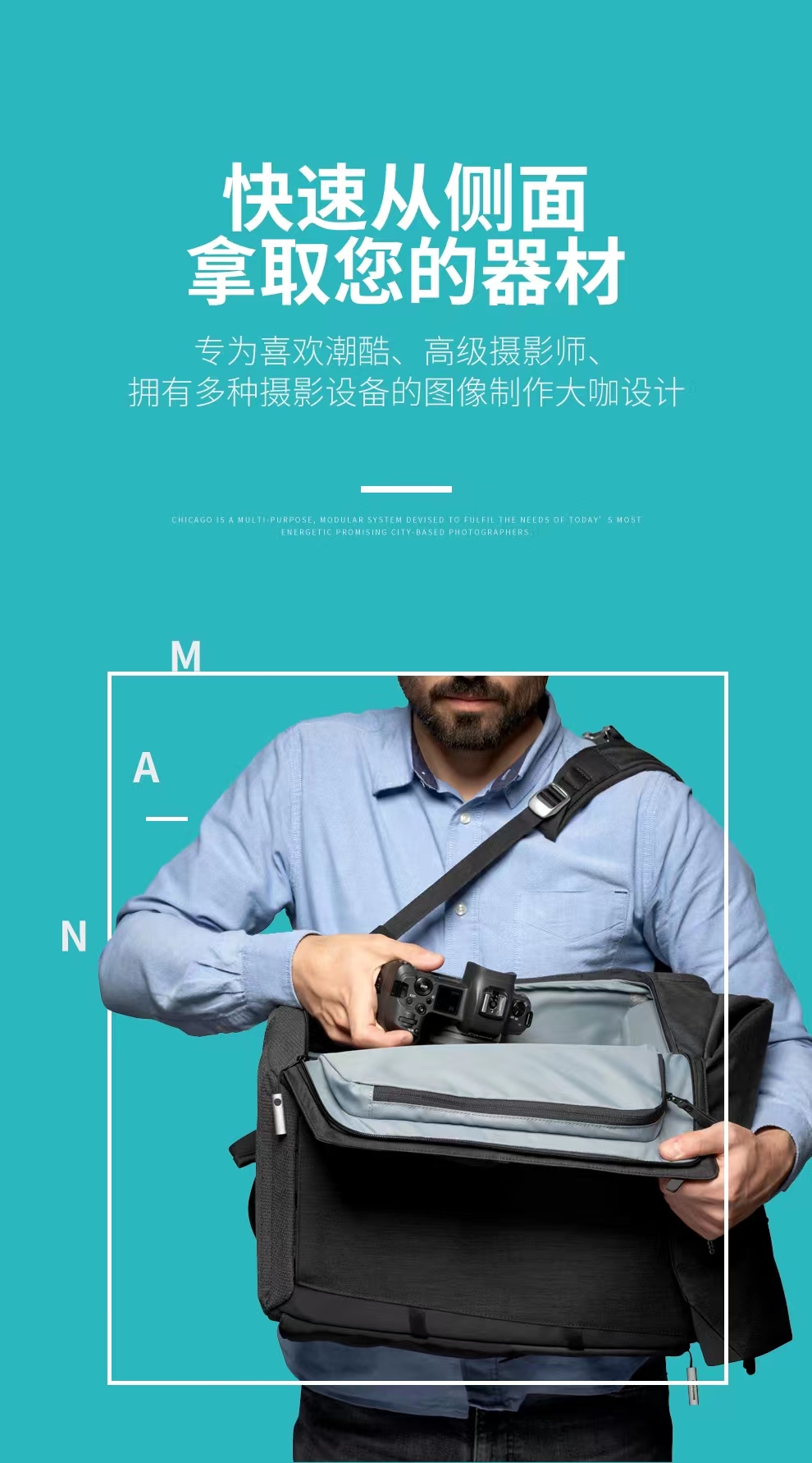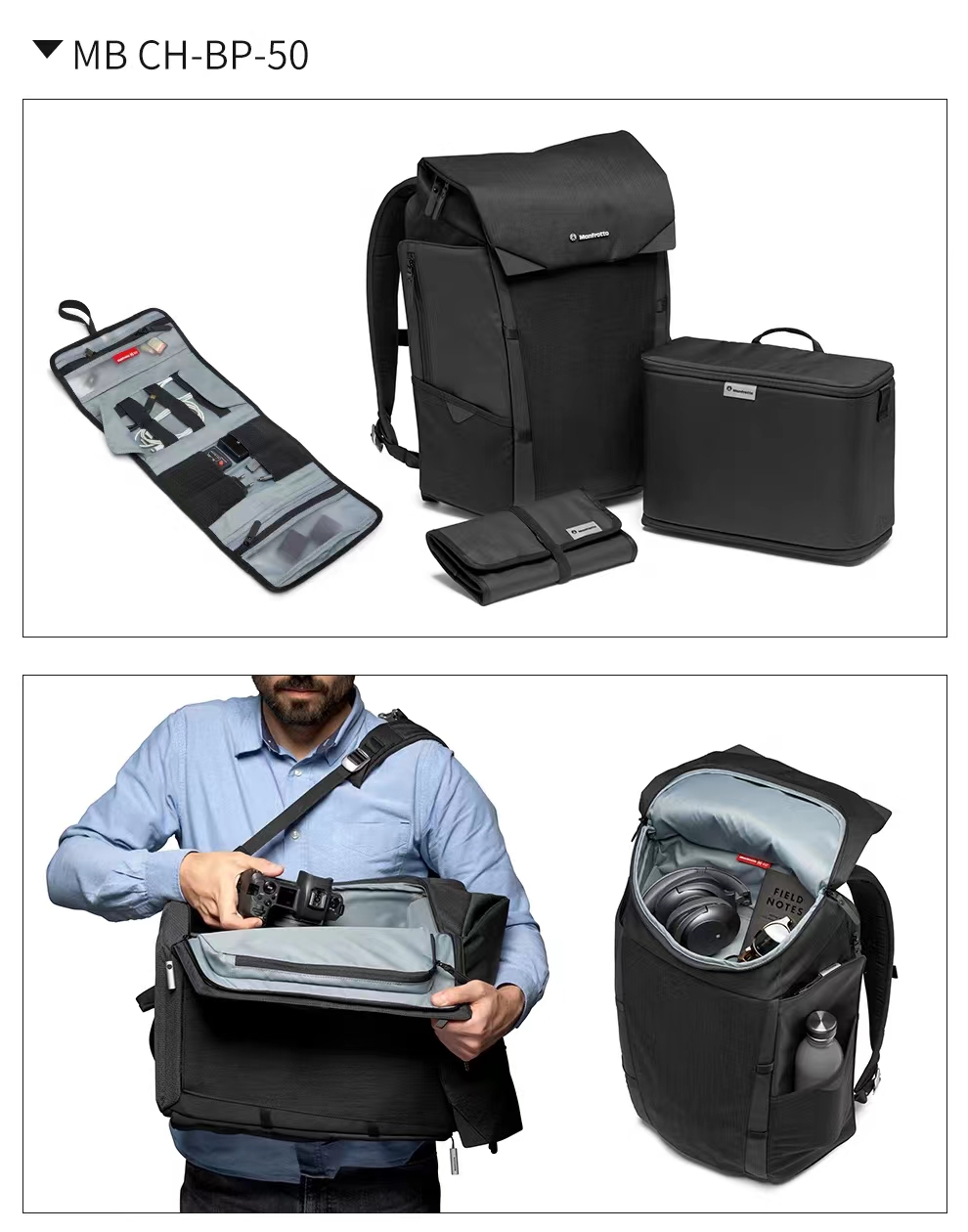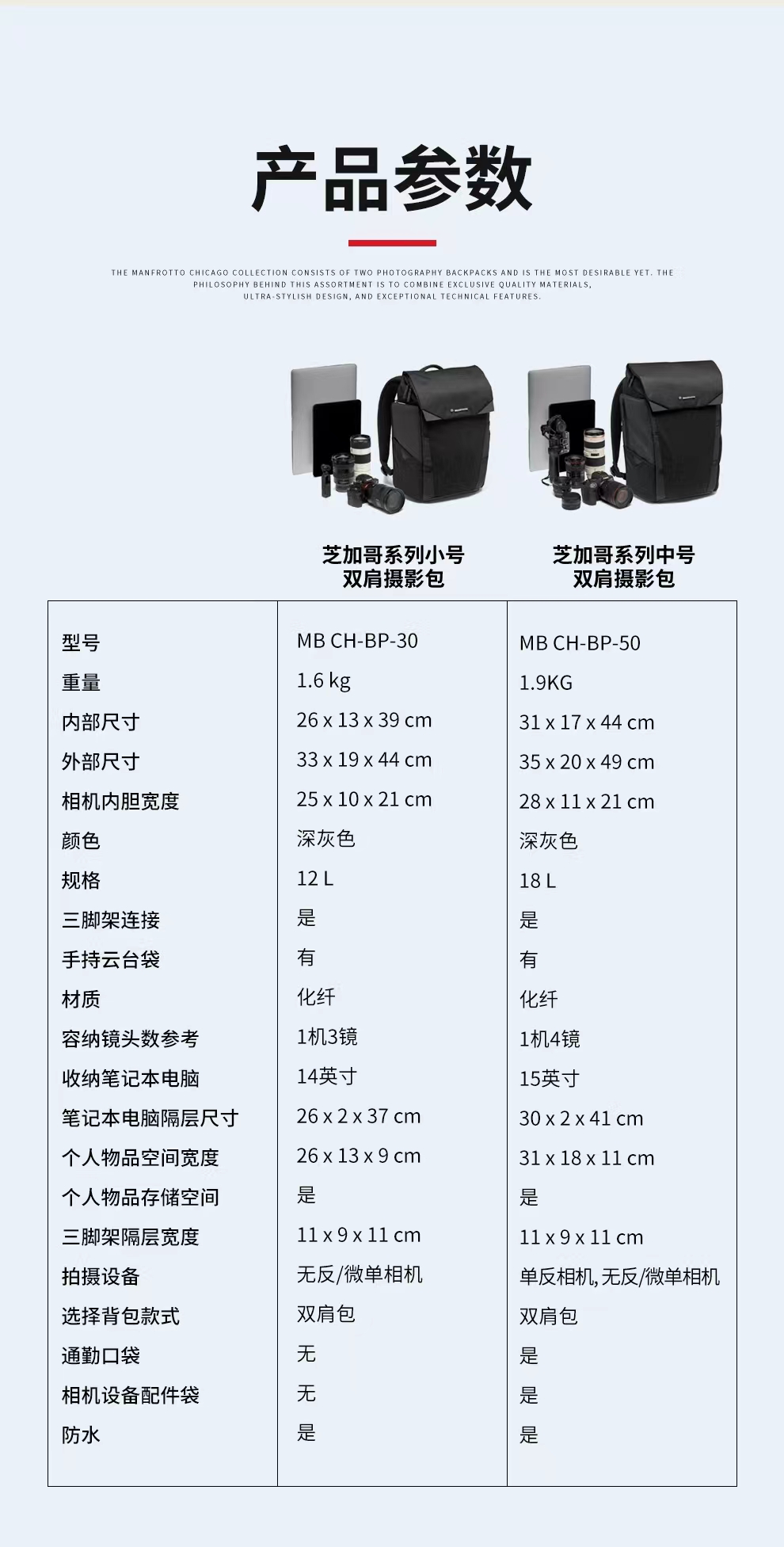 曼富图(Manfrotto)双侧开启双肩包 芝加哥系列 MB CH-BP-50 摄影/旅行/通勤双肩包