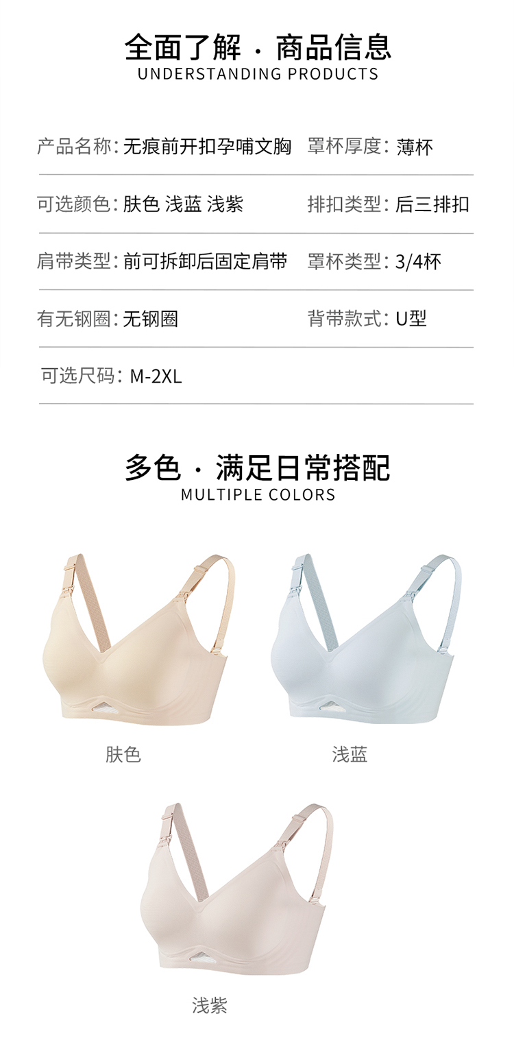 雅黛俪孕妇内衣上开扣哺乳期专用文胸无痕收副乳美背胸罩