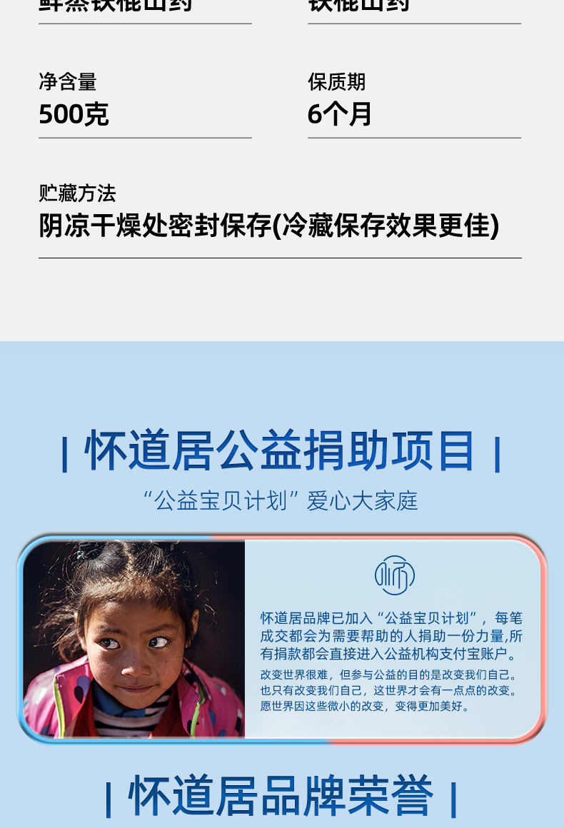 【怀道居】即食鲜蒸铁棍山药500克/盒 真空锁鲜 开袋即食
