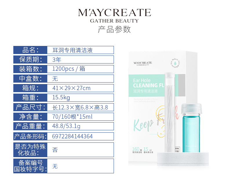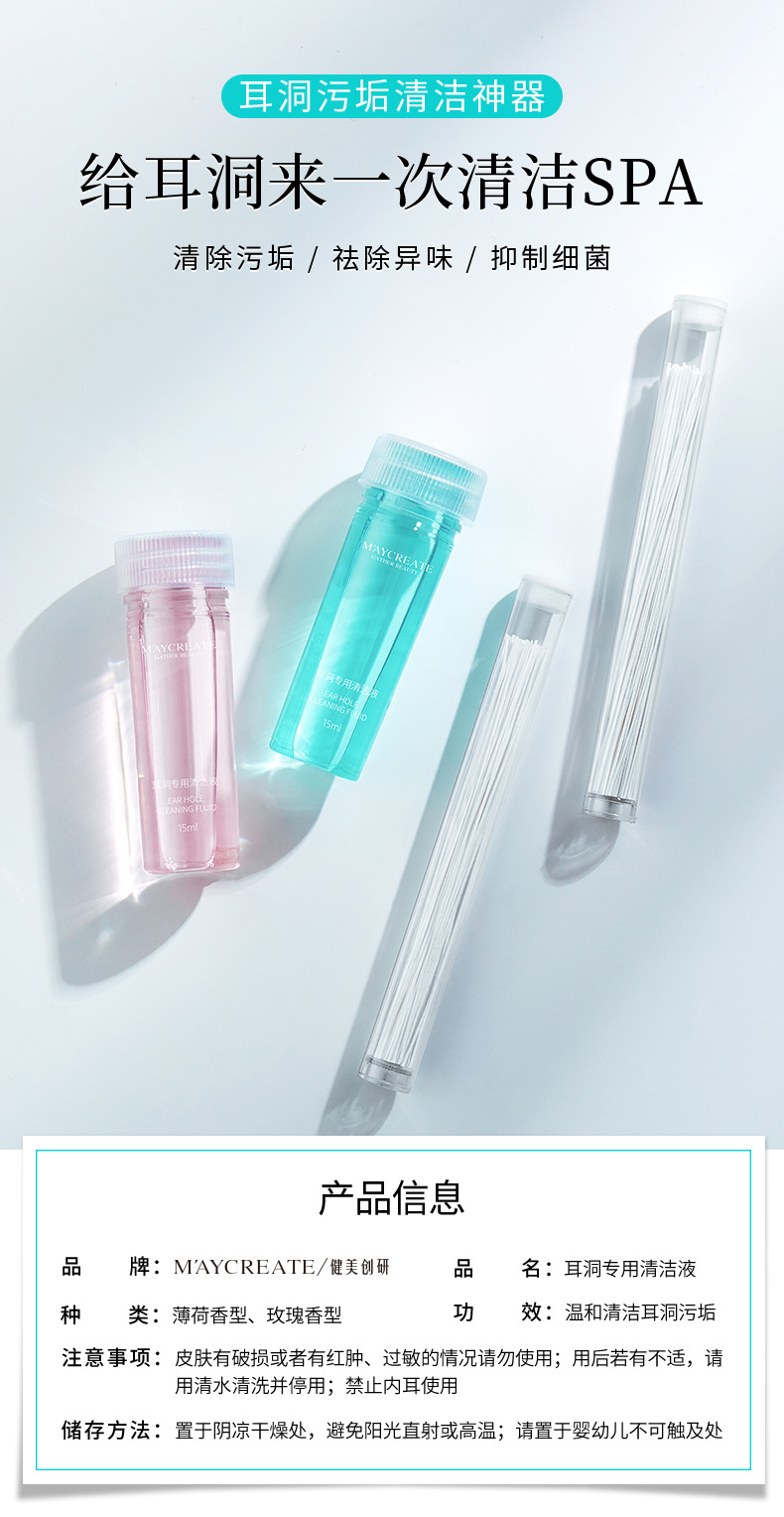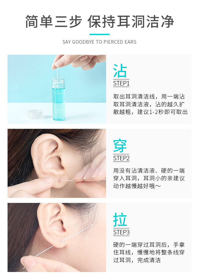 【耳洞清洁线+护理液套装】健美创研 耳洞清洁线耳线清理耳洞液清洗护理防堵去污垢 美妆个护