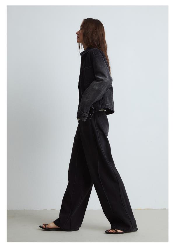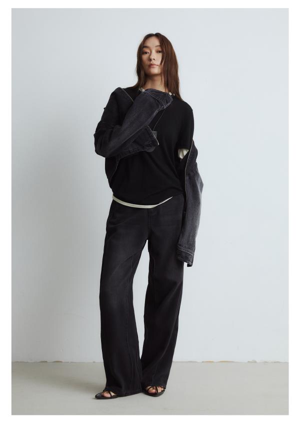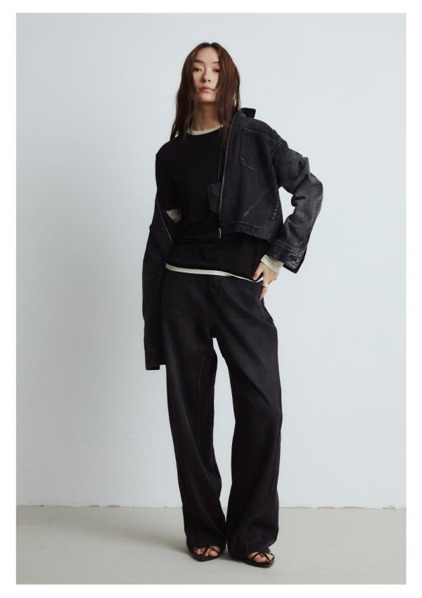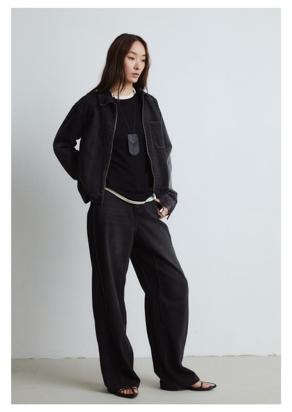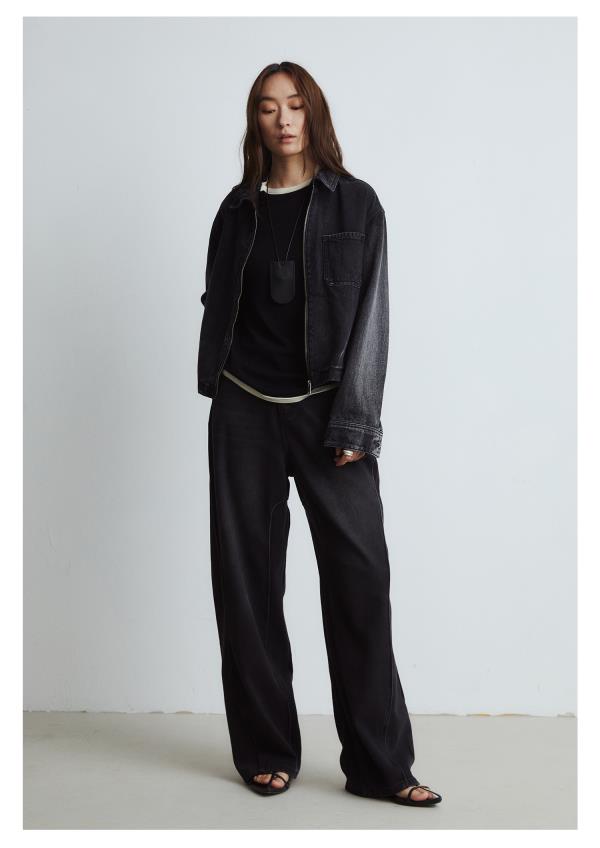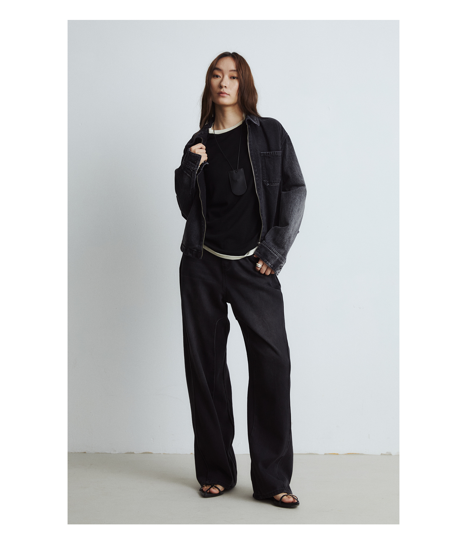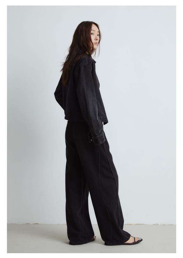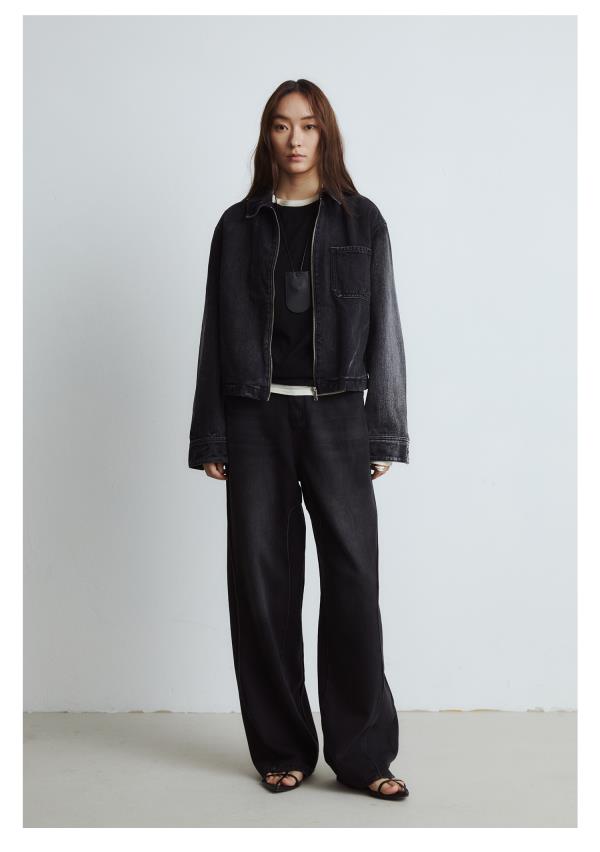 棉仓3561507002-IACHOE春季美式黑色小众短款牛仔外套复古翻领