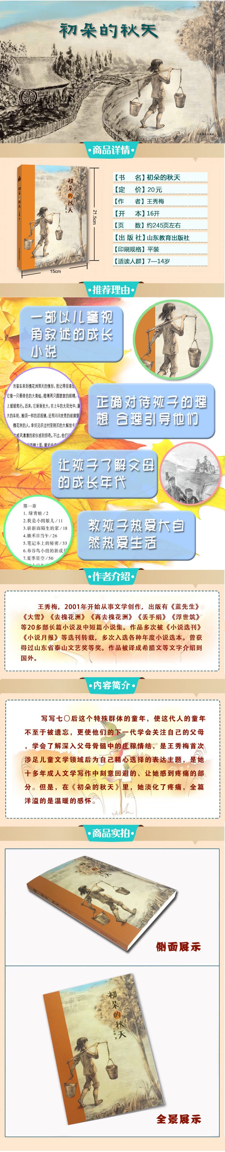 小荷工作坊原创儿童文学 初朵的秋天 王秀梅长篇少年成长小说 精美插画 儿童心灵成长培养阅读写作能力 学生课外读物儿童读物