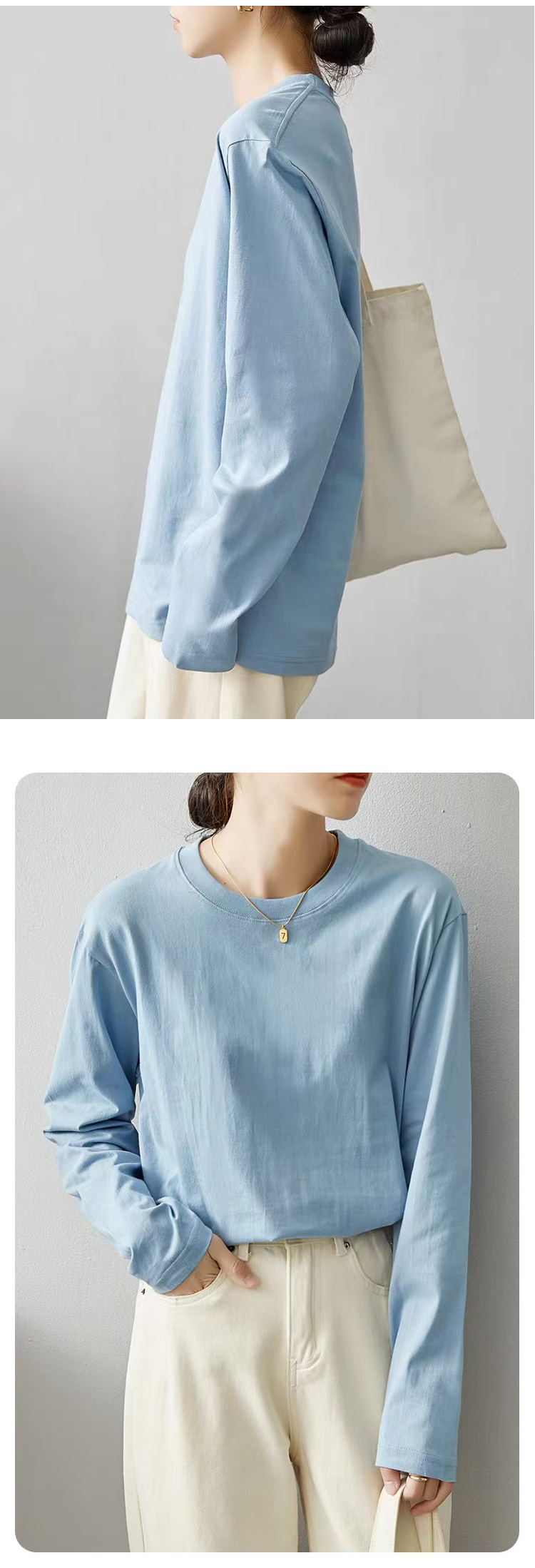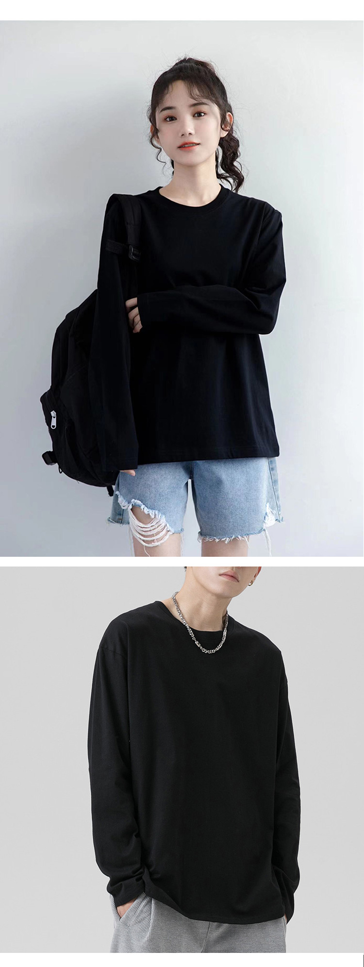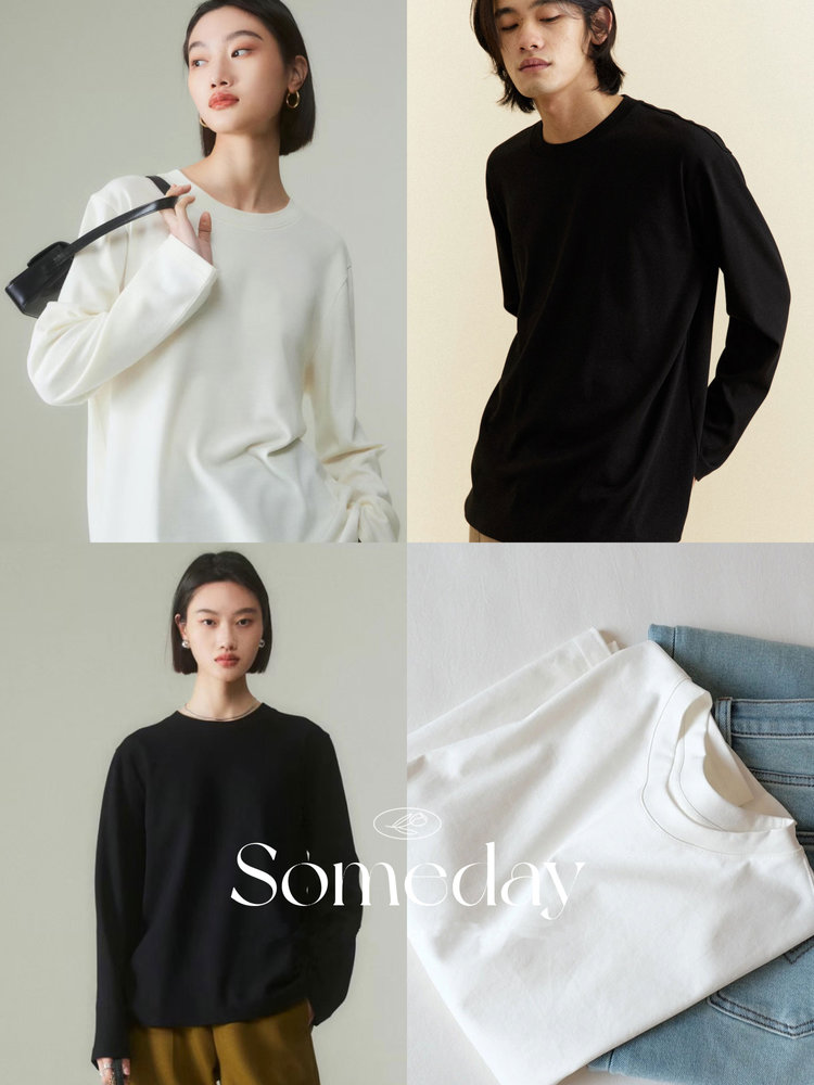 【E茉莉】99元3件!【任选3件+购物车拍】细腻有光泽,穿起来更加舒服。内搭外穿都有型!男女同款长袖T恤8色任选!
