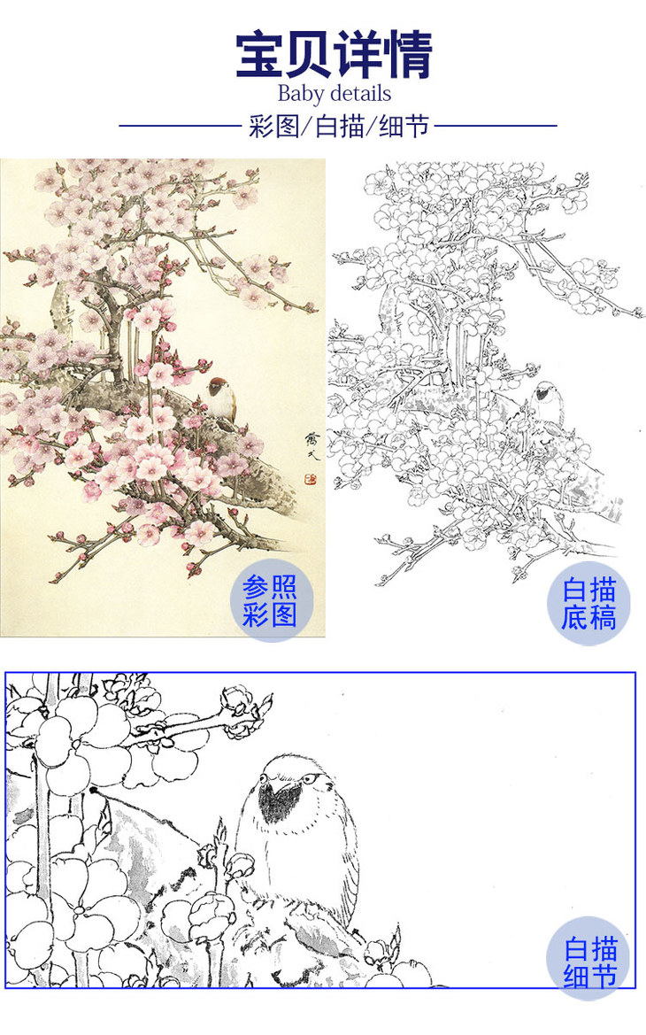 万一竖幅工笔花鸟白描底稿-花鸟-WT26