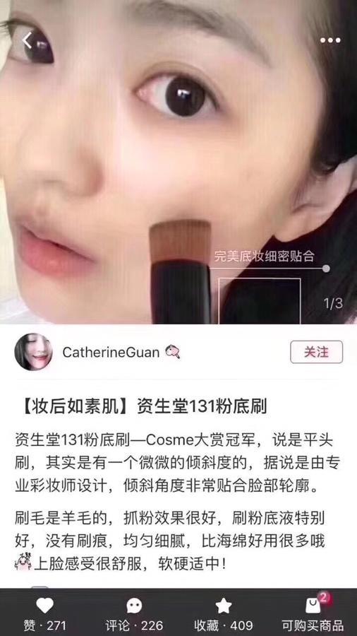 资生堂131粉底刷 刷毛细密,👏🏻非常柔軟,完全不扎皮膚,傾斜的刷頭能與臉部更好貼合💃🏻,用著很順手,👣讓粉底更均勻的融入皮膚,😍刷子能把粉底液均勻的刷開🍀,細小毛孔都被覆蓋,光滑細膩🌳,完全沒有刷痕!完全沒有妝感!😖握感很好,質感也不錯,資生堂131掃小小一隻👇🏻,方便攜帶~💨