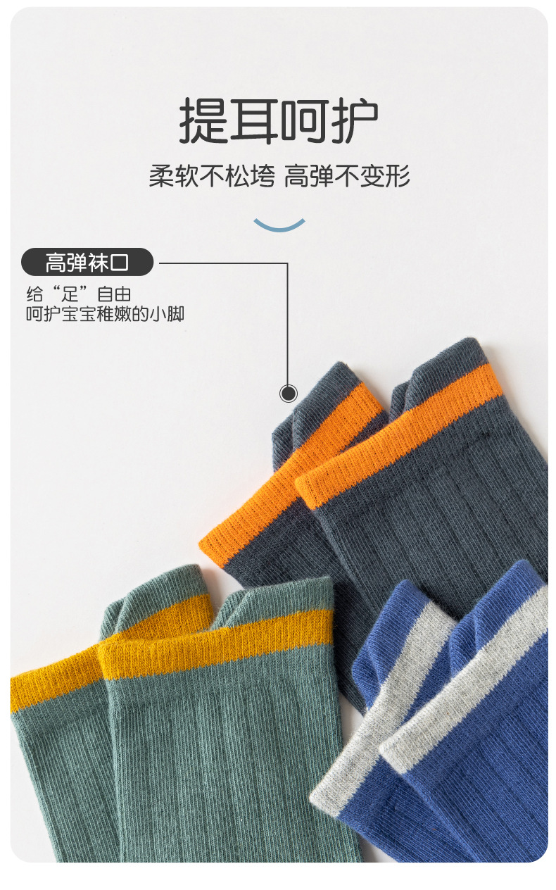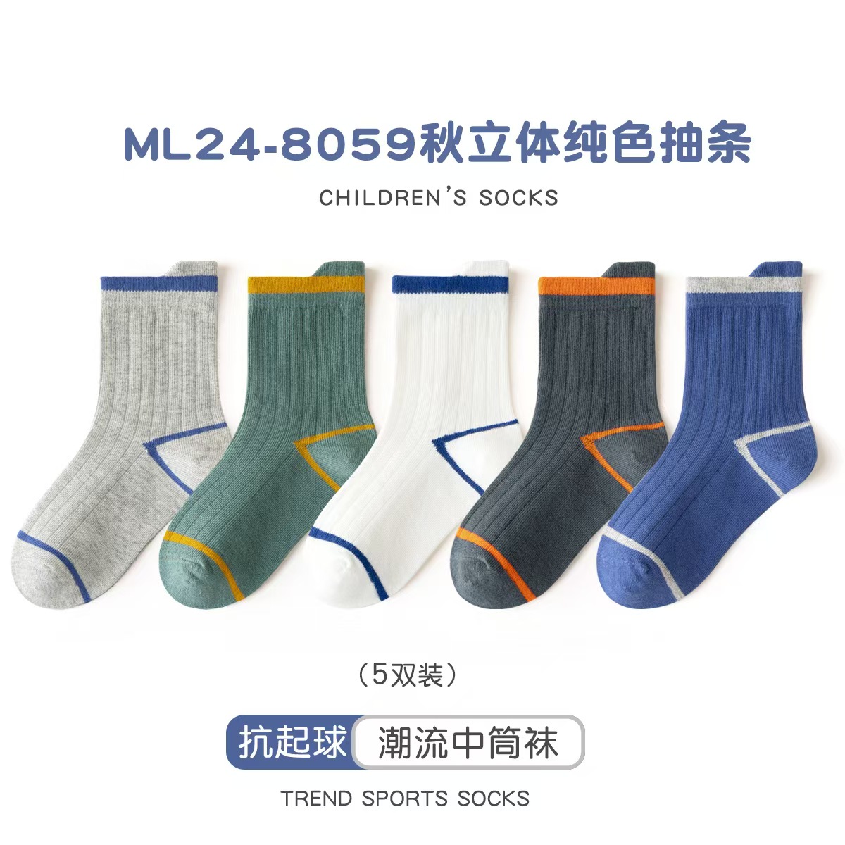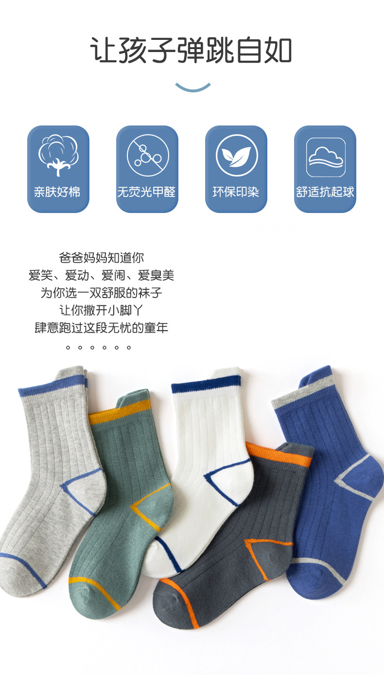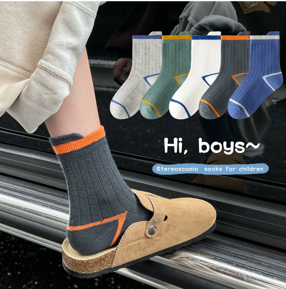 BRAND纯棉立体抽条男童袜(5色各1)/5双(L码,适合29-32码)补单专用