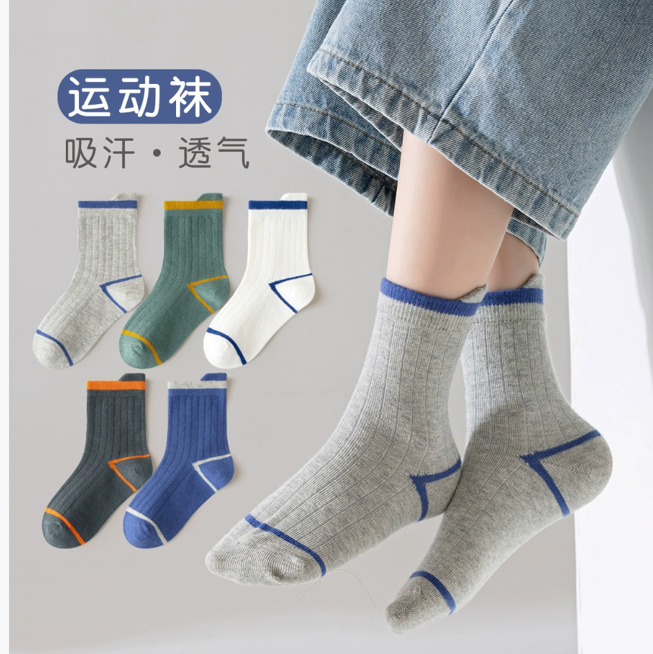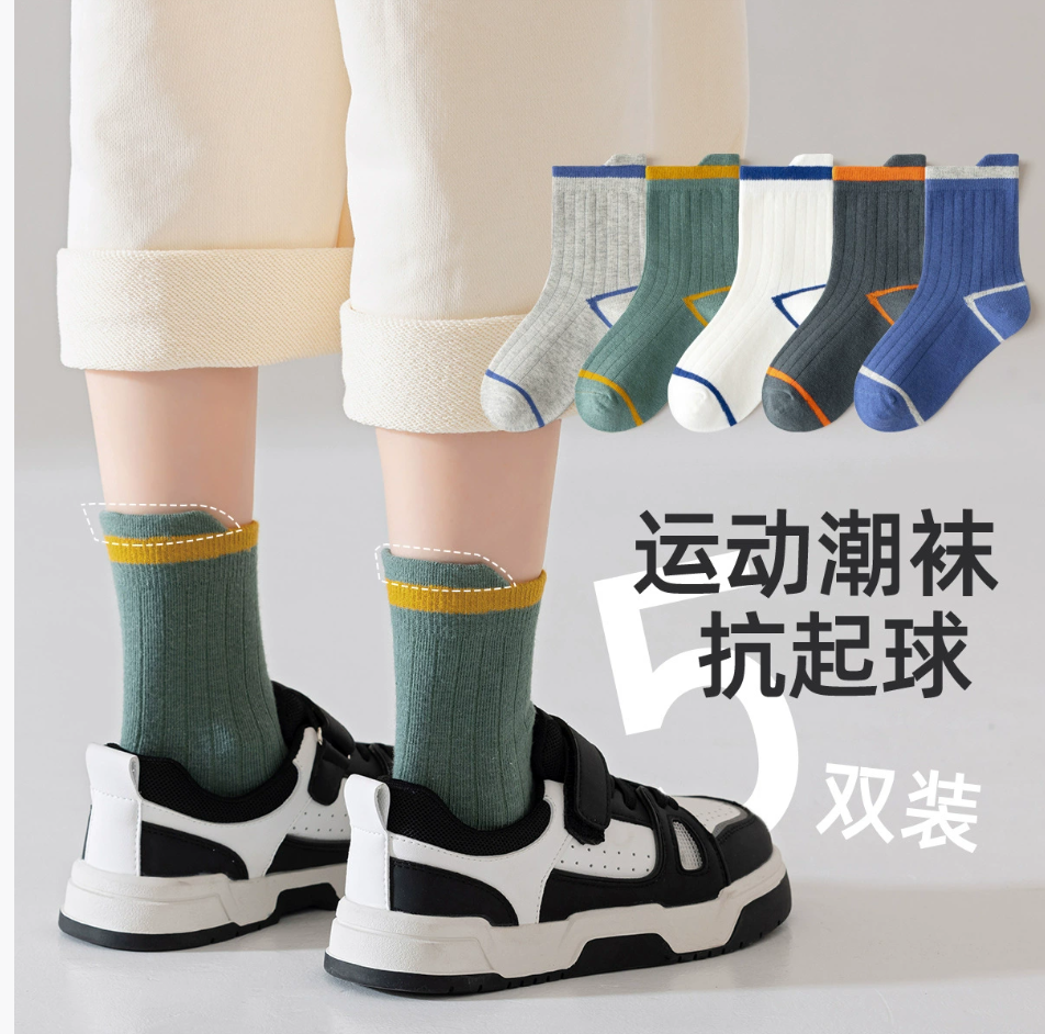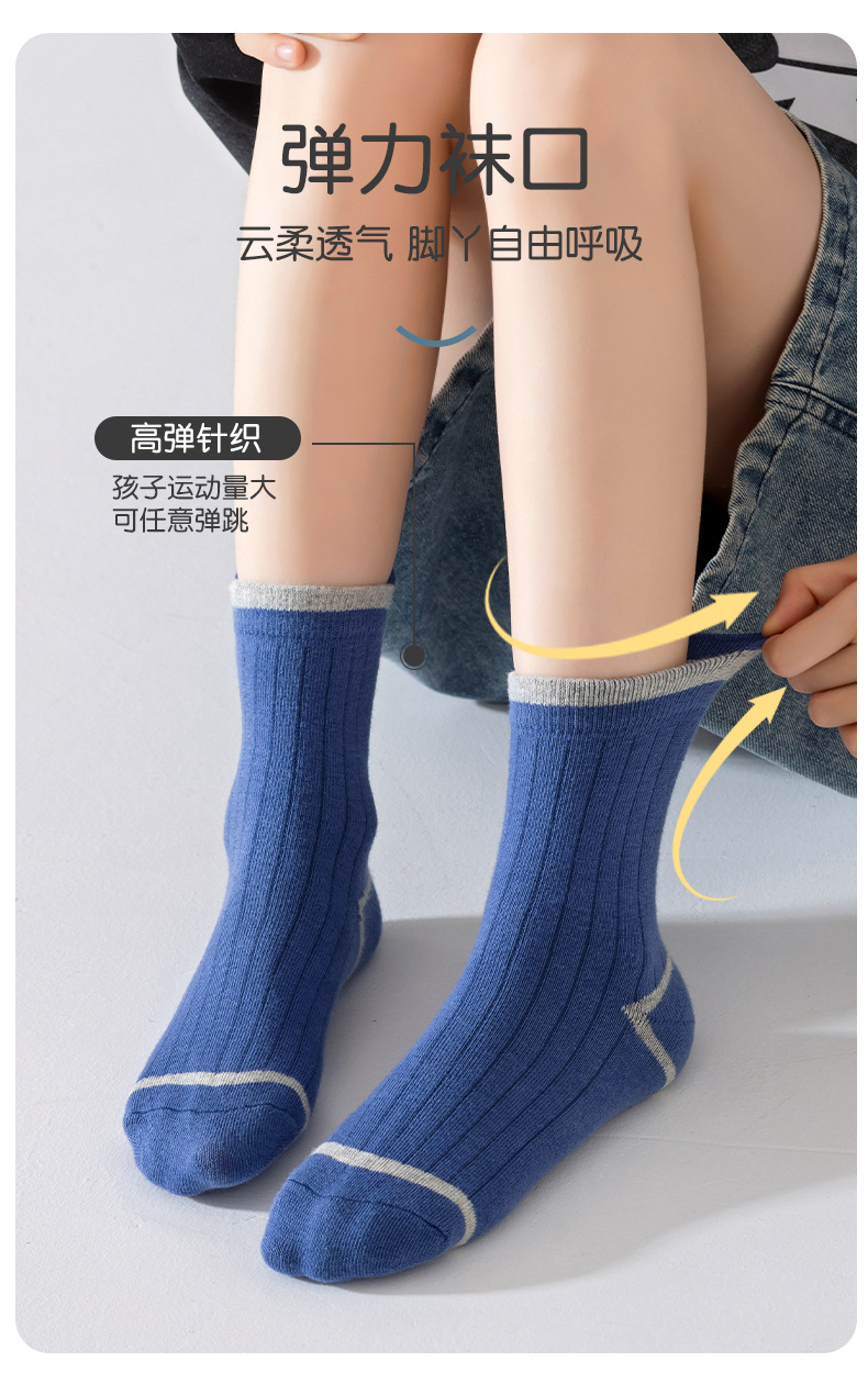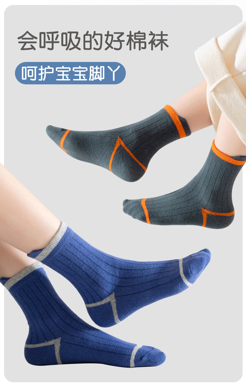BRAND纯棉立体抽条男童袜(5色各1)/5双(L码,适合29-32码)补单专用