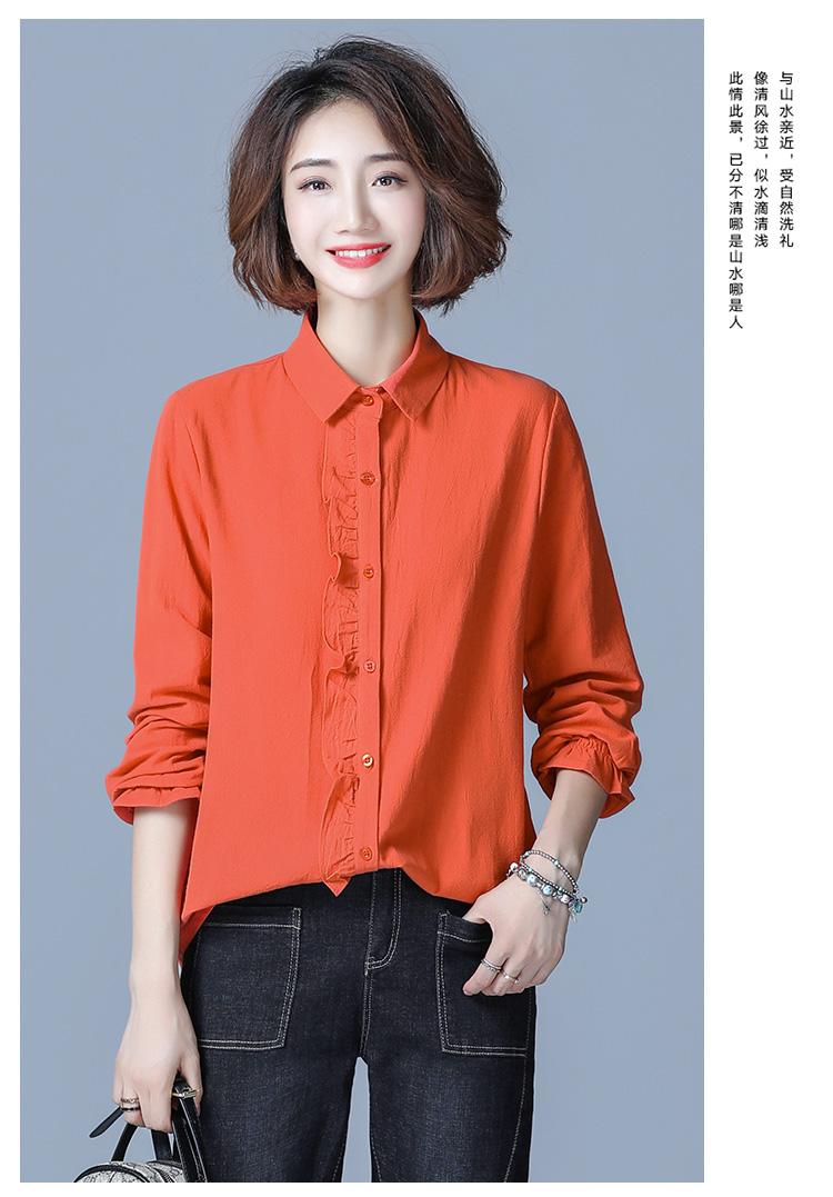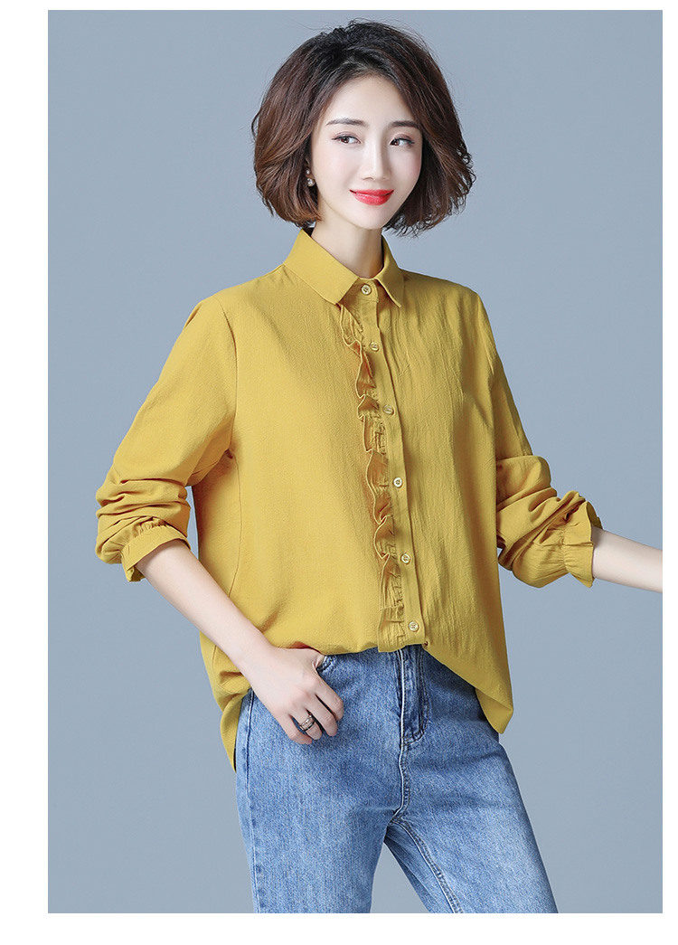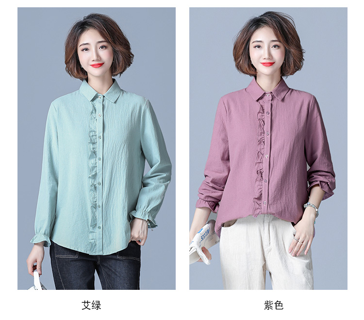 WZNH-FZC19337舒适修身单排扣修身显瘦气质减龄木耳边百搭衬衫