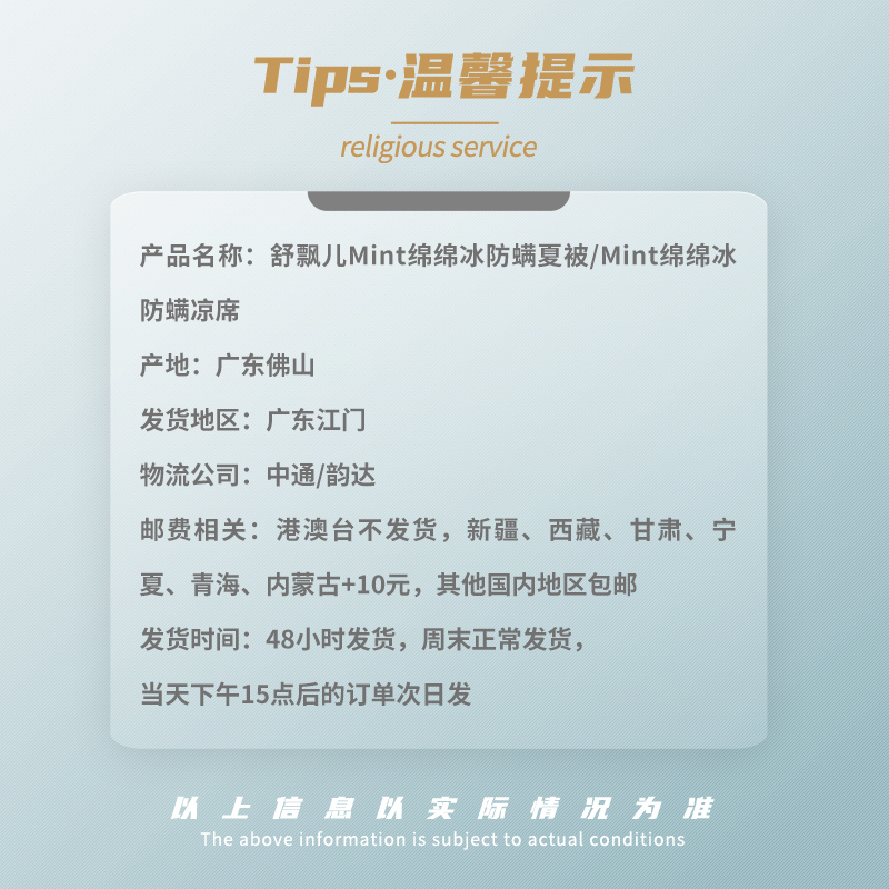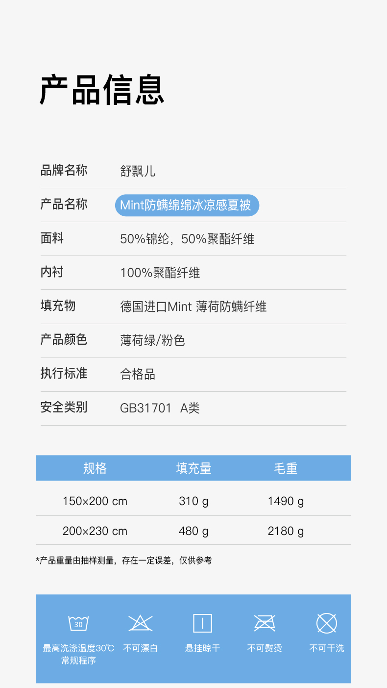 舒飘儿Mint绵绵冰防螨夏被/Mint绵绵冰防螨凉席 透气不闷热家用夏季空调被空调席子