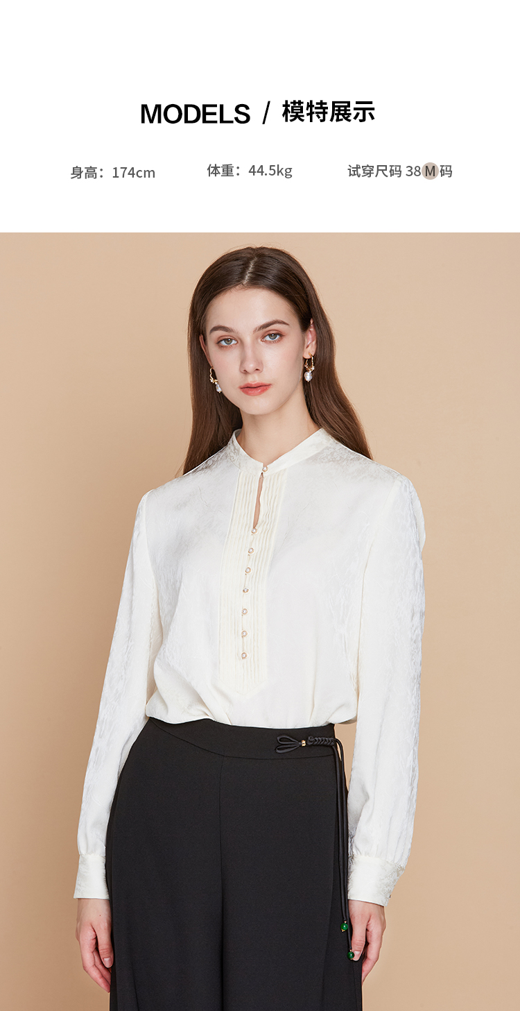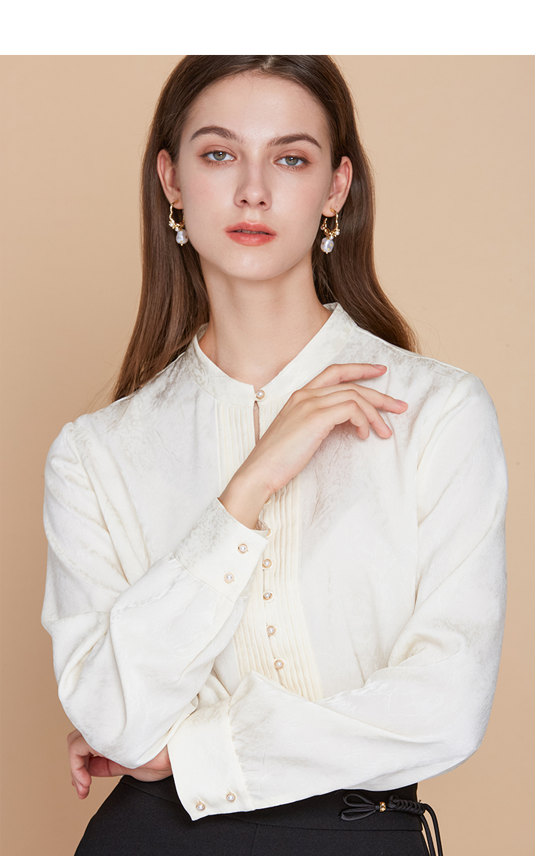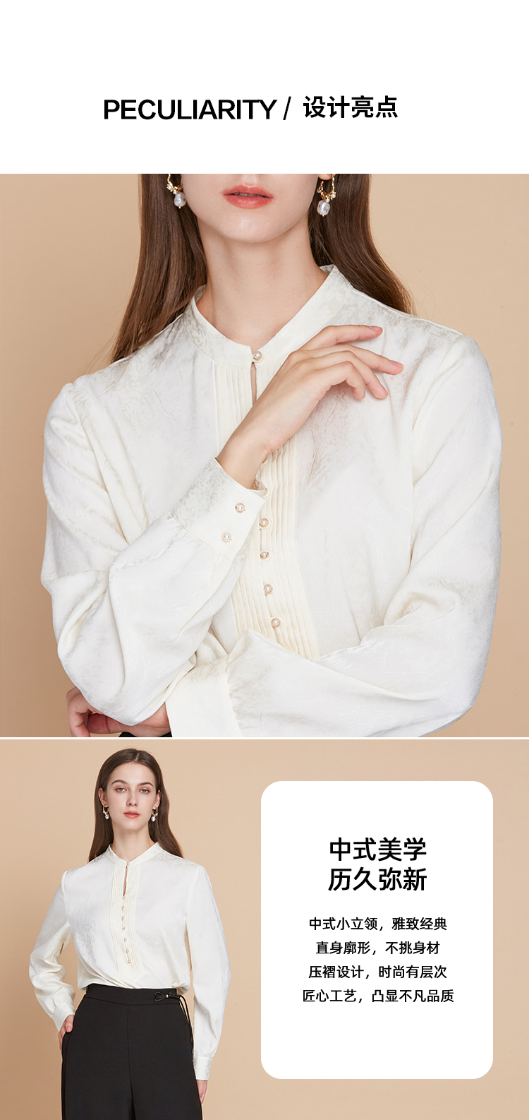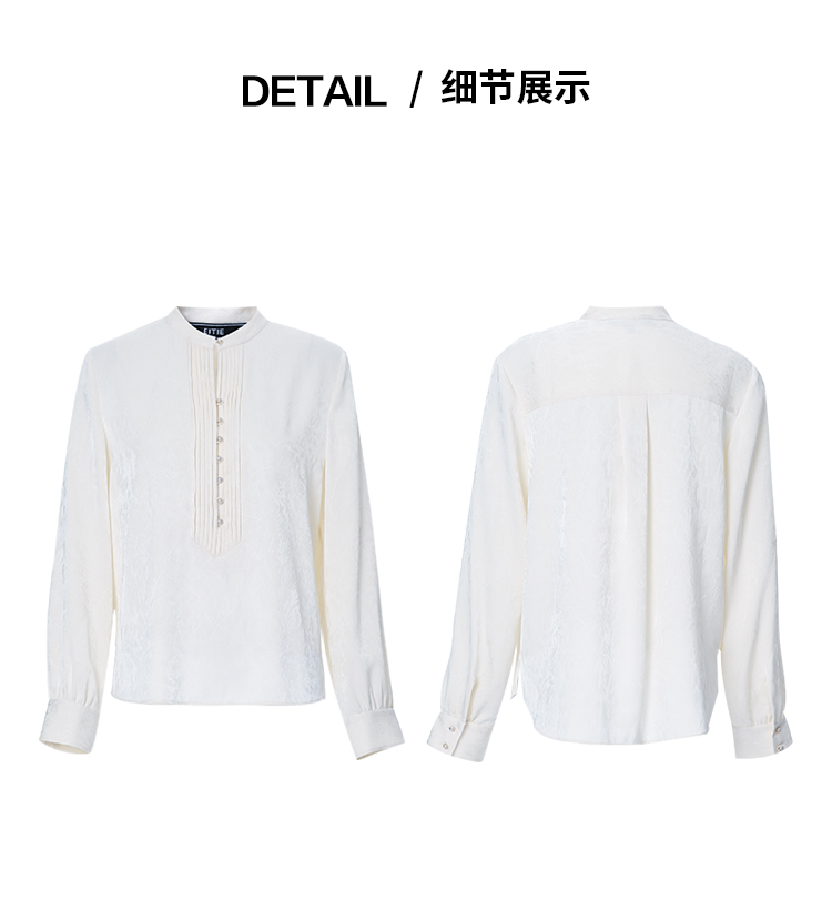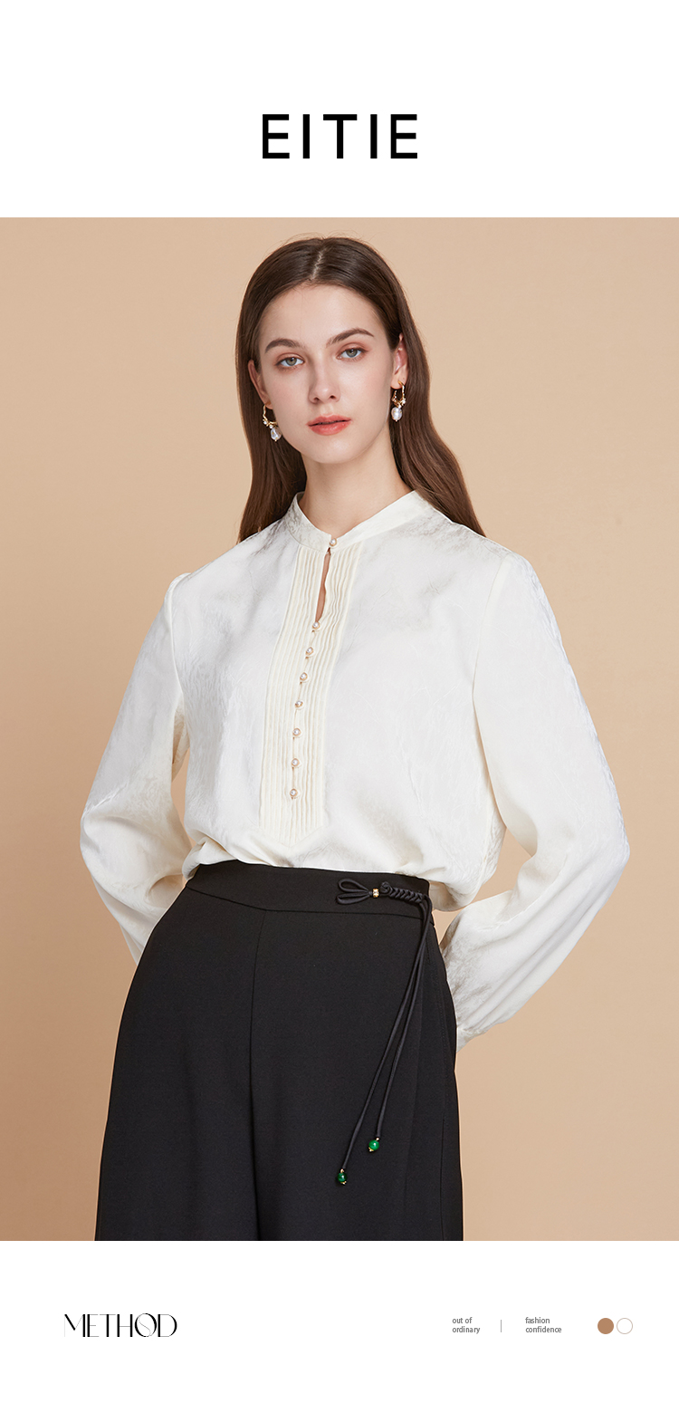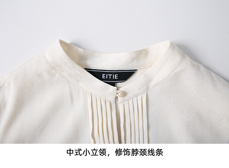 EITIE爱特爱气质复古压褶法式优雅直筒立领衬衫上衣2025秋季新款C2513808