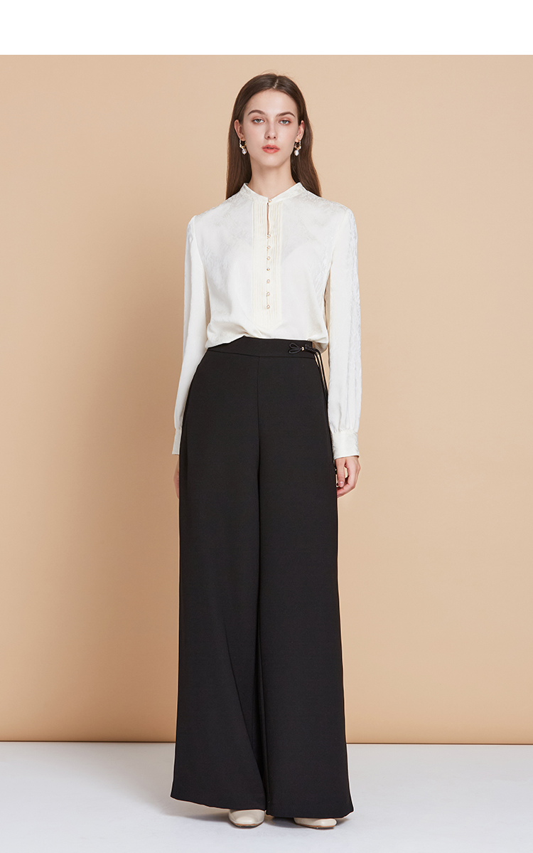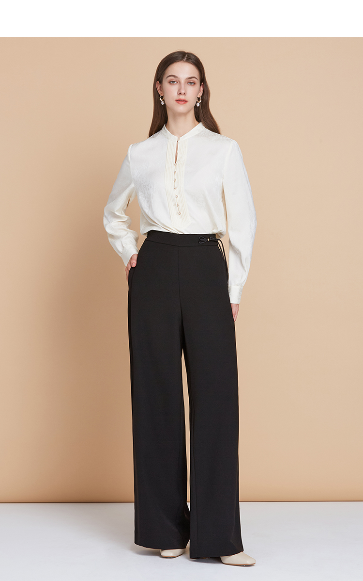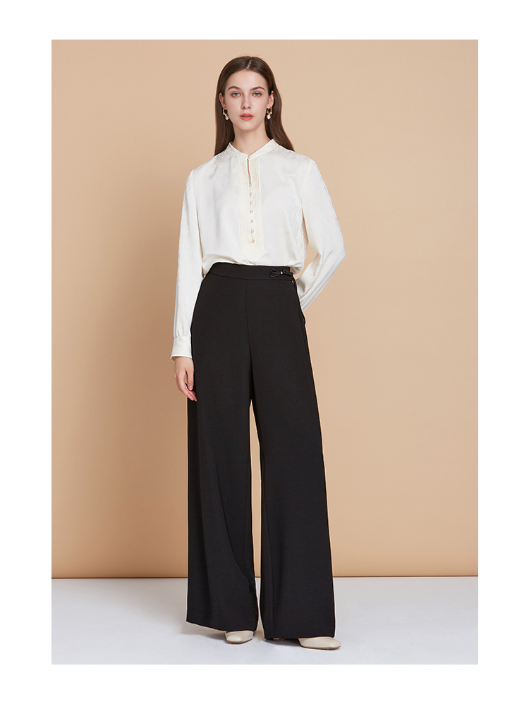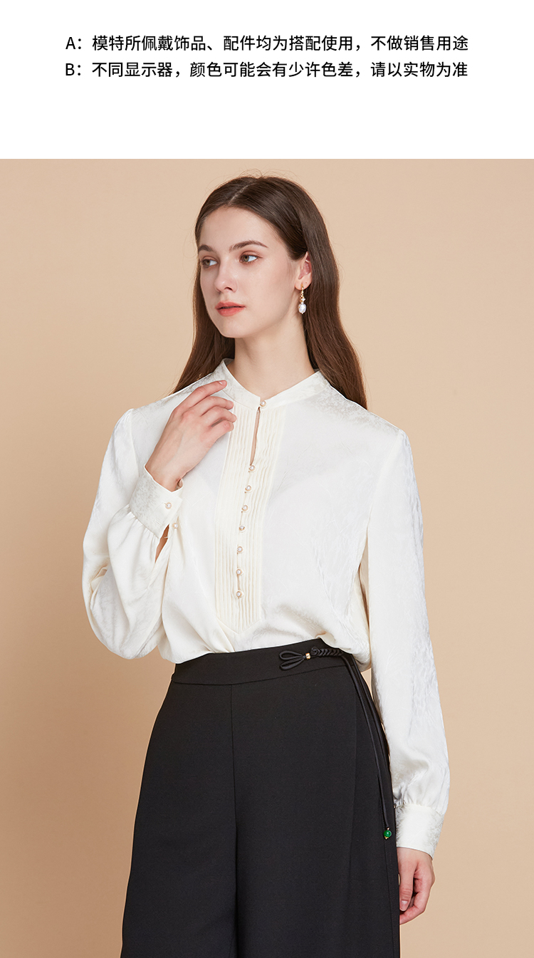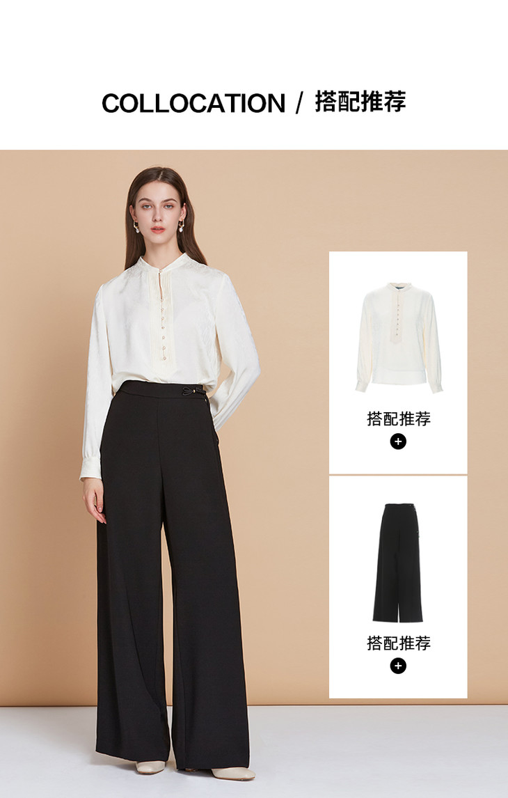 EITIE爱特爱气质复古压褶法式优雅直筒立领衬衫上衣2025秋季新款C2513808