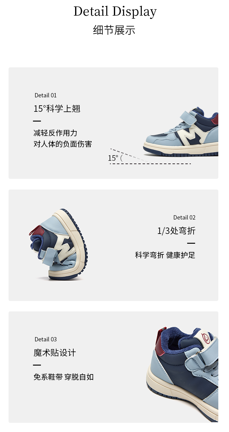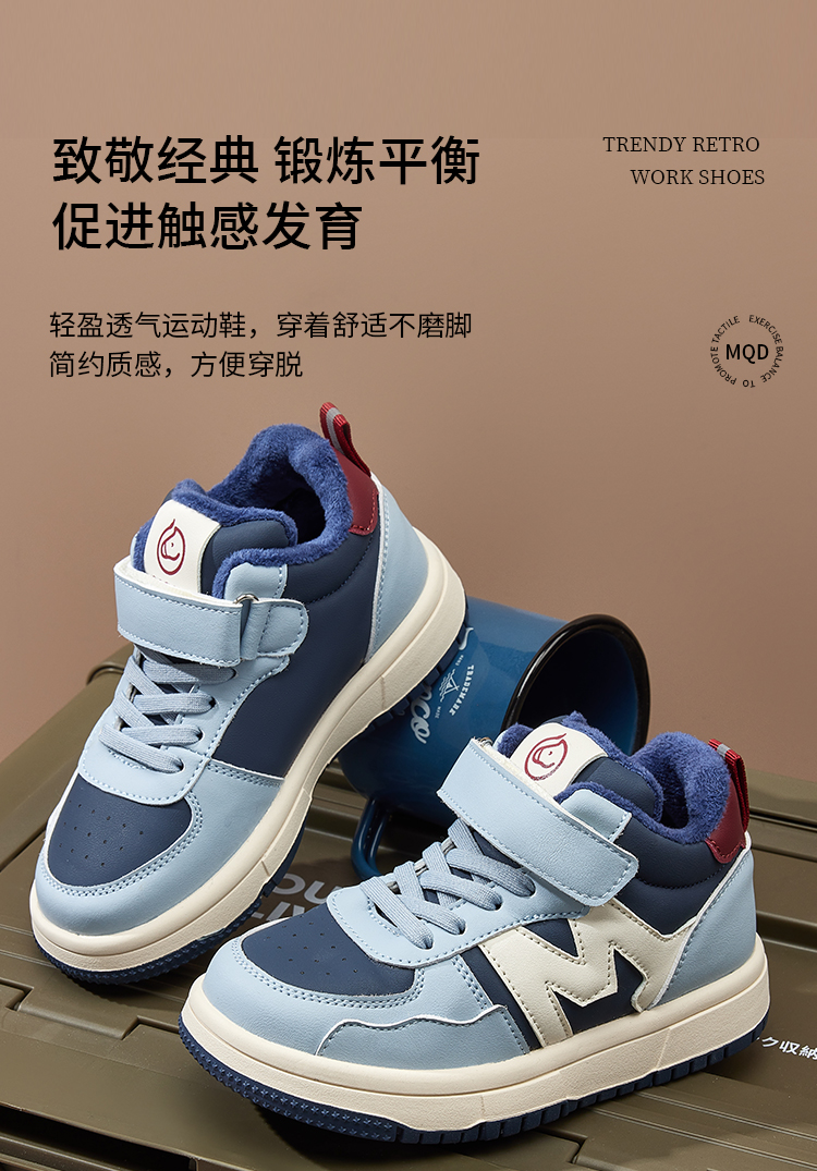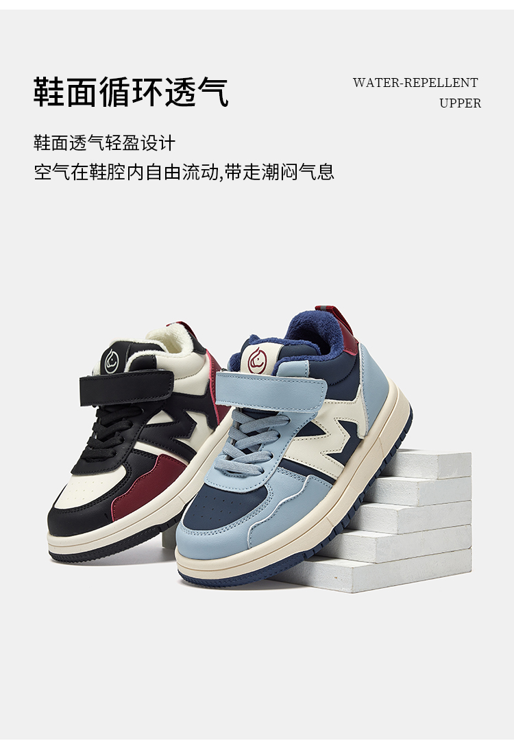 【ZY马骑顿】马骑顿男童加绒棉鞋冬季运动板鞋大童皮面男孩