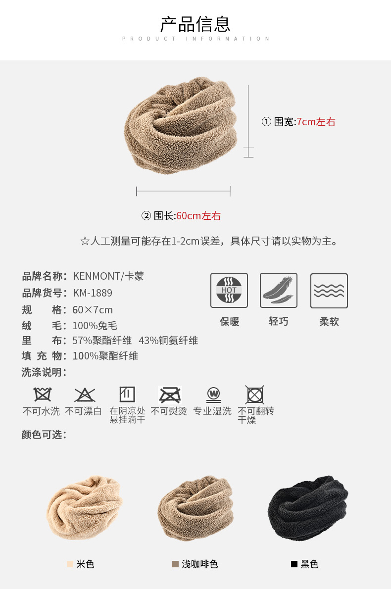 KENMONT卡蒙海虎里围巾KM-1889 保暖舒适 自然褶皱 贴合颈部