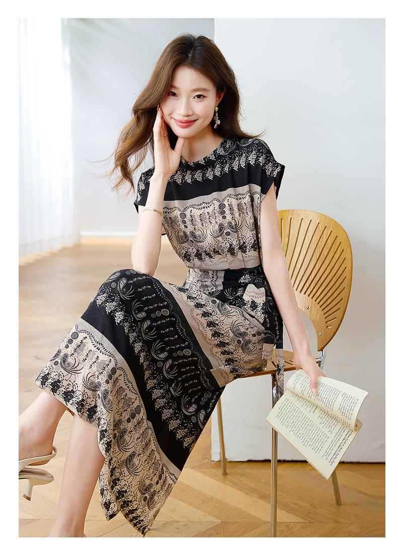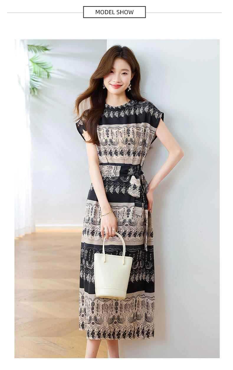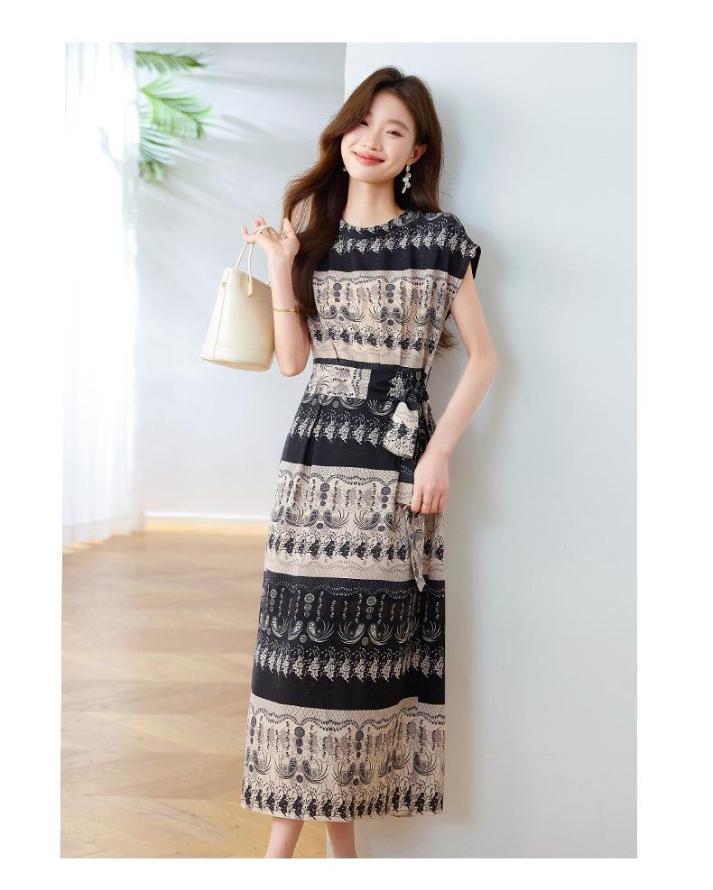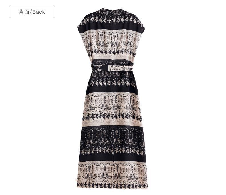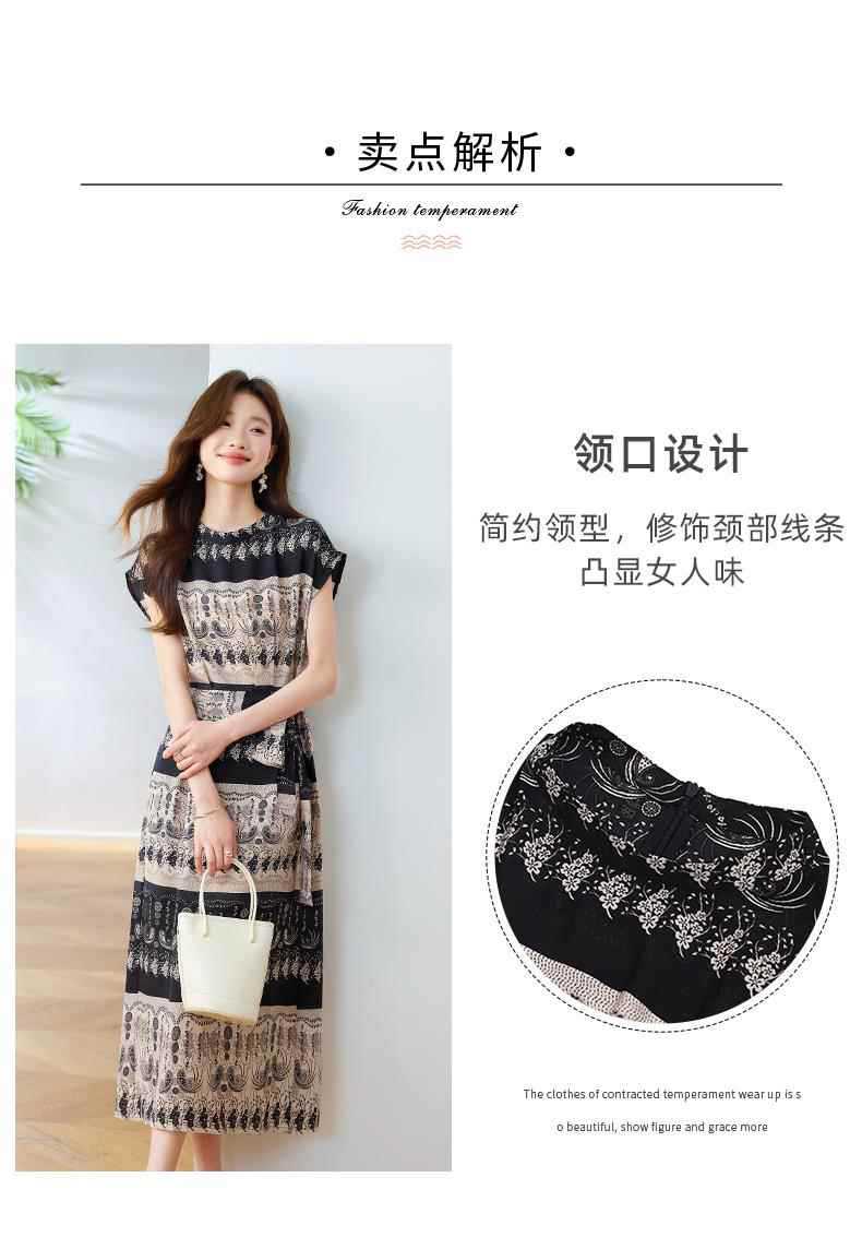 时尚气质复古休闲撞色,印花收腰显瘦好看连衣裙HR-BBL5013