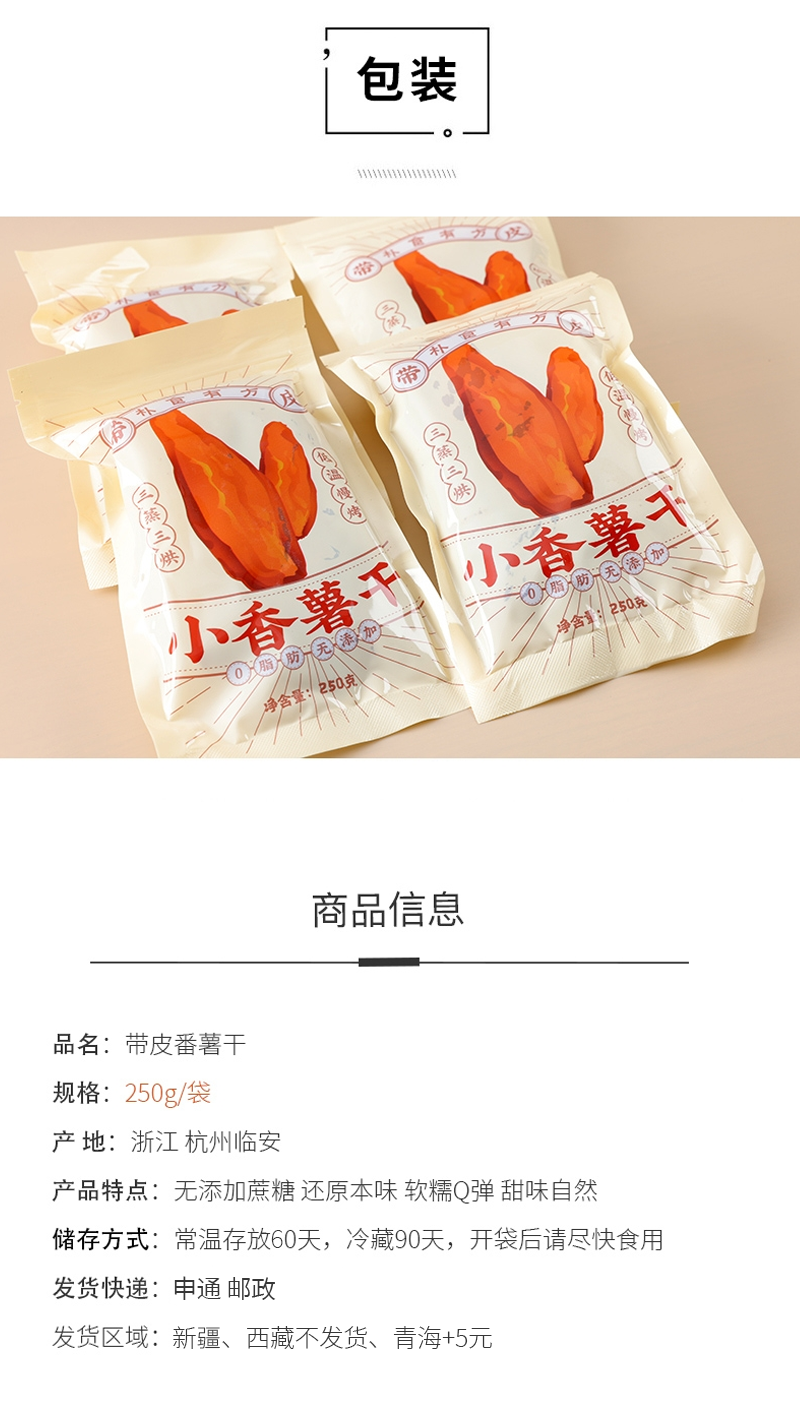 【甜糯原香味】朴食有方小香薯干 天目山倒蒸地瓜干农家自制软糯健康早餐儿童零食 250g/袋