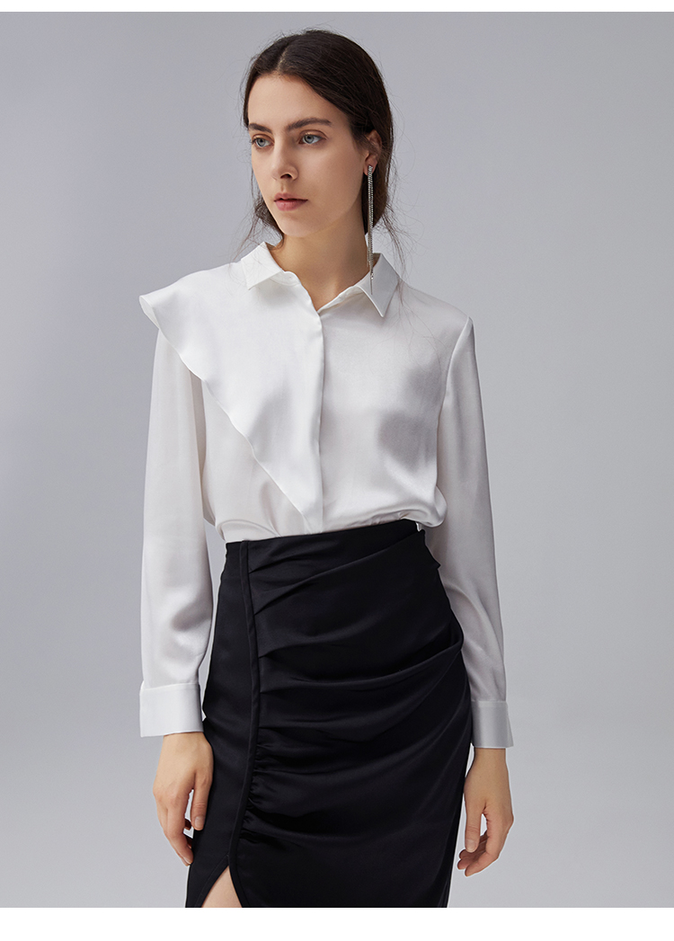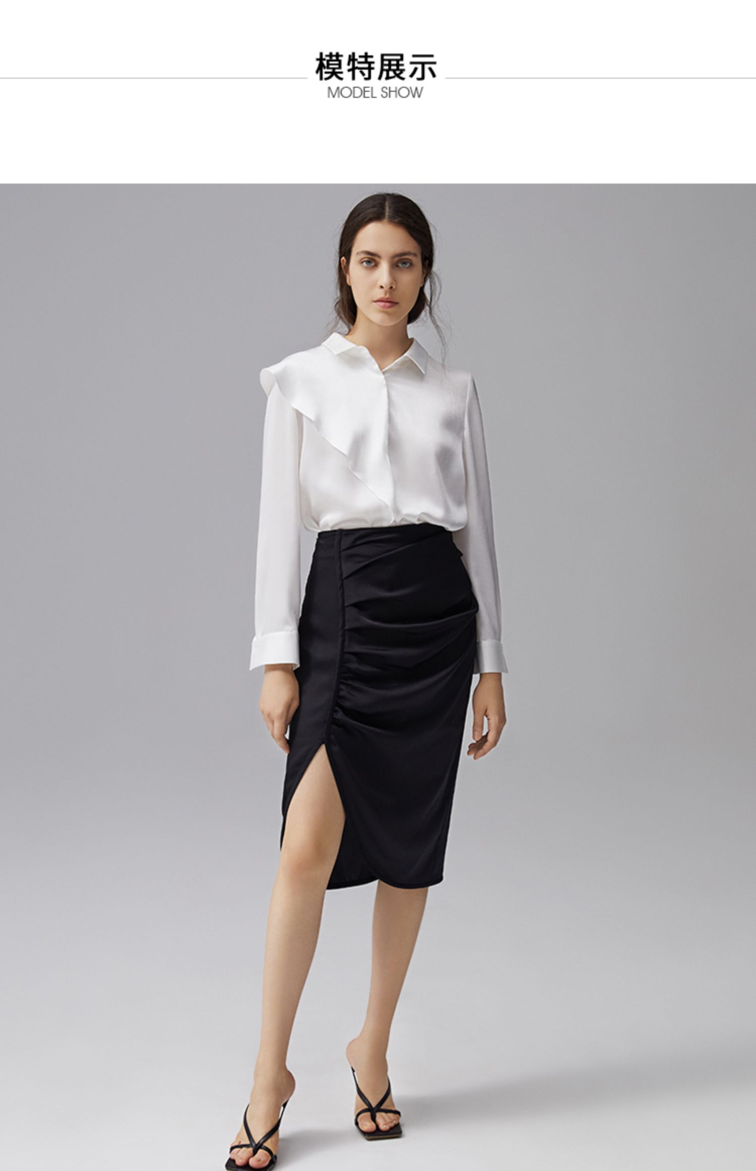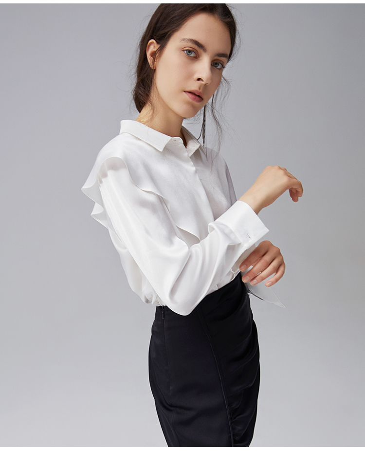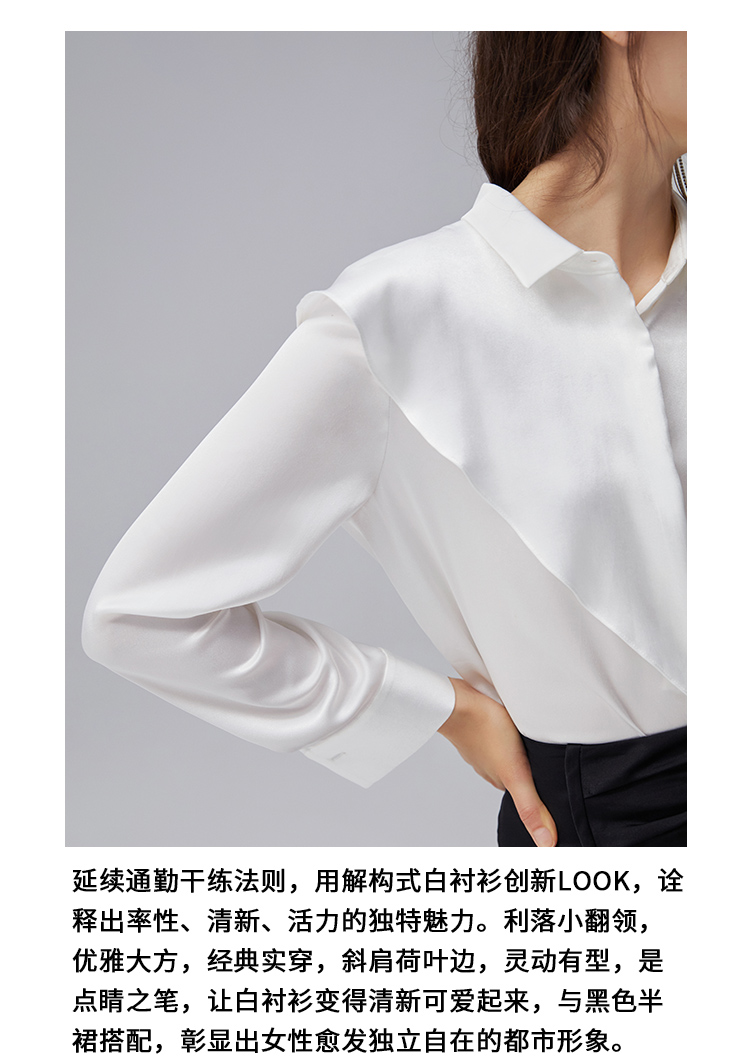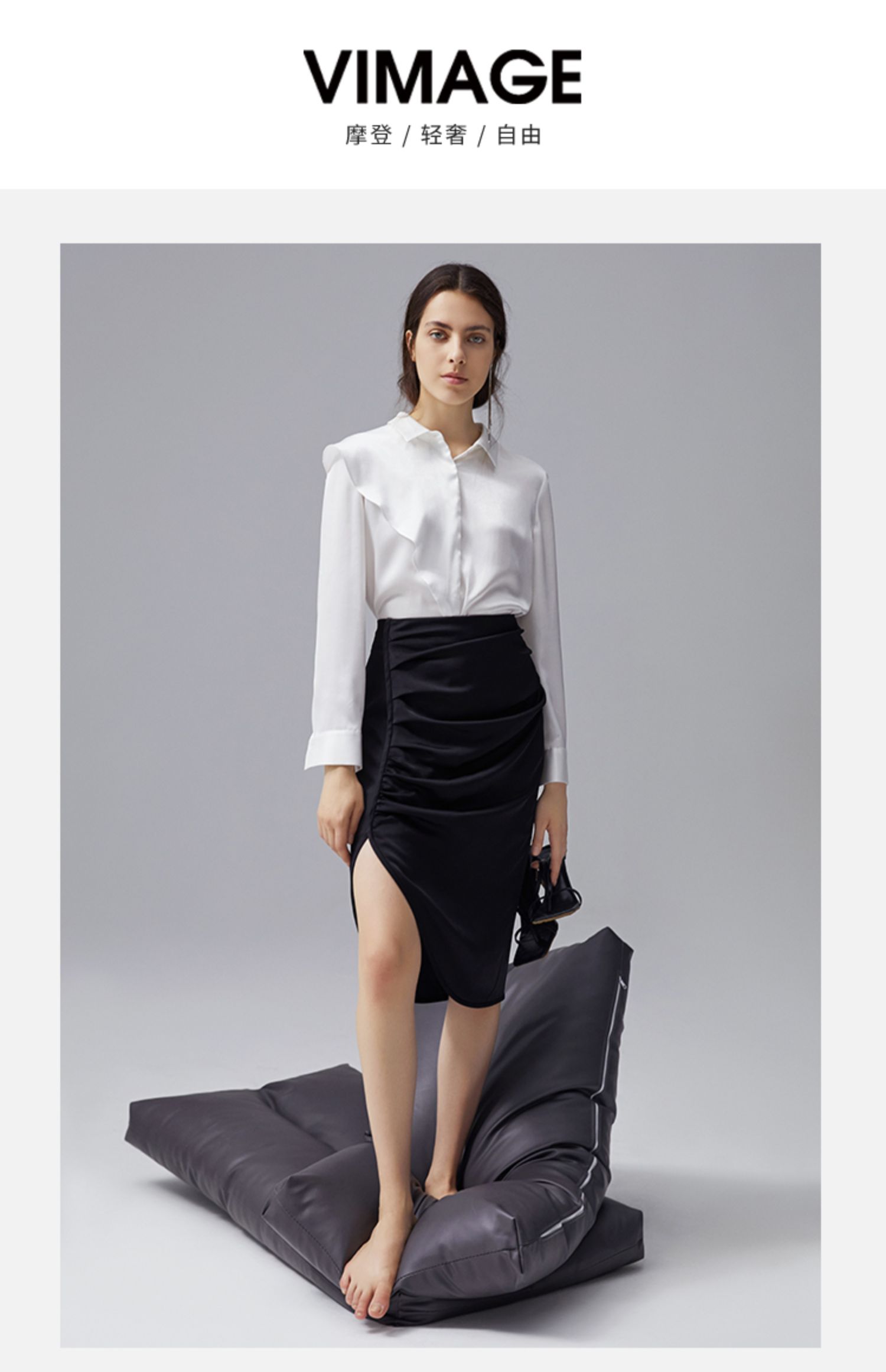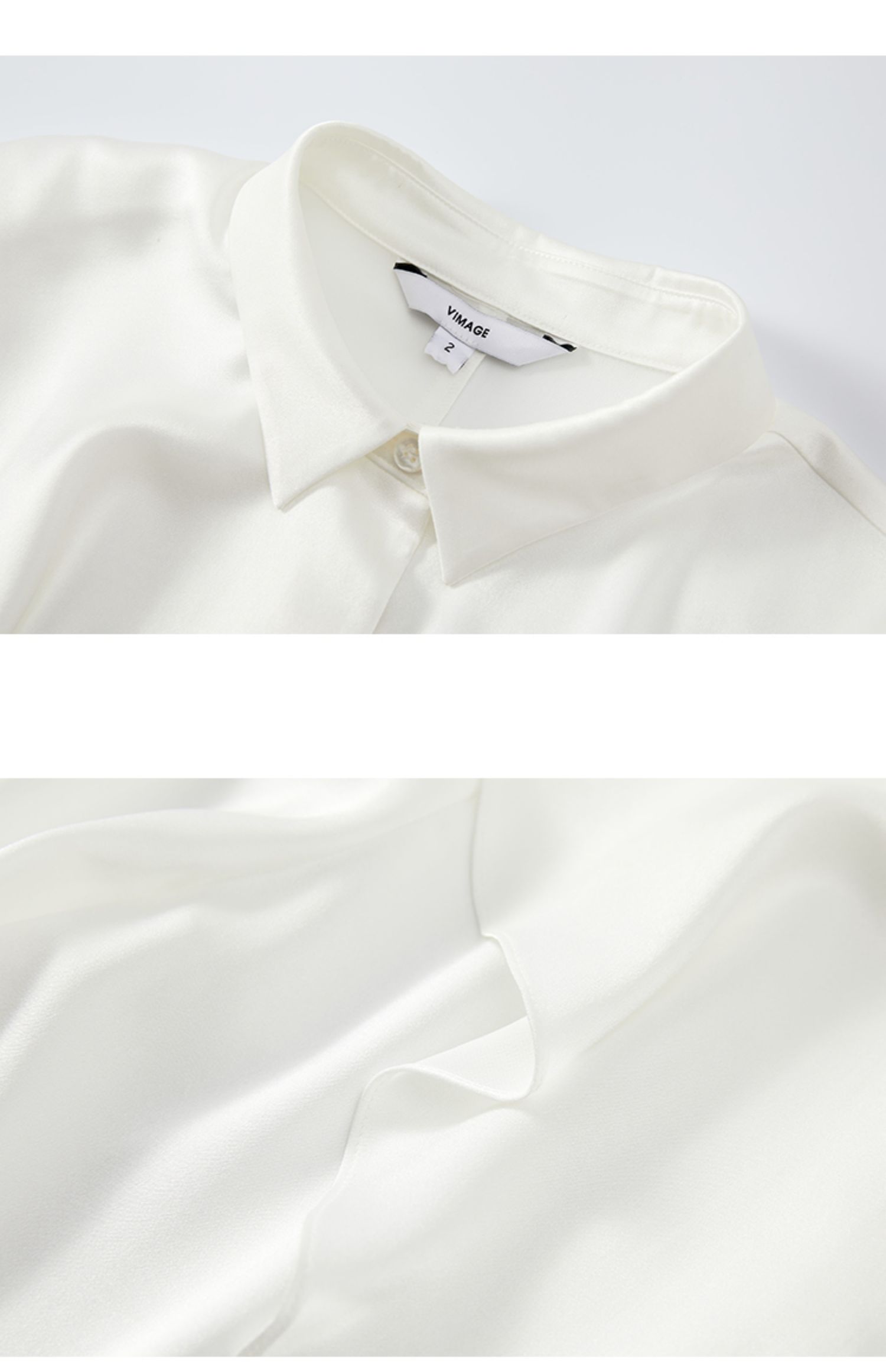 VIMAGE纬漫纪新款衬衫女休闲百搭V领长袖衬衣VC2109220