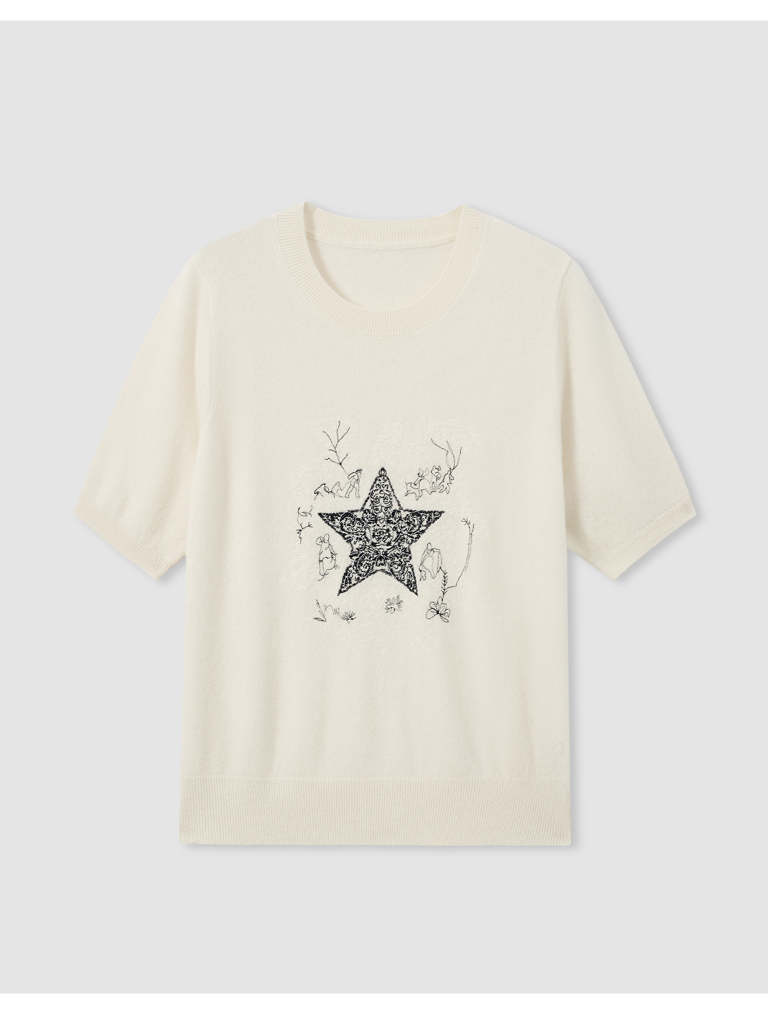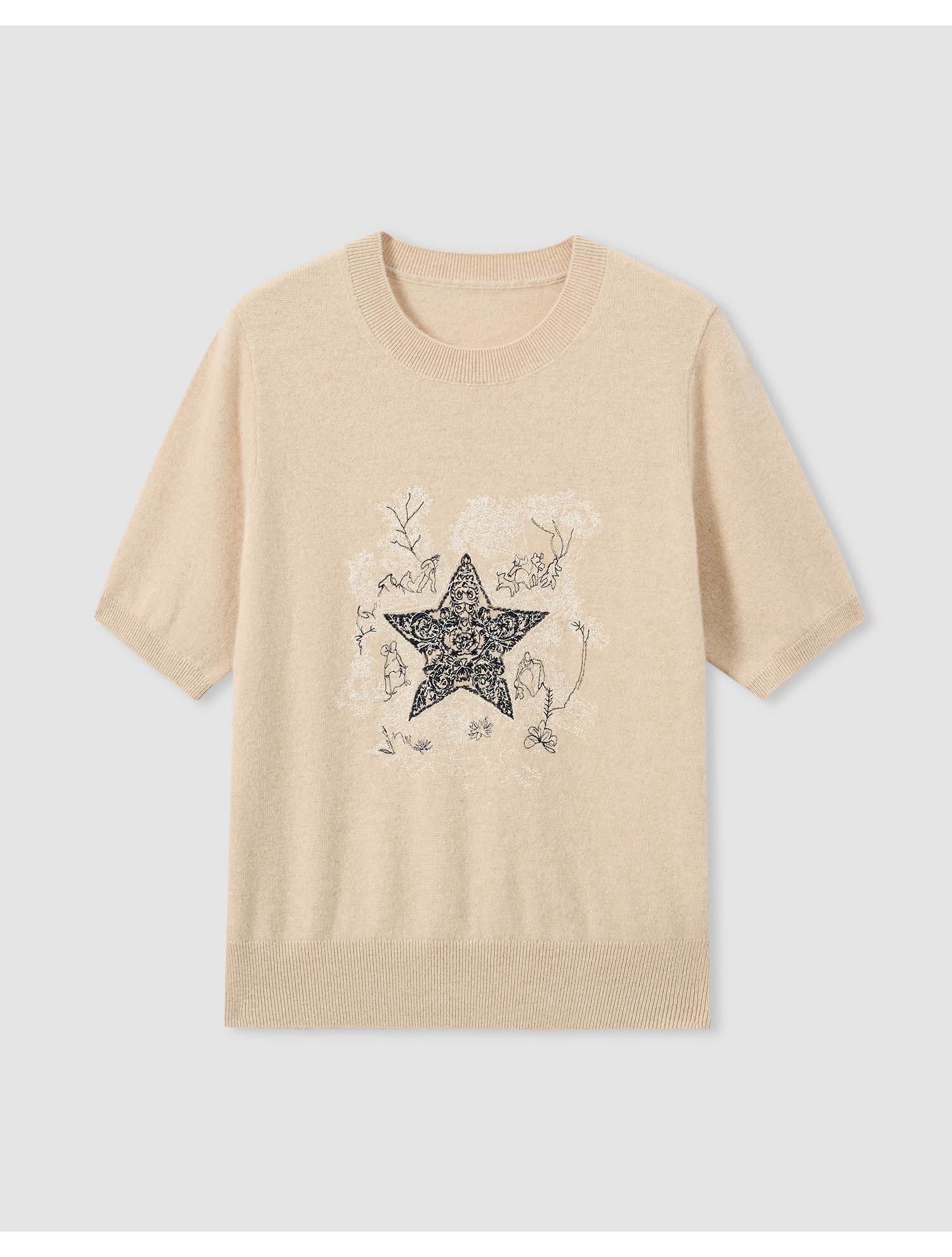 【咕咕同款】KINGDEER/KD女式简约高级感刺绣短袖羊绒衫L805512轻运动/花朵/休闲款鹿王