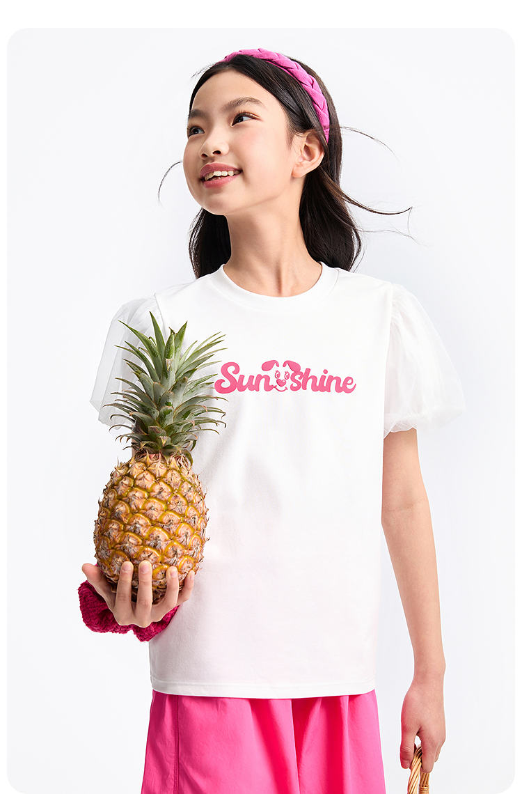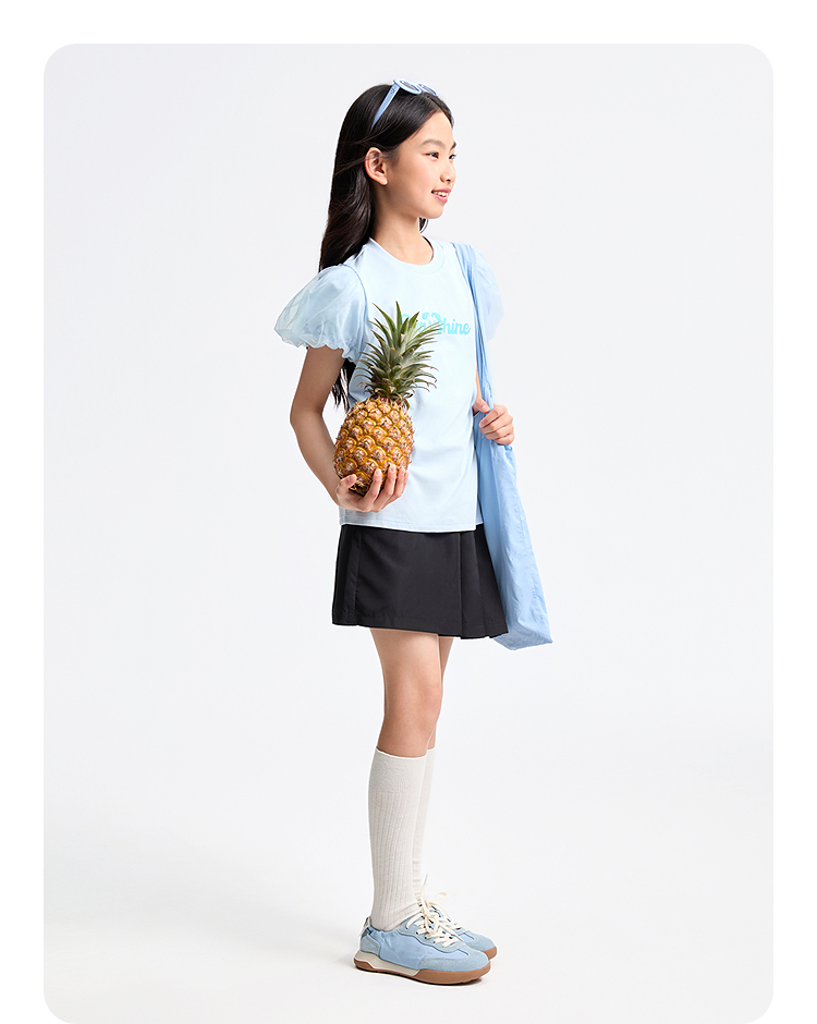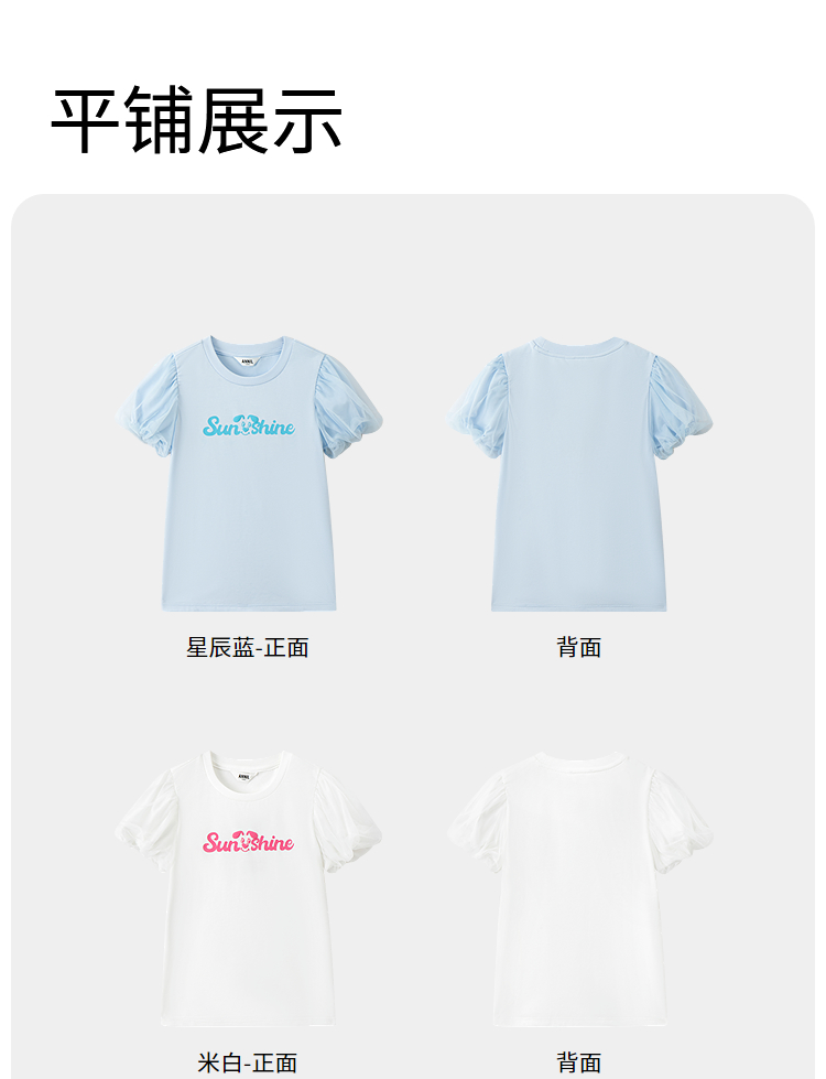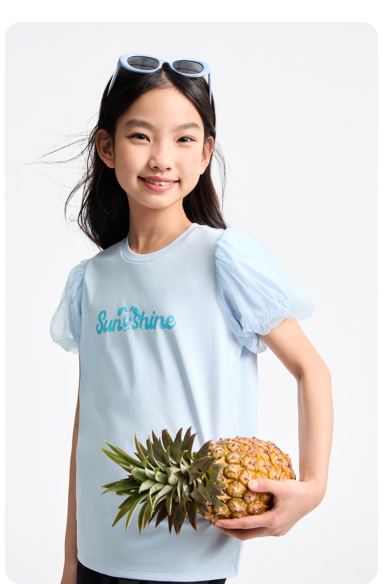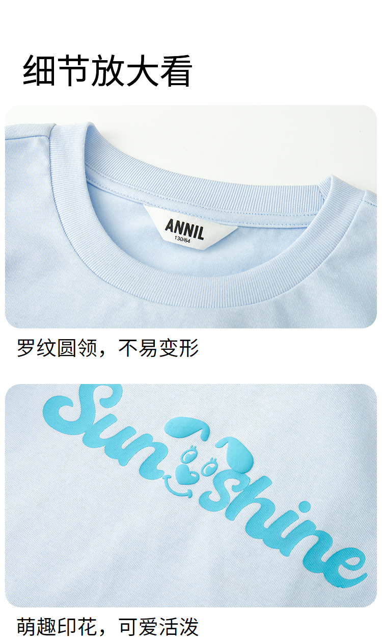 女童SORONA凉感圆领短袖针织衫夏季新款安奈儿童装EG521117