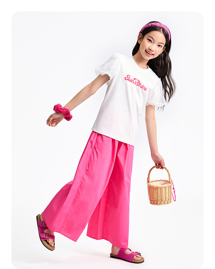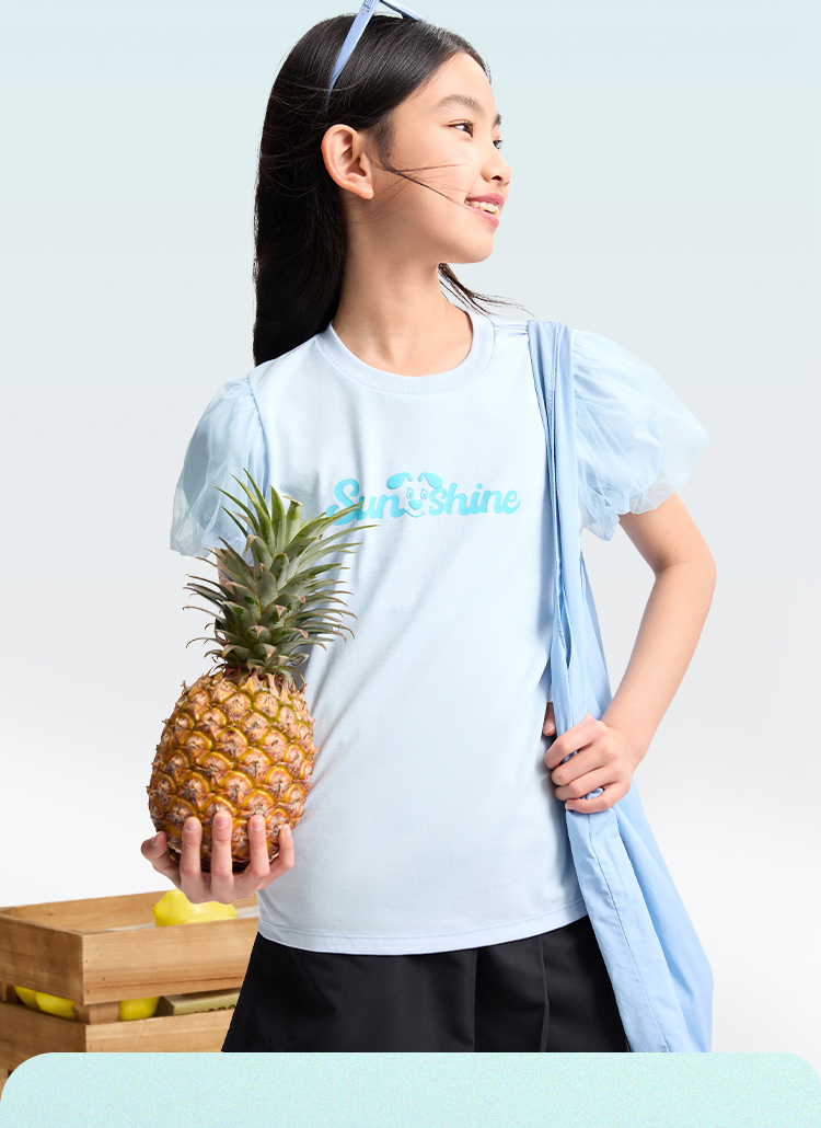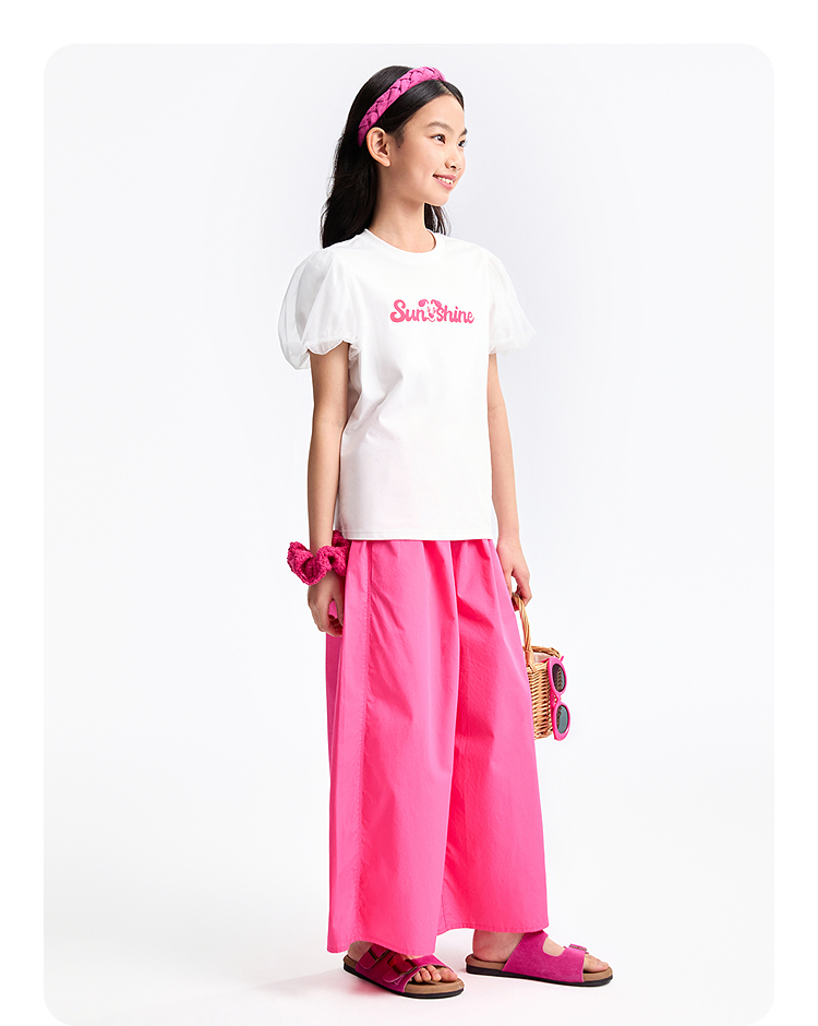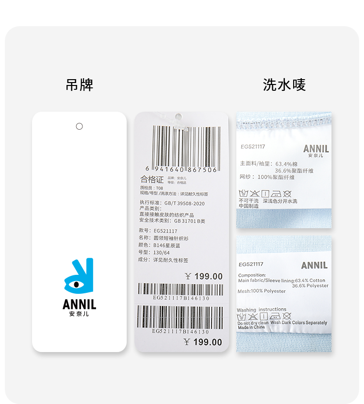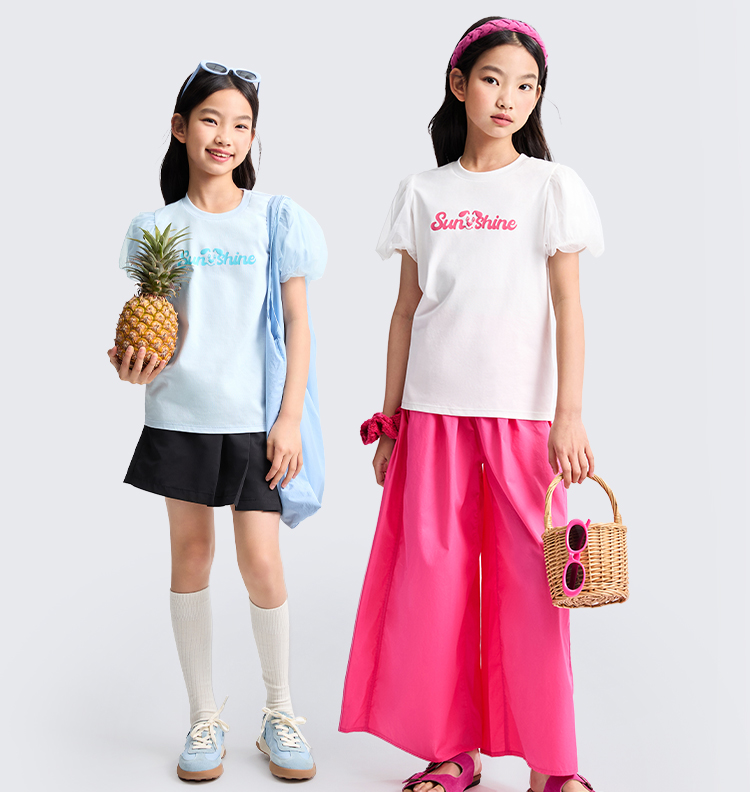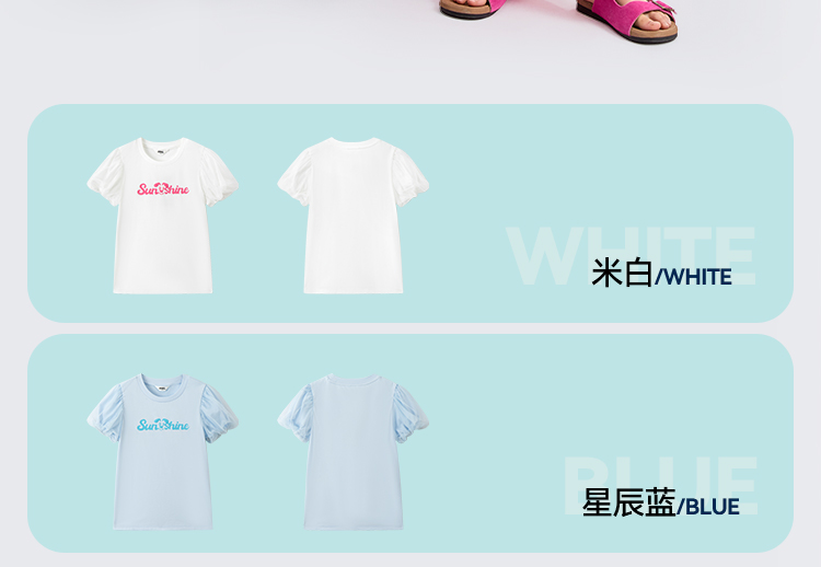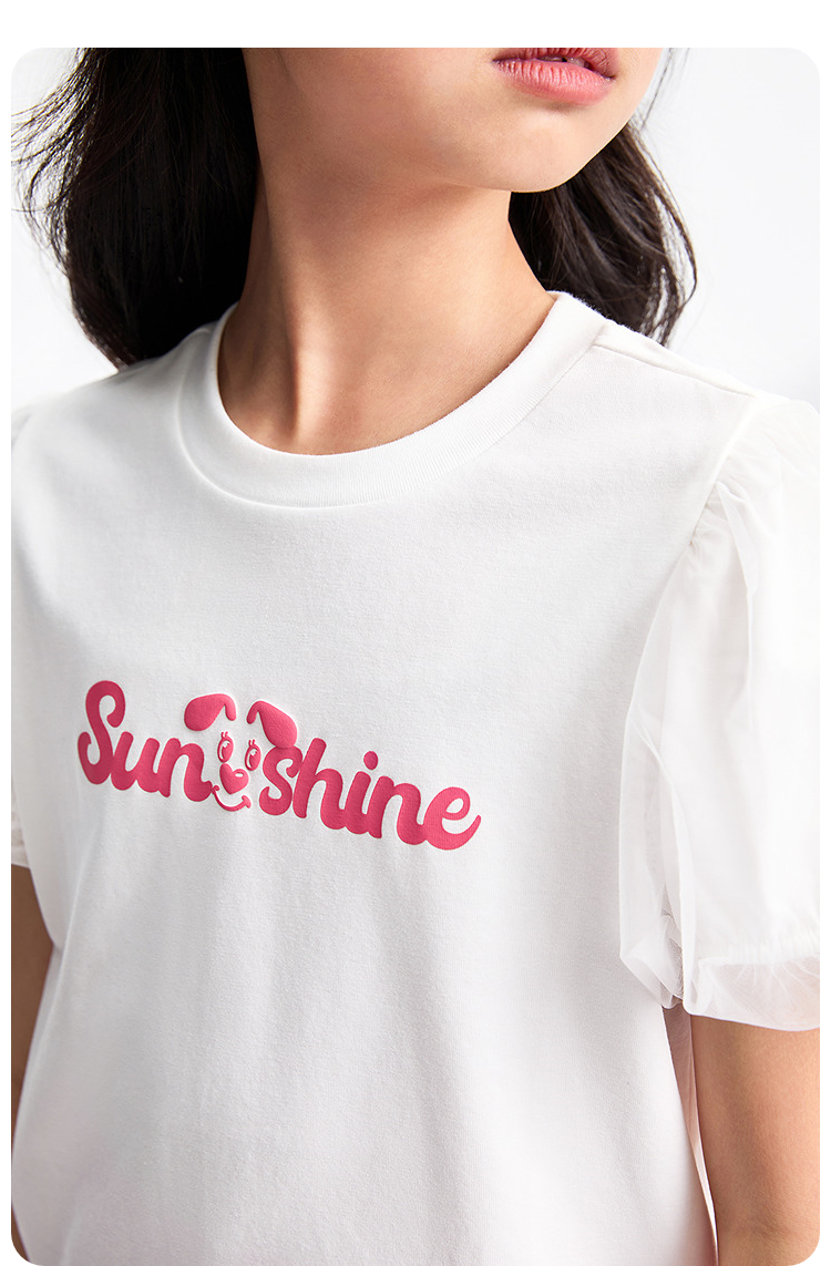 女童SORONA凉感圆领短袖针织衫夏季新款安奈儿童装EG521117