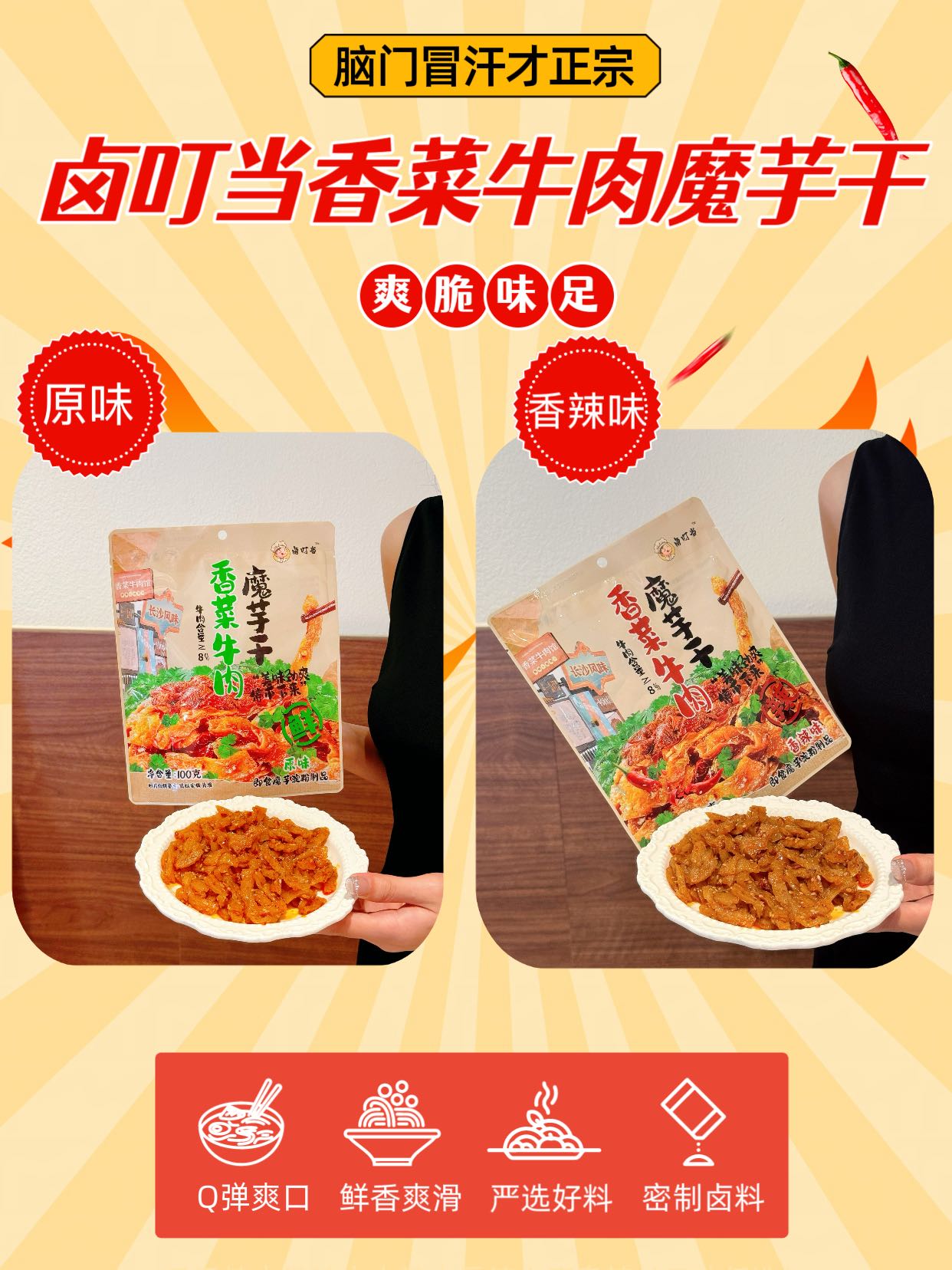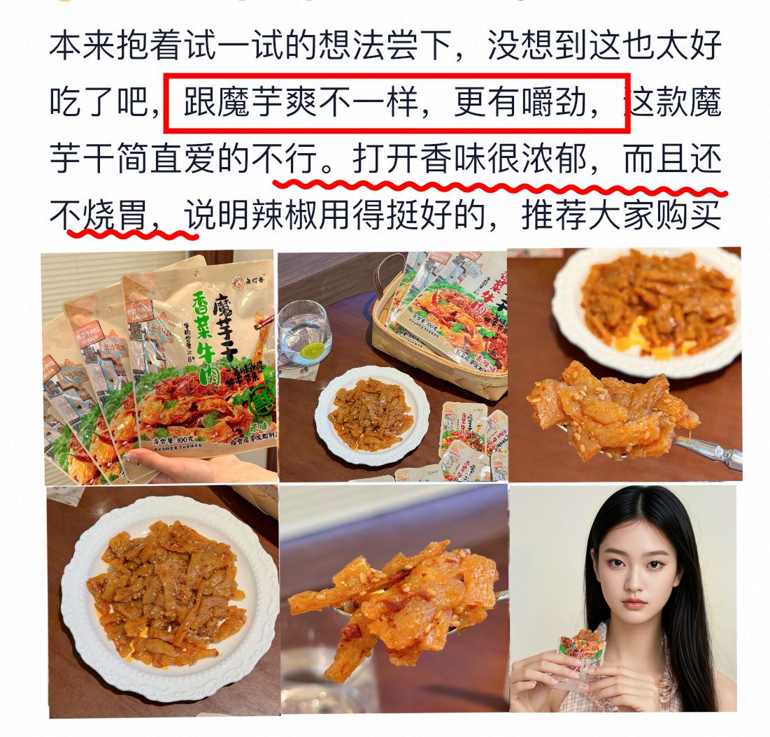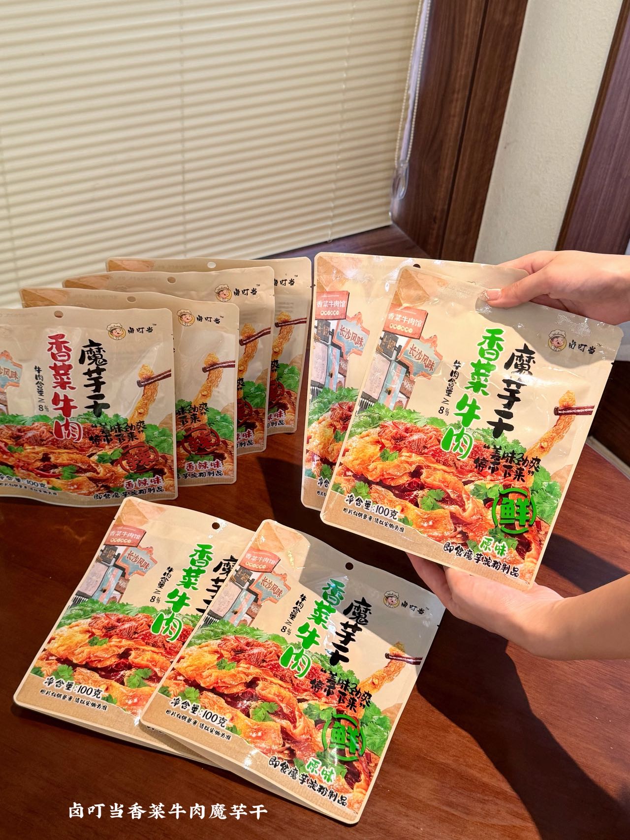 【品牌】卤叮当 【品名】香菜牛肉魔芋干 100g 【市场零售价】59.9元4包,79元6包 【团价】39.9元4包,59元6包 【规格】 【规格一】 ①原味100g*4包; ②香辣100g*4包; ③原味100g*2包+香辣100g*2包 【规格二】 ①原味100g*6包; ②香辣100g*6包; ③原味100g*3包+香辣100g*3包 【生产日期】2025年9月 【质保期】9个月 【产地】湖南省岳阳市 【储存方法】常温存放,避免高温与潮湿处,开封后尽快食用 【食用方法】开封即食(如有漏气或其他质量问题,请勿食用) 【快递】申通、中通、圆通、邮政随机 不支持指定 【发货地】宁波/长沙两地随机 【发货时间】48-72小时 【加邮费地区】北京+1 【不发货地区】新疆、西藏、港澳台 【售后说明】 (1)食品不支持7天无理由退换货,快递发出后,不支持拦截拒收 (2)收货请当面验收,如遇到破损、少件、错发等情况,务必在签收24小时内申请售后,提报售后请提供快递面单图,产品问题图(所有的售后都基于提供照片或视频为凭证,未提供凭证或超过售后时效,不予处理,请理解! (3)由于顾客未及时接听电话、未及时取货、储存不当造成的问题,不售后,不赔付。 (4)商品本身没有质量问题,因个人口感喜好不同、商品色泽、个人感官认知等,不做售后。(5)包装在快递过程中有磨损、变形、有碎纸屑等,产品不影响正常食用的属于正常现象,不作为售后受理,介意勿拍 【注意事项】本品中含有大豆及其制品,芝麻及其制品