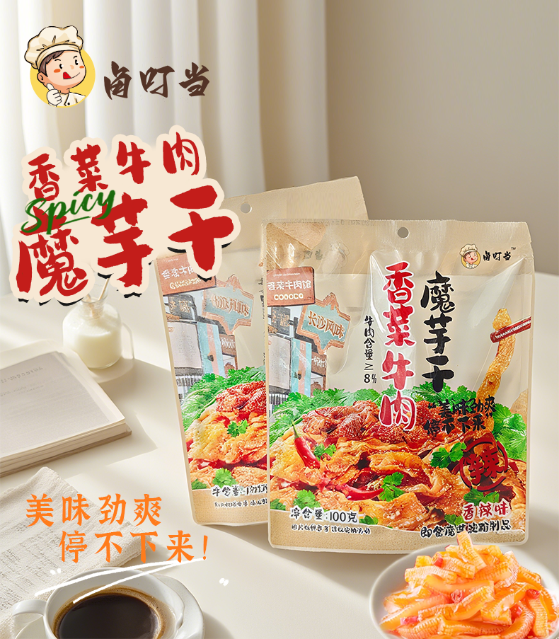 卤叮当香菜牛肉魔芋干方便速食香辣卤味休闲零食小吃开袋即食100g