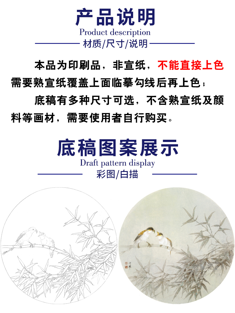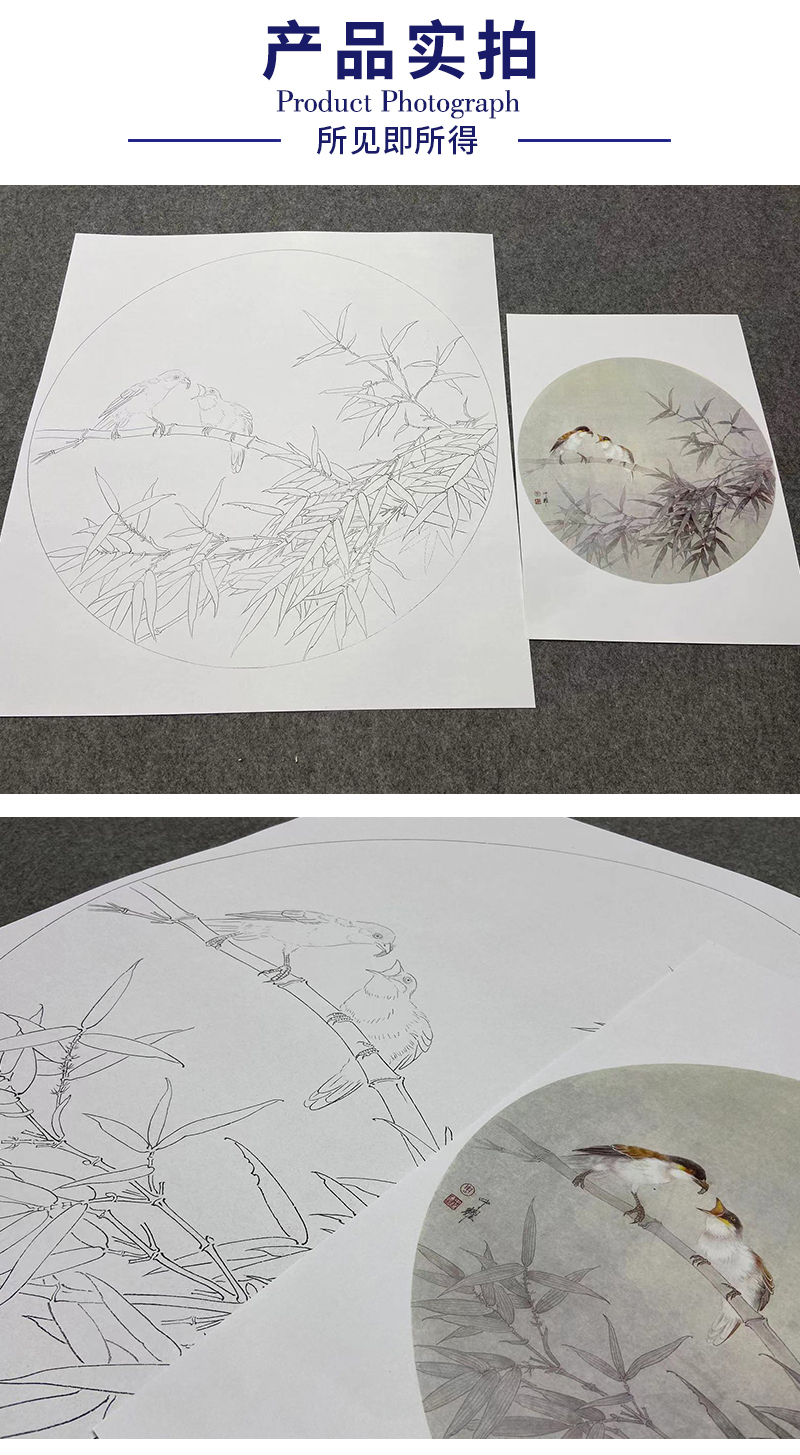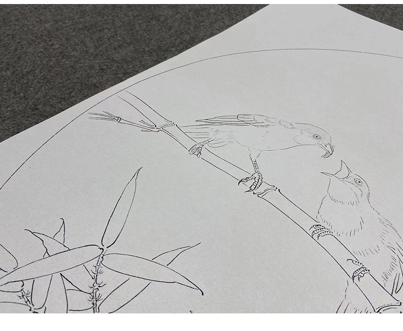 周中耀工笔画白描底稿竹子小品《清荫》临摹勾线高清打印稿YL31