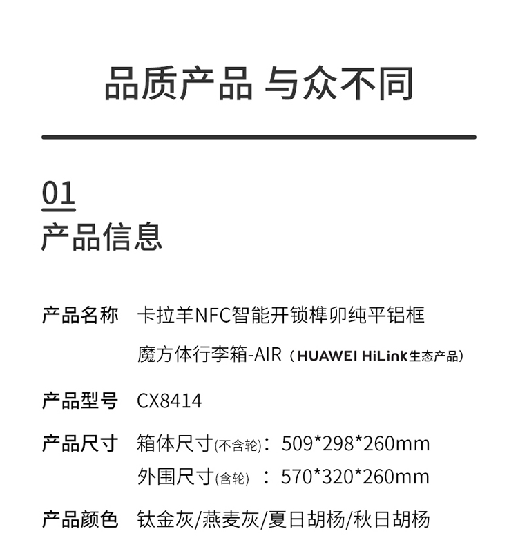 卡拉羊NFC智能开锁魔方体铝框行李箱Air(支持HUAWEI HiLink)CX8414