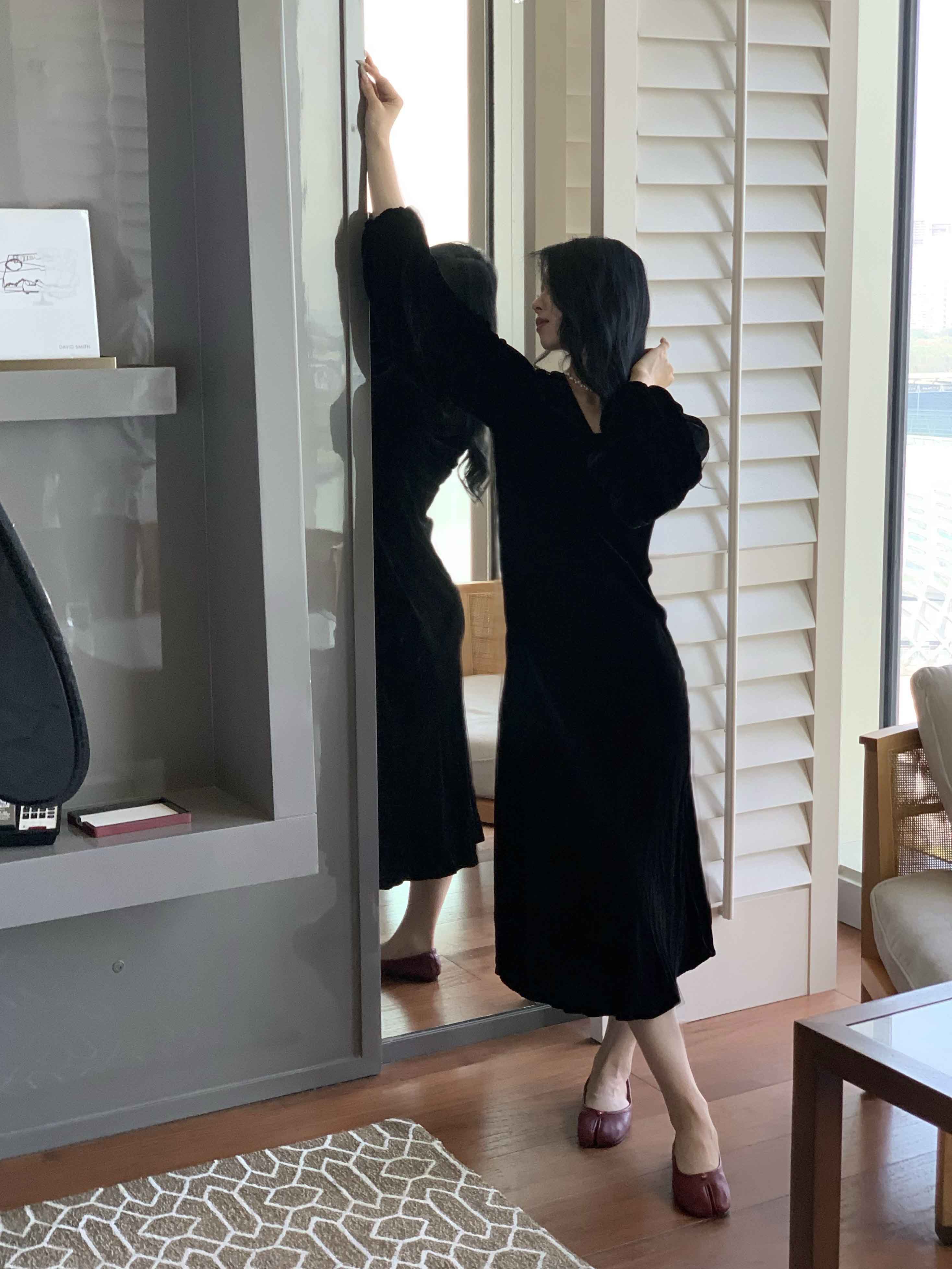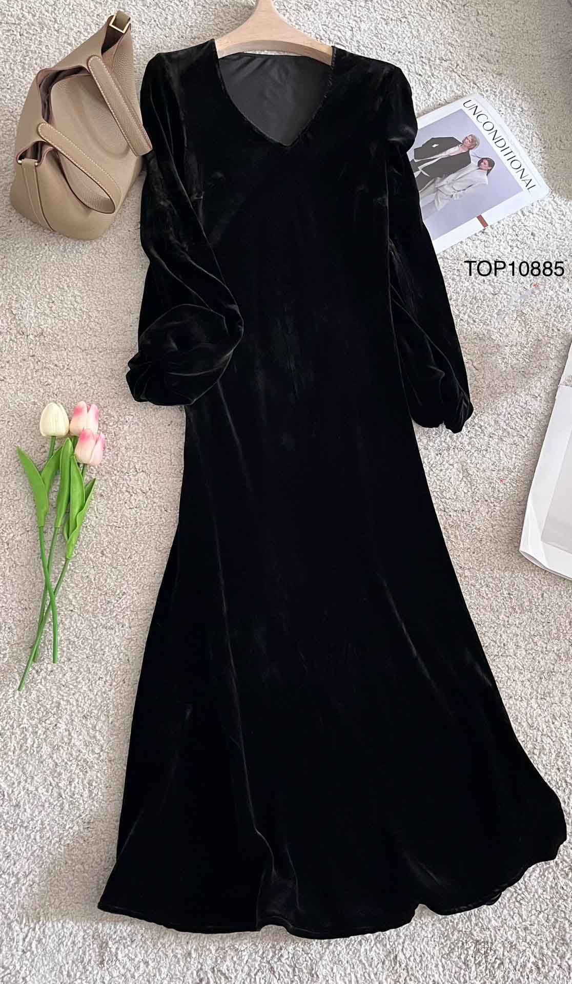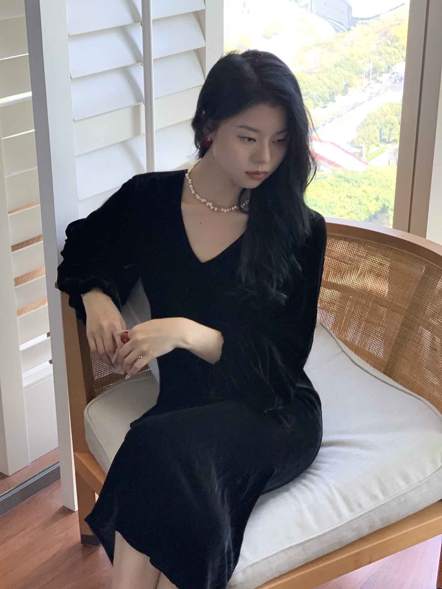 顺丰包邮洛诗琳13038春季新款气质真丝丝绒V领收腰连衣裙10885