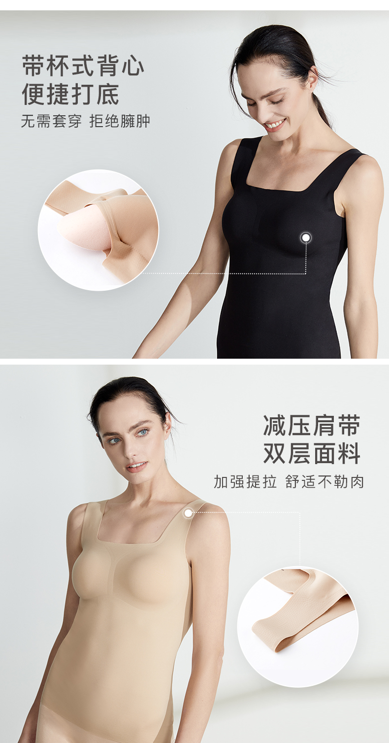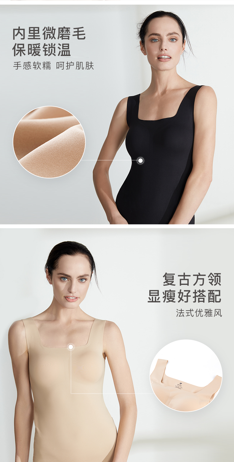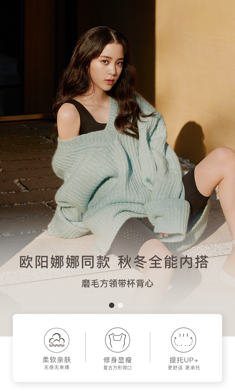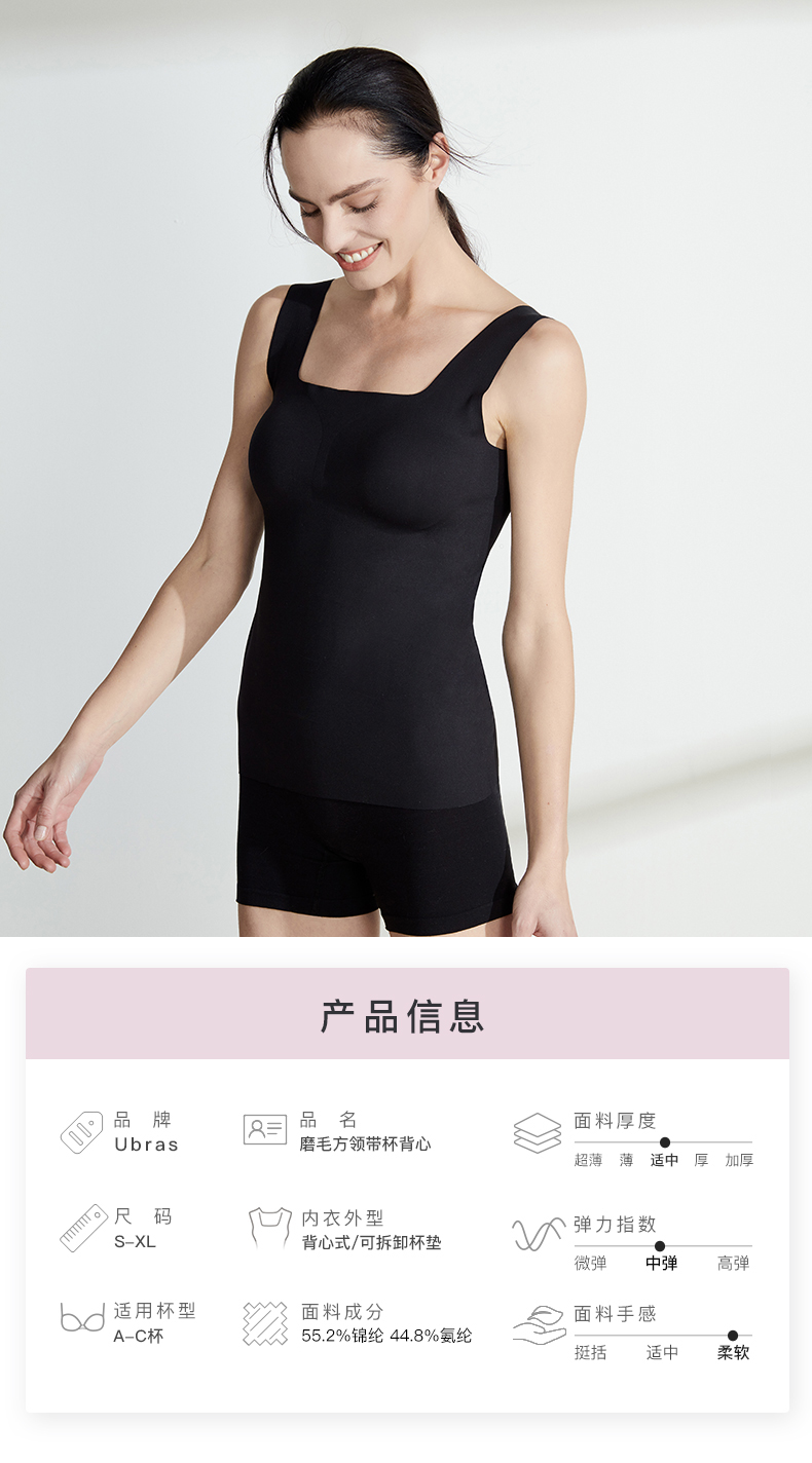 Ubras欧阳娜娜同款磨毛方领带罩杯背心打底吊带
