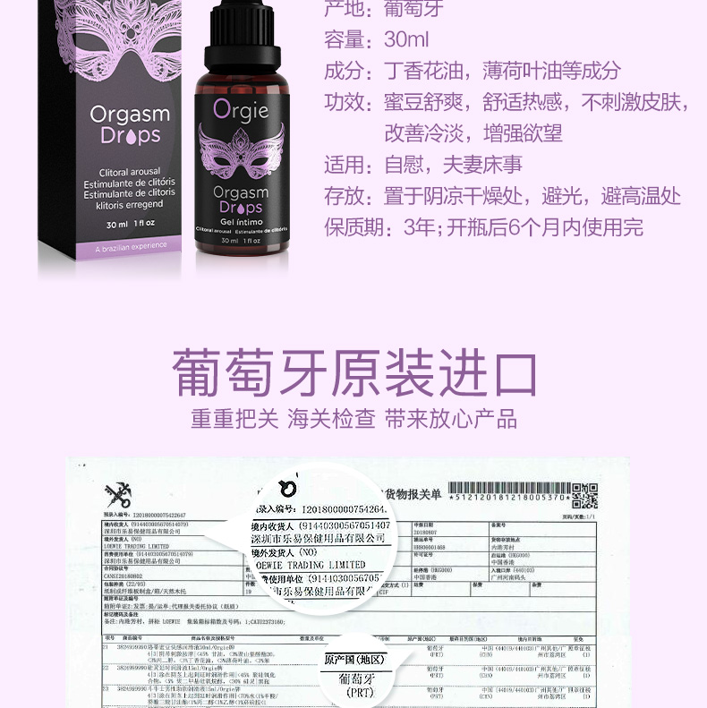 【原装进口 C点快感增强】葡萄牙进口Orgie洛蒂蜜豆快感增强液高潮私处滋润30ml小紫瓶