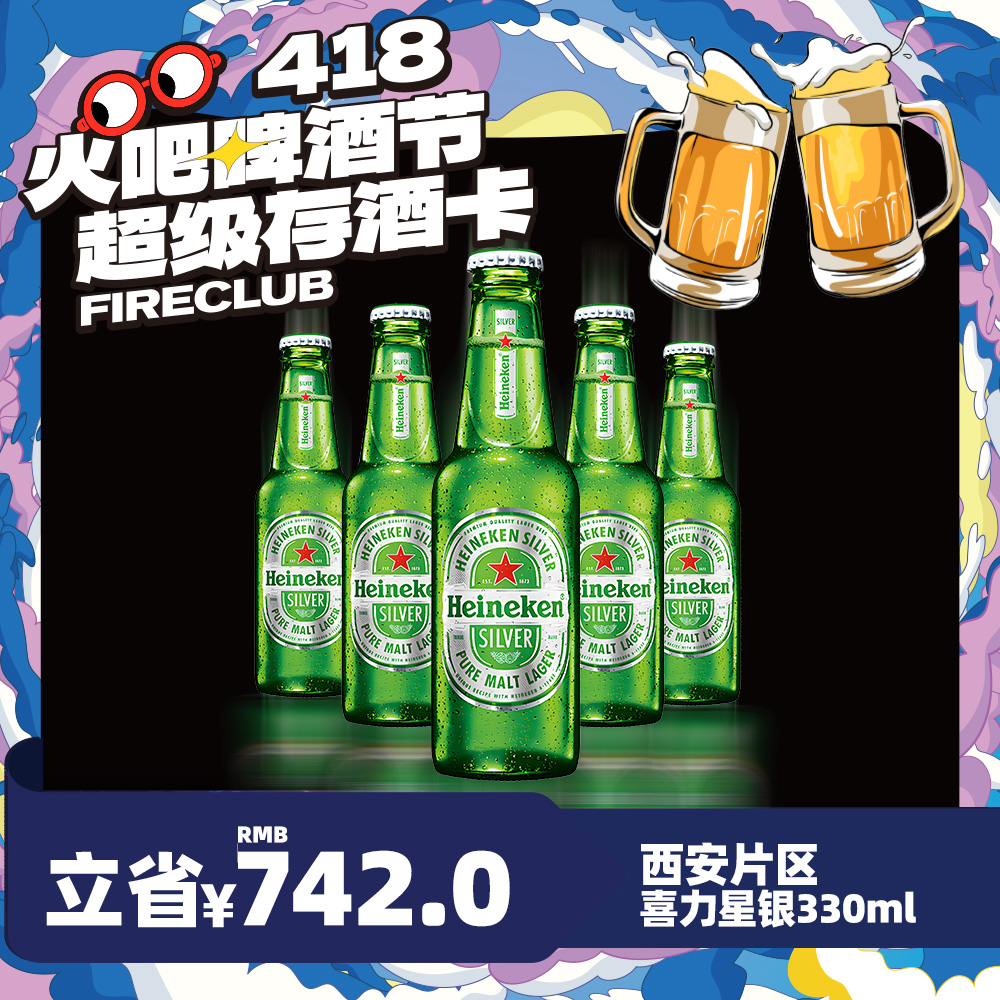 【西安通用】4月8日火吧啤酒节—超值存酒卡—398元50瓶喜力星银330ml