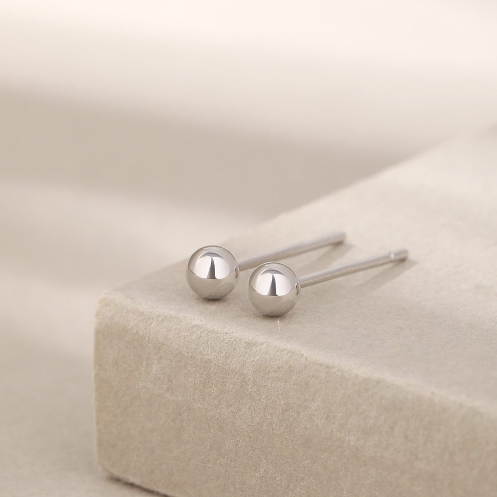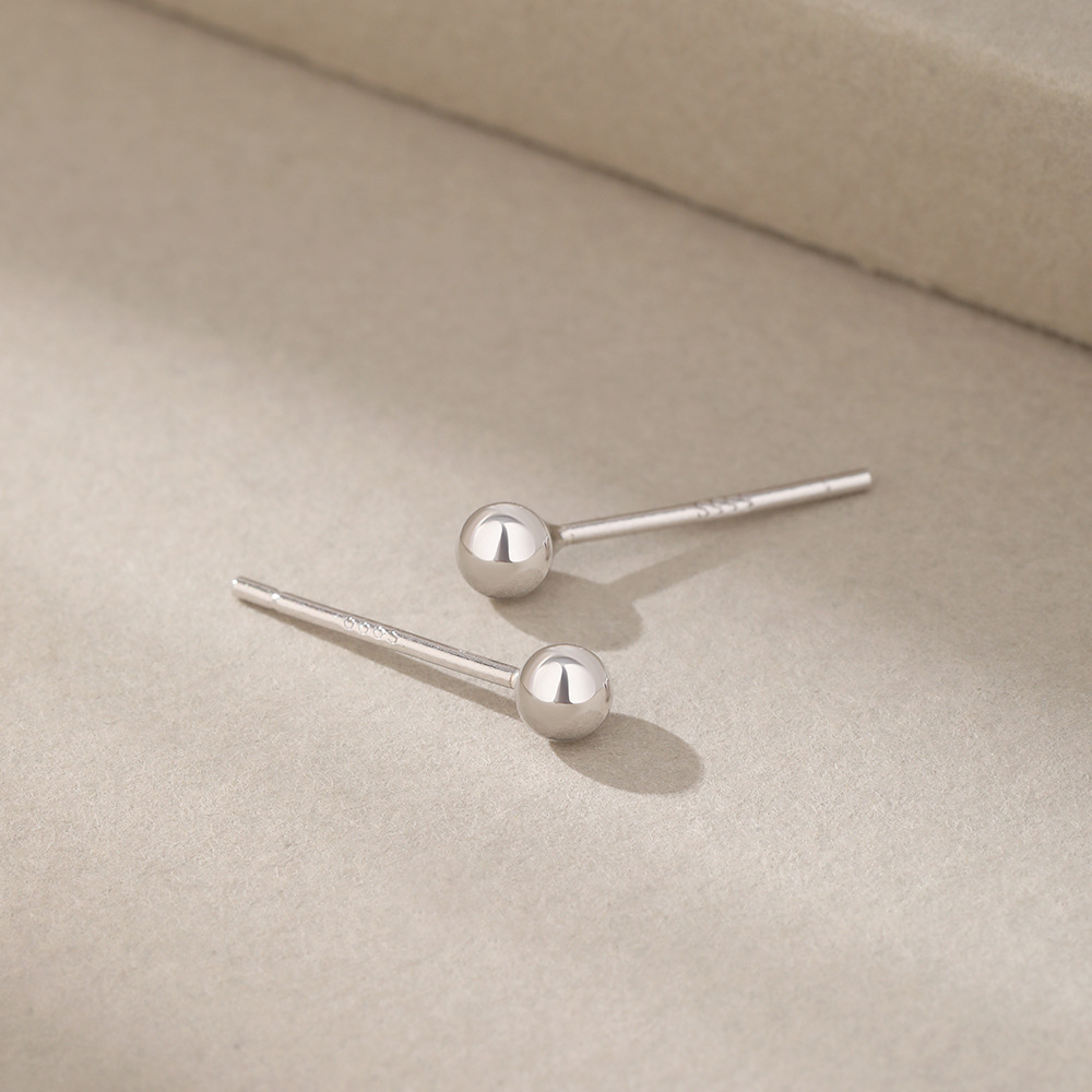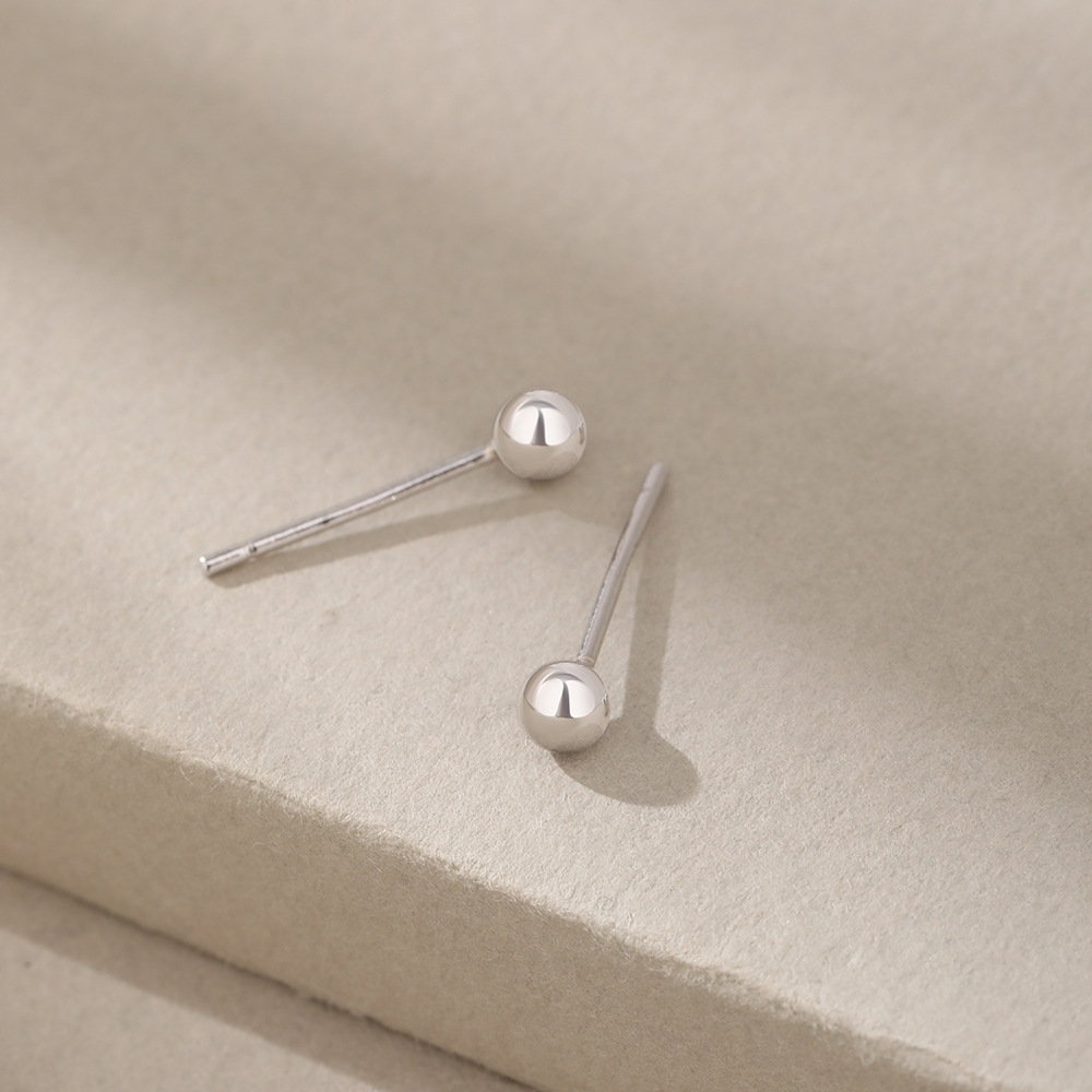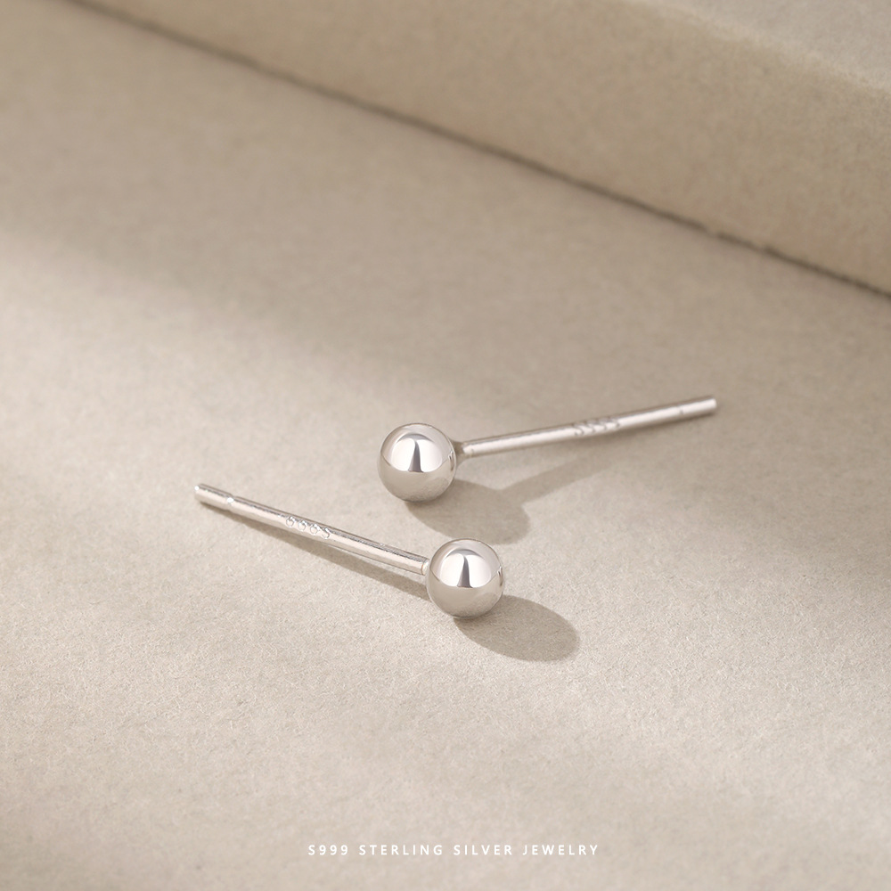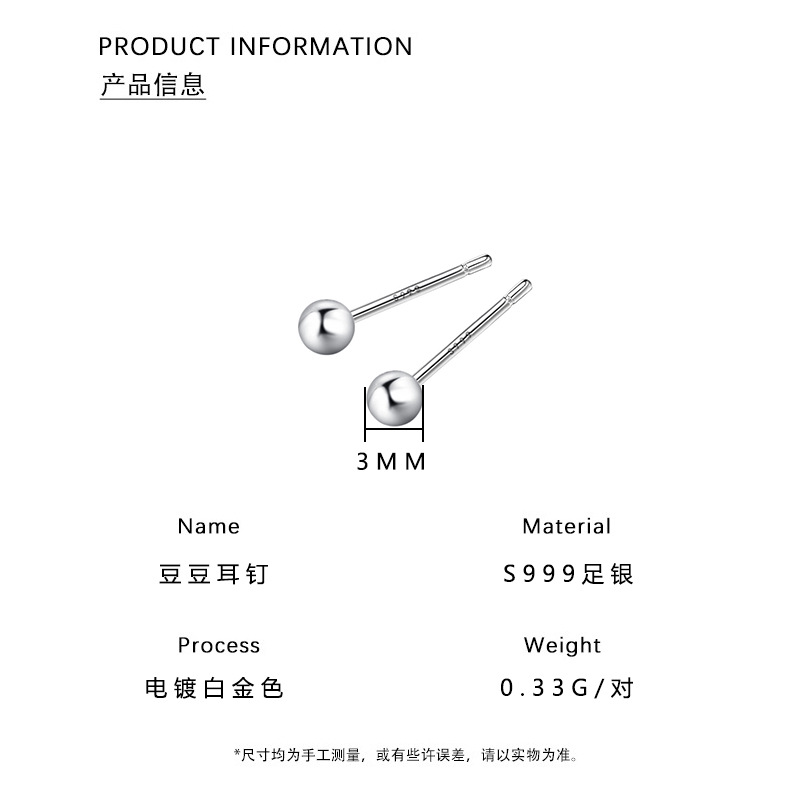 丁摩 S999足银纯银耳钉手工光面圆珠耳钉豆豆简约迷你小耳钉耳饰5ZF-0539