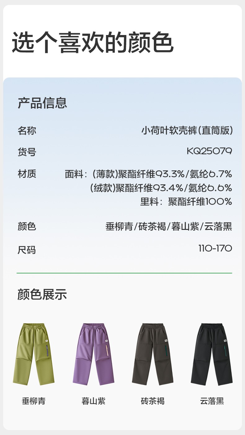 【KK树】小荷叶软壳裤(直筒版)KQ25079